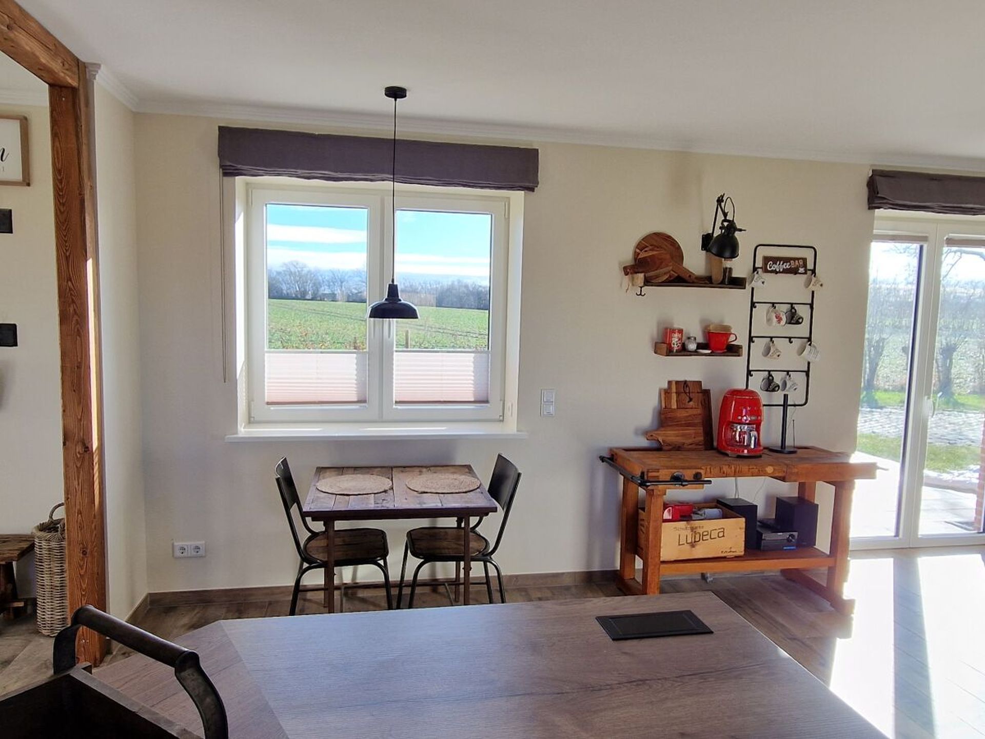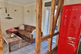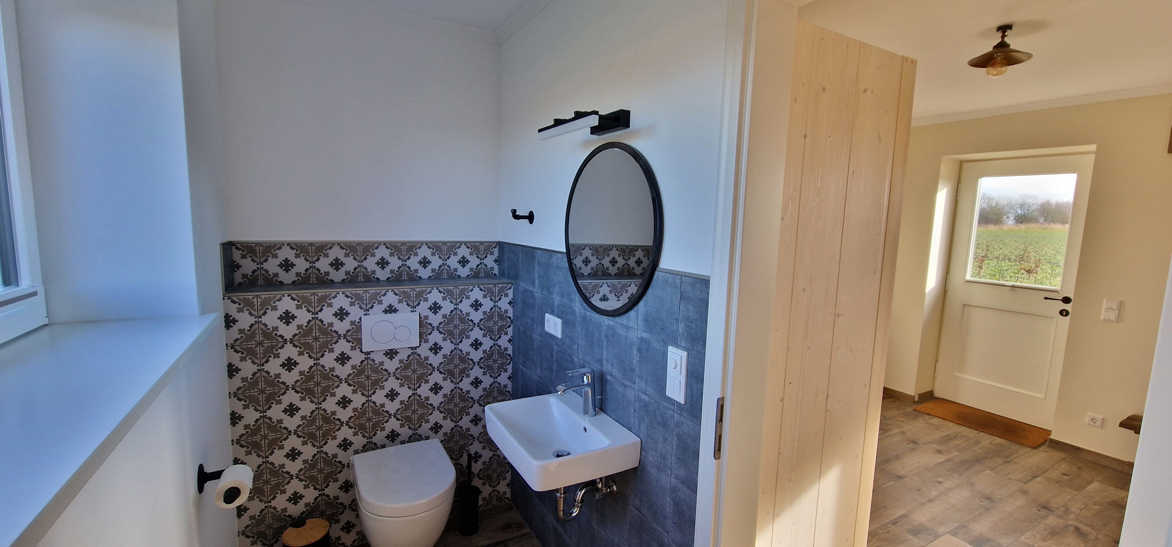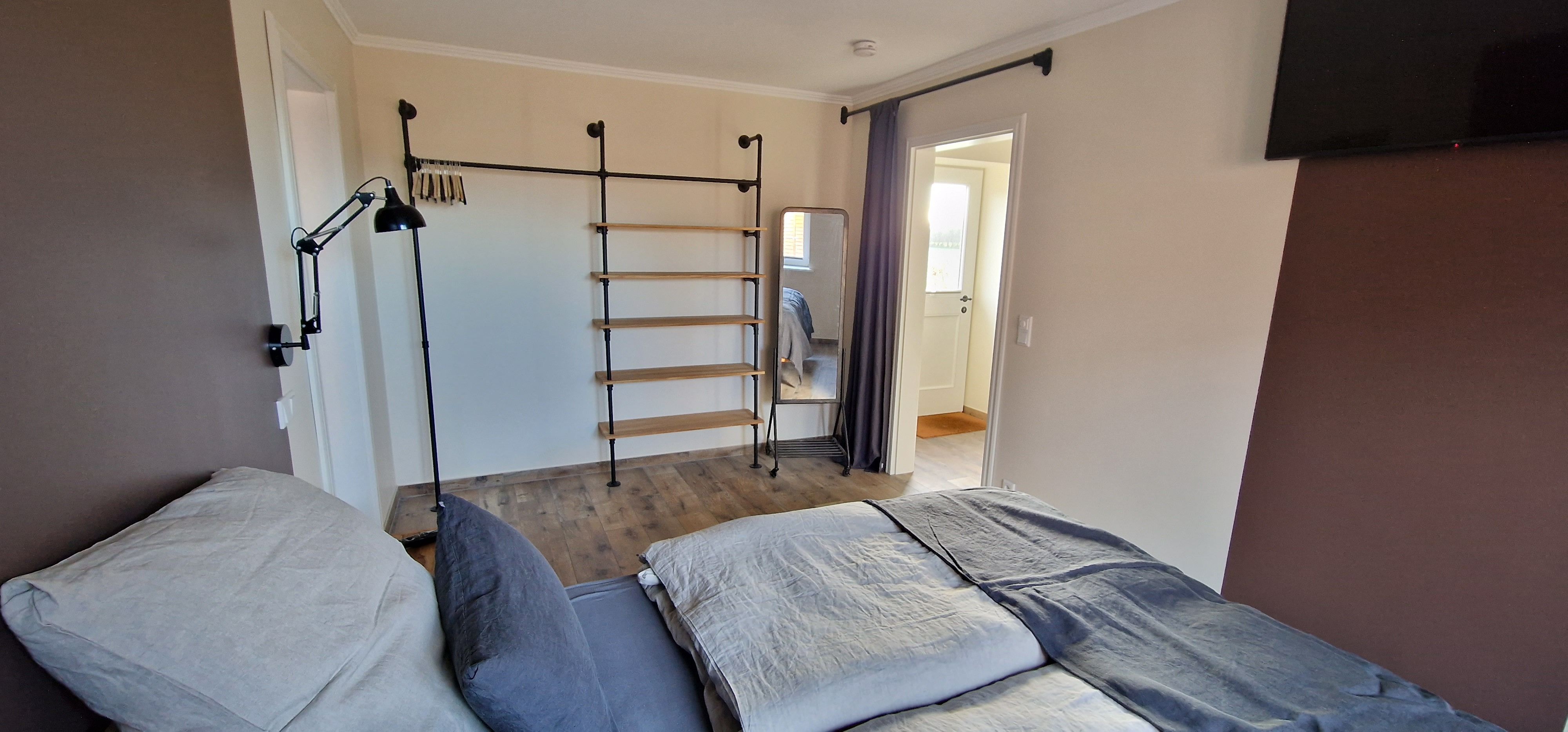 Die Ferienwohnung Klüterkammer im Anbau des ehemaligen Backhauses des Hofes ist in einem charmanten Mix aus Alt und Modern gestaltet und hochwertig ausgestattet. Eine Fußbodenheizung sorgt für angenehme Wärme.