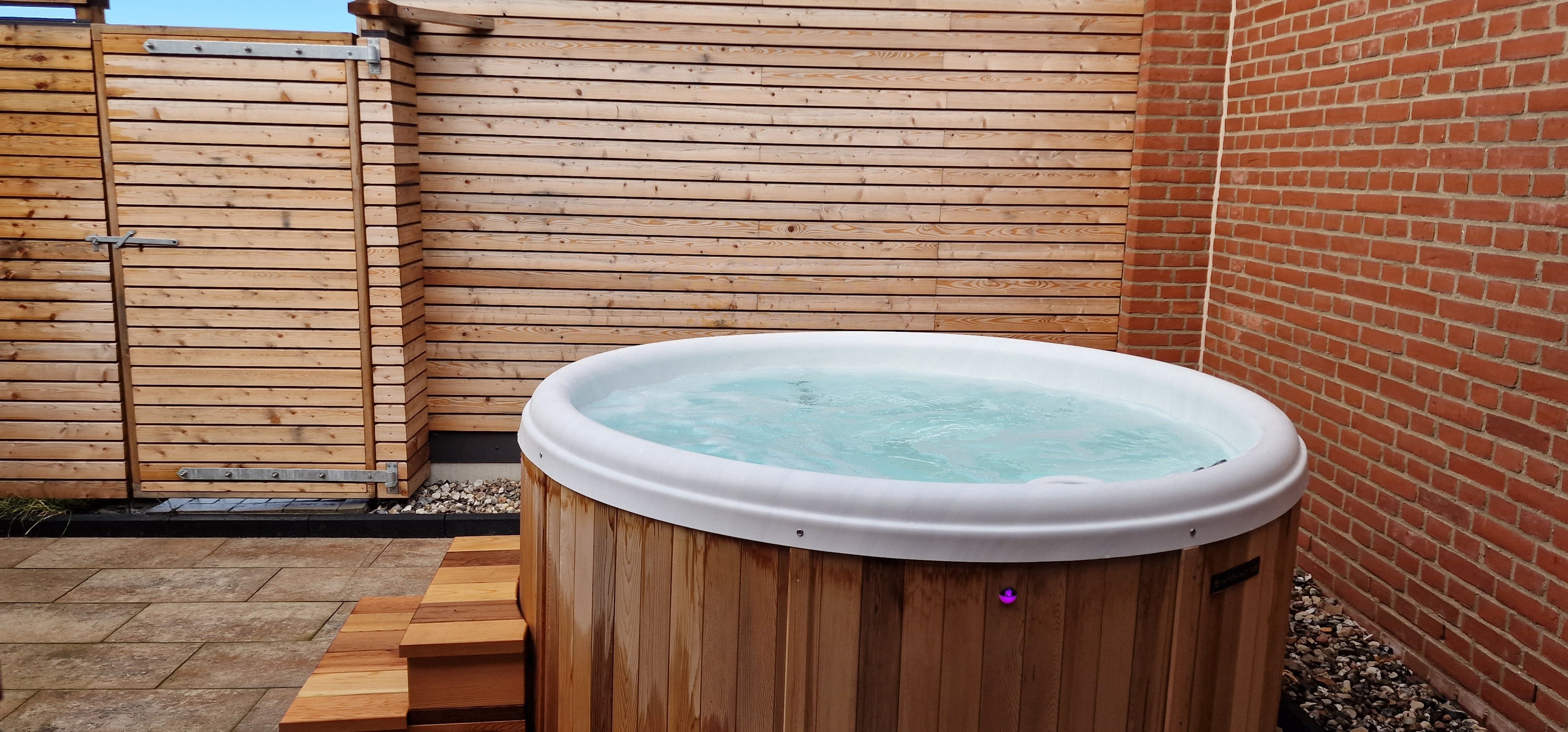 -  Anliegend Duschbad: Terrasse mit Außenwhirlpool und Sichtschutz