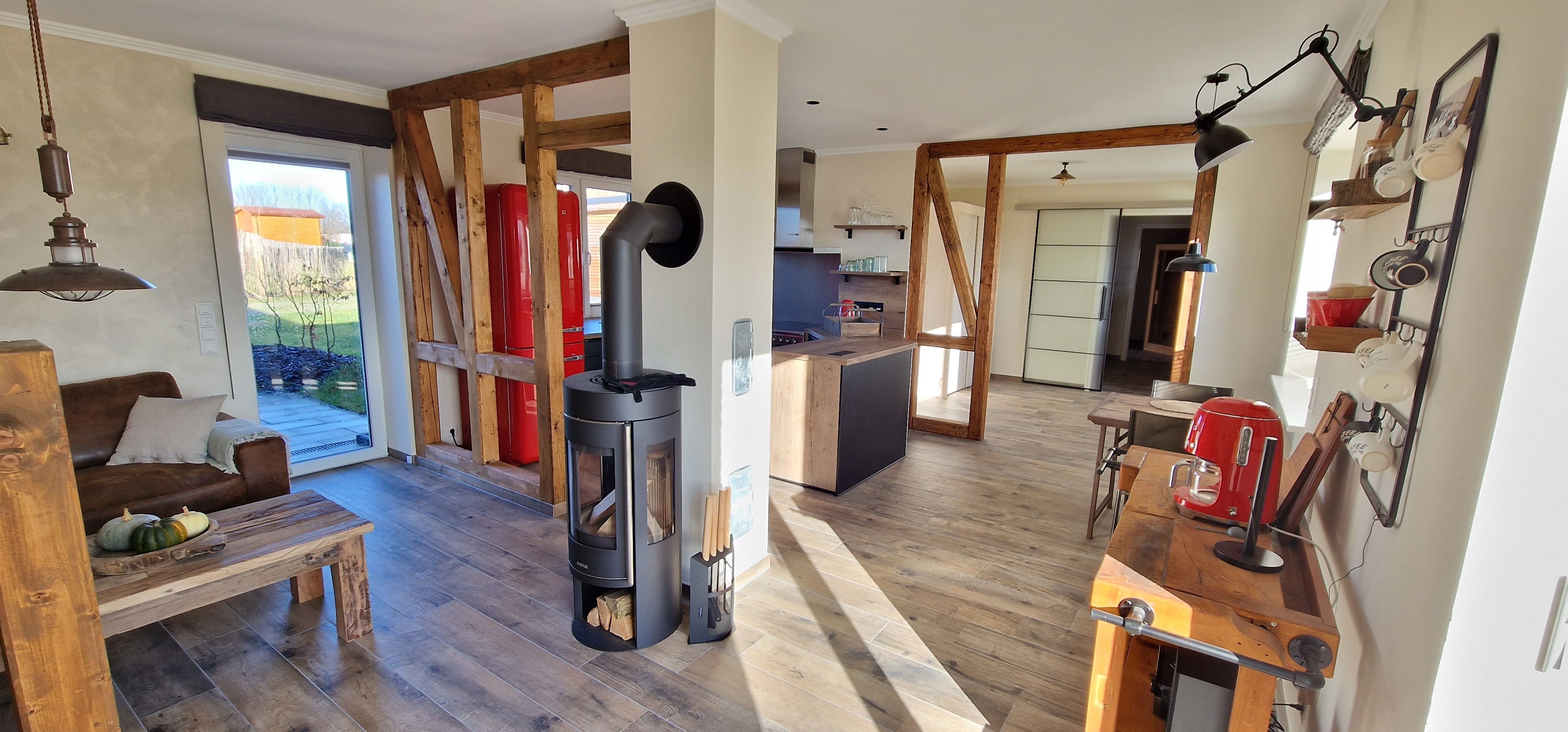 - offener Wohn- und Essbereich mit Kaminofen und TV