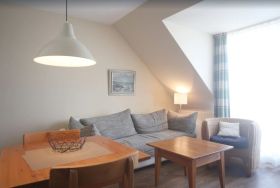 Das strandnahe, freundliche und helle 2-Zimmer-Appartement 250 (ca. 27 m²) im 2. Obergeschoss im Haus C (ohne Fahrstuhl) besitzt ein hohes Maß an Funktionalität und ist komplett eingerichtet. Der Bodenbelag im gesamten Wohnbereich ist hochwertiger Vinyl-Designbelag in edler Holzoptik, das Bad / WC ist gefliest.
