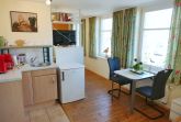 Die Pantry-Küche ist mit Kühlschrank mit Tiefkühlfach, Kaffeemaschine, Toaster, Wasserkocher und einer Kochgelegenheit ausgestattet. Bad mit Dusche und WC, die Wohnung verfügt über eine Zentralheizung und WLAN.