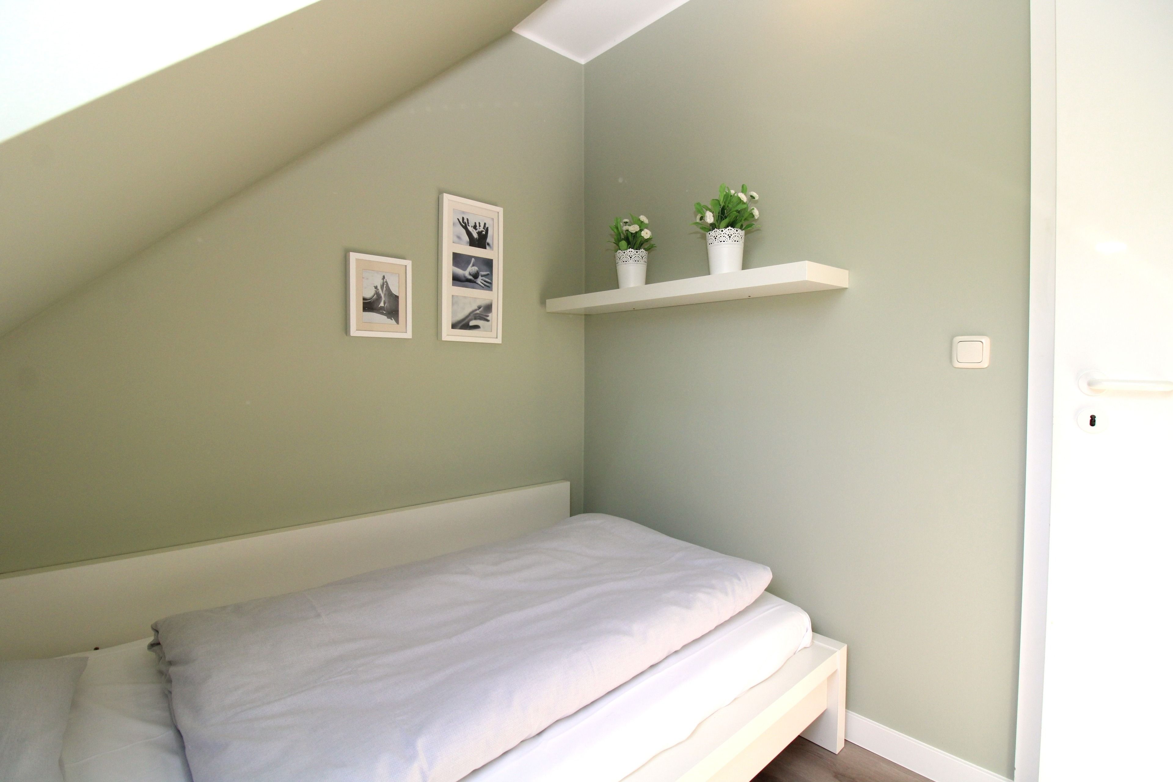 Das separate und zusätzliche 2. Schlafzimmer verfügt ebenfalls über ein bequemes Einzelbett (90 cm x 200 cm) und einen Nachttisch mit Nachttischlampe.