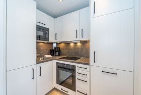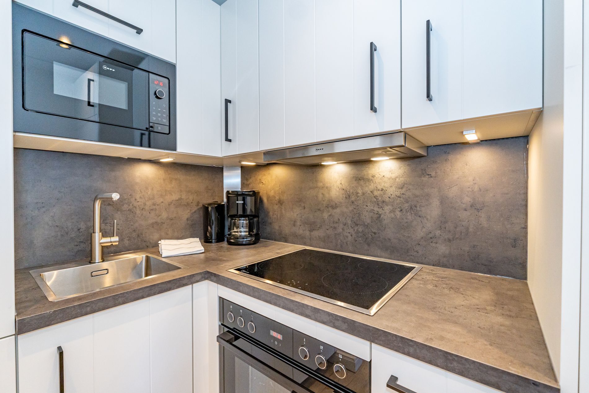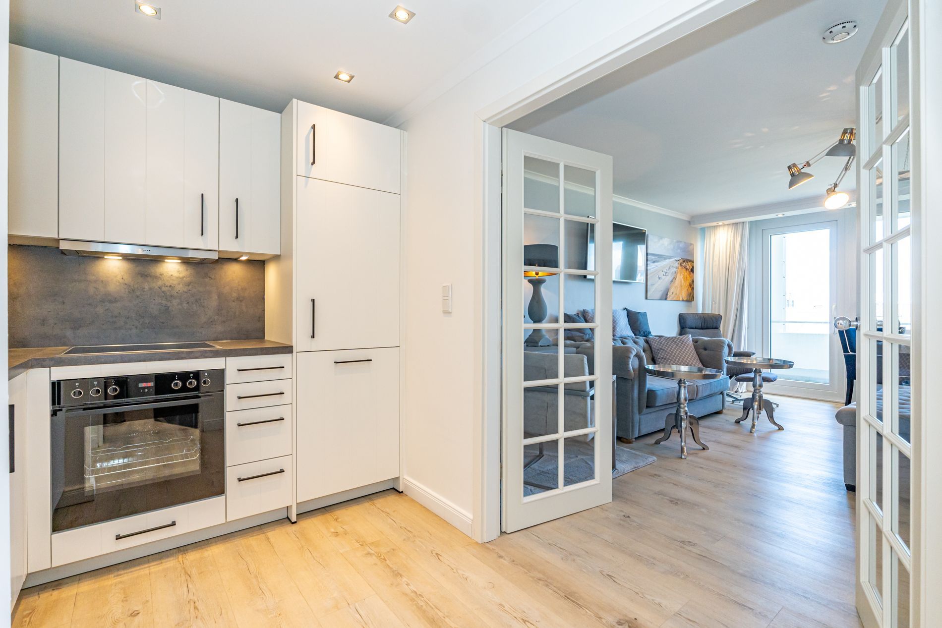 Die voll ausgestattete, offene Küche lässt mit Geschirrspüler, Mikrowelle, Herd mit Backofen und Cerankochfeld (4 Felder), Kühlschrank mit 3* Gefrierfach keine Wünsche offen. Kaffeemaschine, Wasserkocher und Toaster gehören zur Grundausstattung.