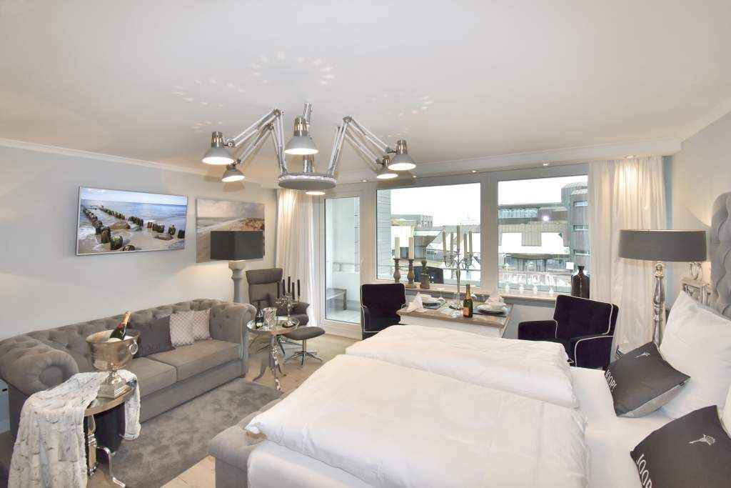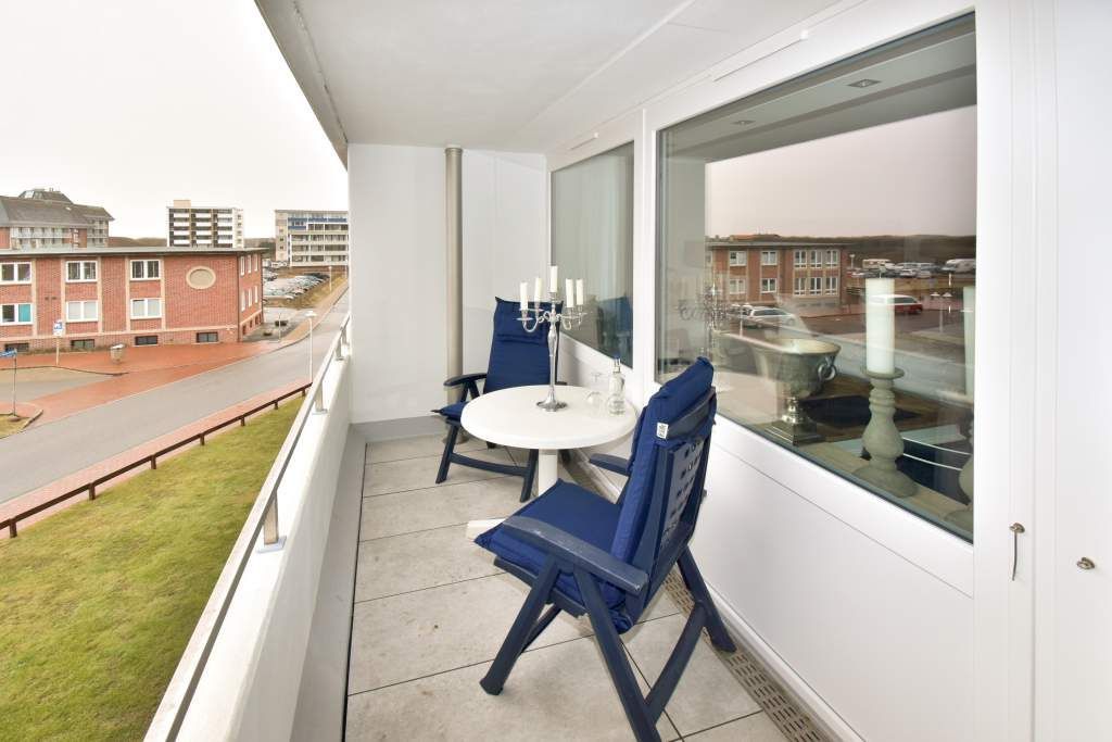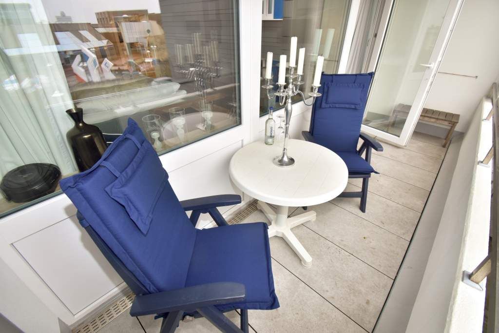 Großzügige 1-Zimmer-Nichtraucher-Ferienwohnung (ca. 40 m²) in der 2. Etage zur Seeseite mit Westloggia (Nachmittagssonne, mit Balkonmöbeln und Auflagen) für max. 2 Personen.
