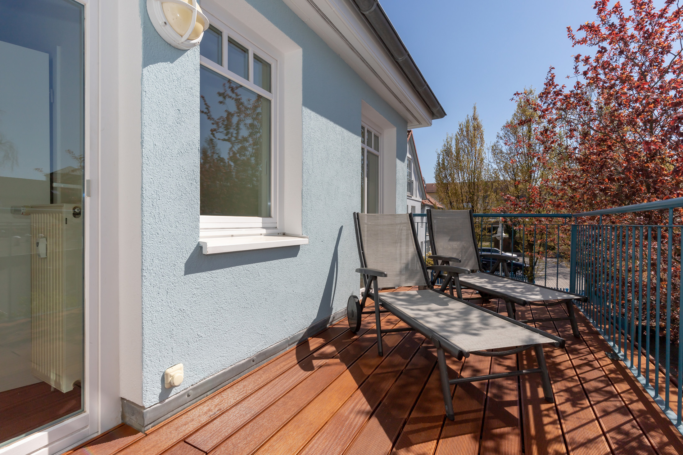 Vor der Eingangstür gibt es auch eine Terrasse mit dazugehörigen Möbeln. Auf der Terrasse oder auf dem Balkon können Sie relaxen, Kaffee trinken oder einfach ein gutes Buch lesen. In der Badewanne lässt es sich nach einem ereignisreichen Tag herrlich entspannen.