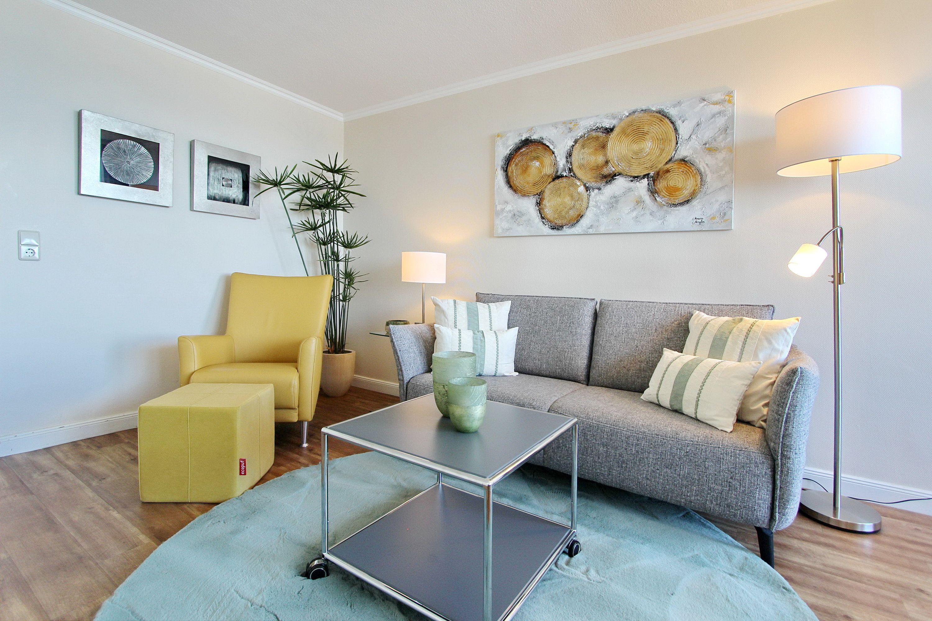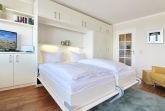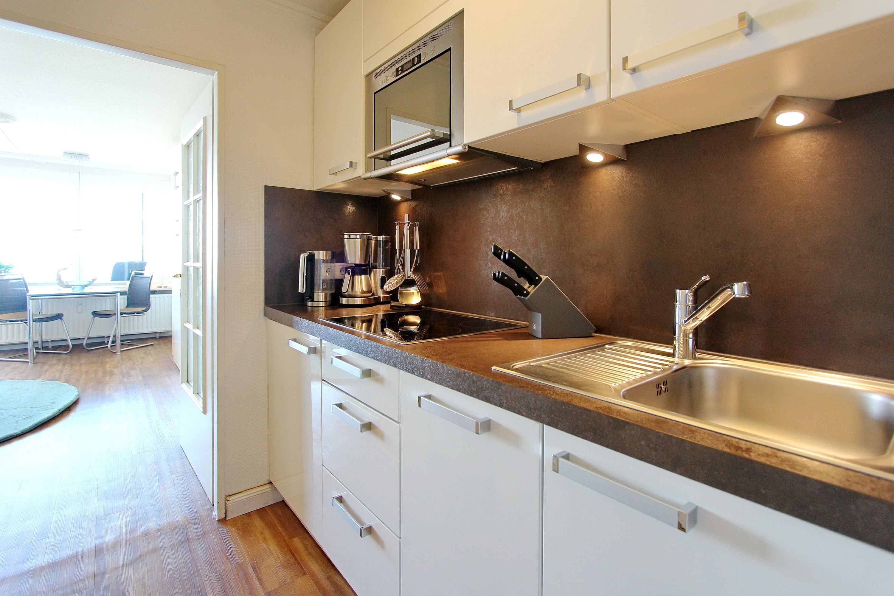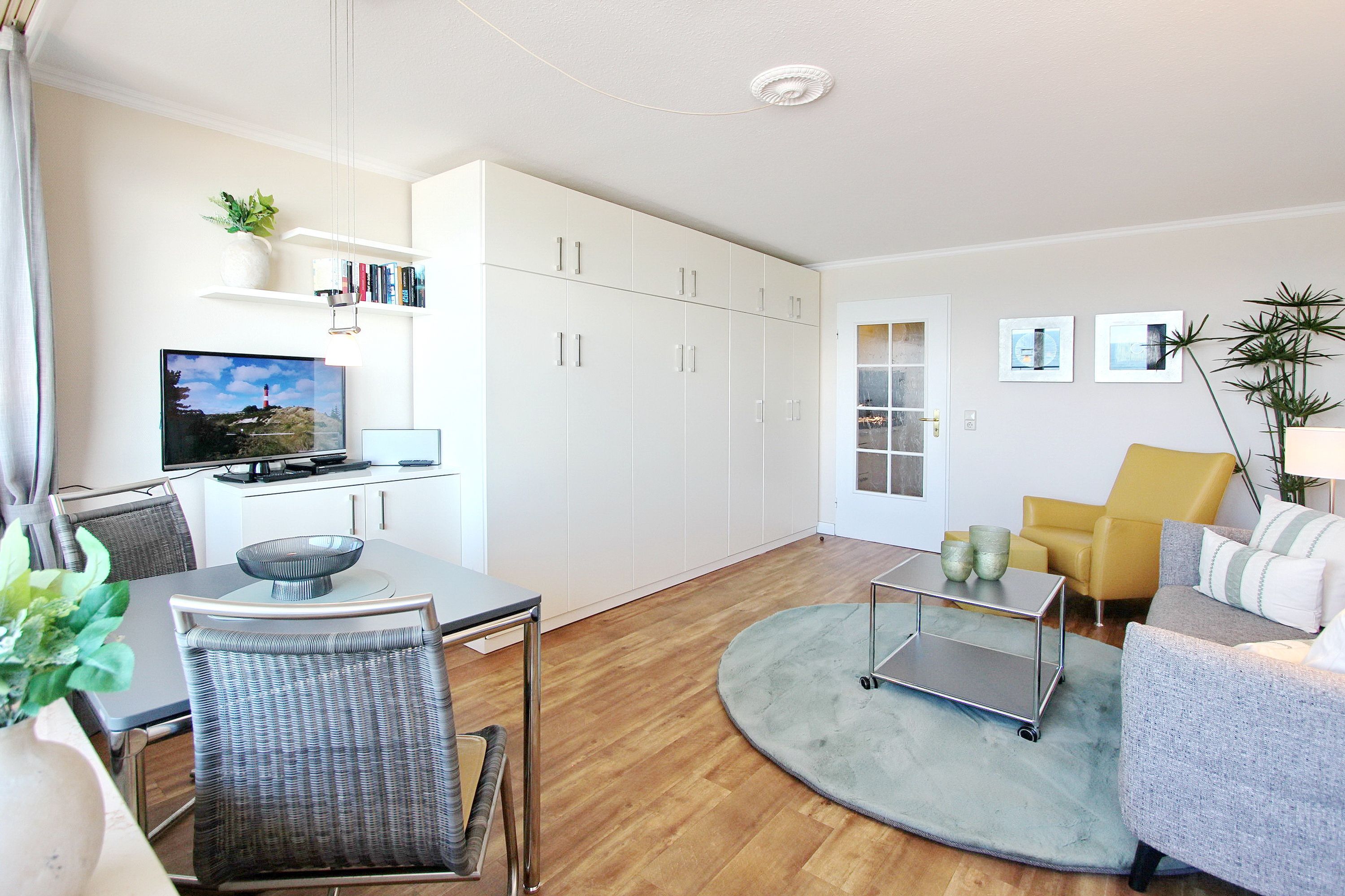 In der 3. Etage des Haus Metropol finden sie diese Einzimmerwohnung mit einmalig schönem Blick auf den Strand und die Nordsee. Der kombinierte Wohn-/Schlafraum hat einen vorgelagerten Westbalkon mit Balkonmöbeln und Auflagen. Einzelschrankbetten, ein Essplatz am Fenster mit 2 Stühlen sowie eine Couch und ein Fernsehsessel stehen ihnen zur Verfügung. In der Wohnung wurde hochwertiger Laminatfußboden verlegt. Im Badezimmer gibt es eine Dusche, Fön, Kosmetikspiegel und einen Handtuchtrockner. In der Einbauküche im Flur mit Ceranfeld, Mikrowellen-Backkombination, zusätzlicher Nespressomaschine und Spülmaschine können sie sich selbst verpflegen. Hochwertiges Geschirr und Töpfe stehen Ihnen dafür zur Verfügung. Zur technischen Ausstattung gehört ein Flachbildfernseher von Panasonic und eine Bluetoothanlage mit CD Player von Sony. Ein freies WLAN Netzwerk (WEG Haus Metropol - Passwortfrei - ohne Gewähr) steht ihnen kostenfrei zur Verfügung. Die Größe dieser Nichtraucherwohnung beträgt: ca. 34 m².