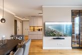 Sehr geschmackvoller Wohn-Essbereich. Die separate, abgegrenzte Einbauküche ist komplett ausgestattet. Backofen, Ceran-Kochfeld, Mikrowelle, Geschirrspüler, Kühlschrank mit Gefrierschrank, Filterkaffeemaschine, Kapselmaschine, Eierkocher, Mixer, Toaster und Wasserkocher, Teekanne … und noch vieles mehr. Der Wohnbereich ist mit einem hochwertigen Sofa, einem Wohnzimmertisch, einem TV (65 Zoll), einer Bose-Anlage sowie einem sehr ansprechenden Essbereich ausgestattet. Aus dem Wohnbereich gelangen Sie auf den Westbalkon. Hier stehen Ihnen Tisch und Stühle zur Verfügung. Das 1. Schlafzimmer ist mit einem Boxspringbett (1,80m x 2,00m), einem großen Kleiderschrank, 2 Nachttischen sowie einem Wand-TV (55Zoll) ausgestattet. Das 2. Schlafzimmer ist ebenso mit einem Boxspringbett (1,80m x 2,00m), 2 Nachttischen, einem Kleiderschrank sowie einem Wand-TV (55 Zoll) ausgestattet. Alle Fenster haben elektrische Außenrollläden. Das Duschbad, in heller Optik, mit bodengleicher Dusche / Regendusche, mit separater Handbrause, Handtuchheizkörper, Fön, Kosmetikspiegel. Die gesamte Wohnung verfügt über eine Fußbodenheizung.