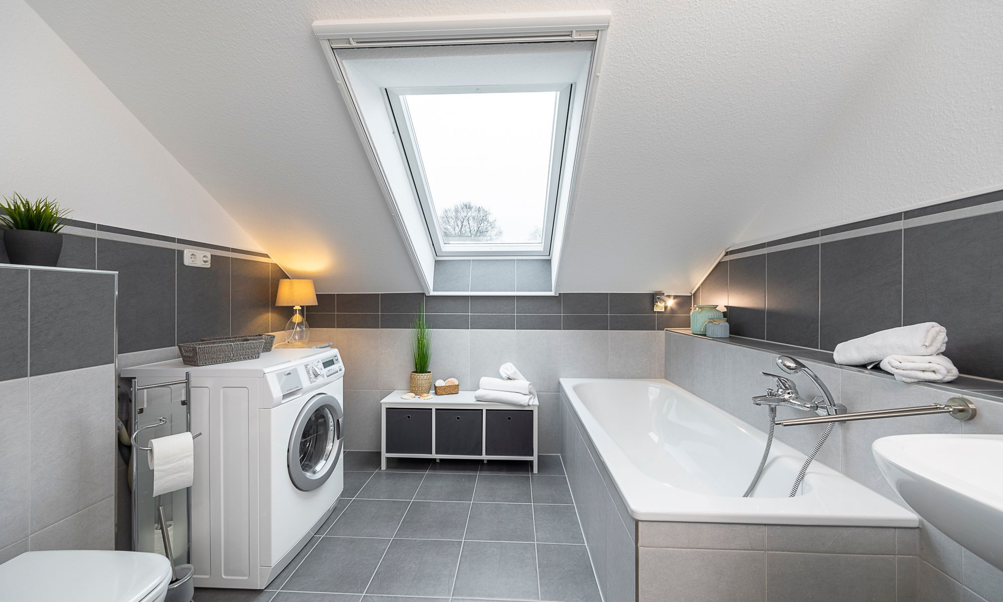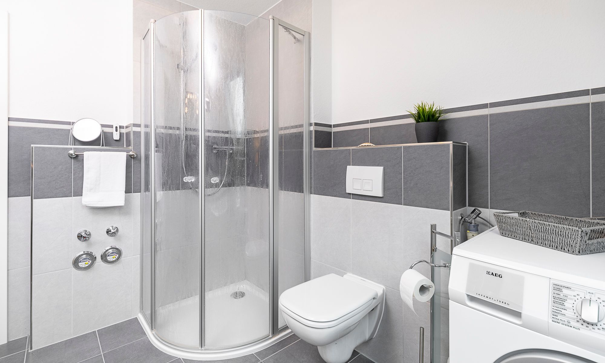 Der lichtdurchflutete Wohn-Essbereich ist mit einer bequemen Couch, einem TV, einem Sessel und einem großen Esstisch ausgestattet. Neben einem Flachbildfernseher und einer Stereoanlage steht Ihnen selbstverständlich kostenloses WLAN zur Verfügung. In der großen Loggia, Richtung Westen, stehen Tisch und Stühle für Sie bereit. Die moderne Küche ist komplett ausgestattet und lässt keine Wünsche offen. Neben der Filterkaffeemaschine steht Ihnen hier zusätzlich eine Kapselmaschine zur Verfügung. Das große Tageslichtvollbad verfügt über eine Dusche und eine Badewanne sowie eine Waschmaschine. Im großen Schlafzimmer finden Sie ein bequemes Doppelbett (1,80 x 2,00m) sowie einen Kleiderschrank. Das zweite Schlafzimmer ist mit einem Doppelbett (1,40 x 2,00m), einem TV sowie einem Schreibtisch ausgestattet.