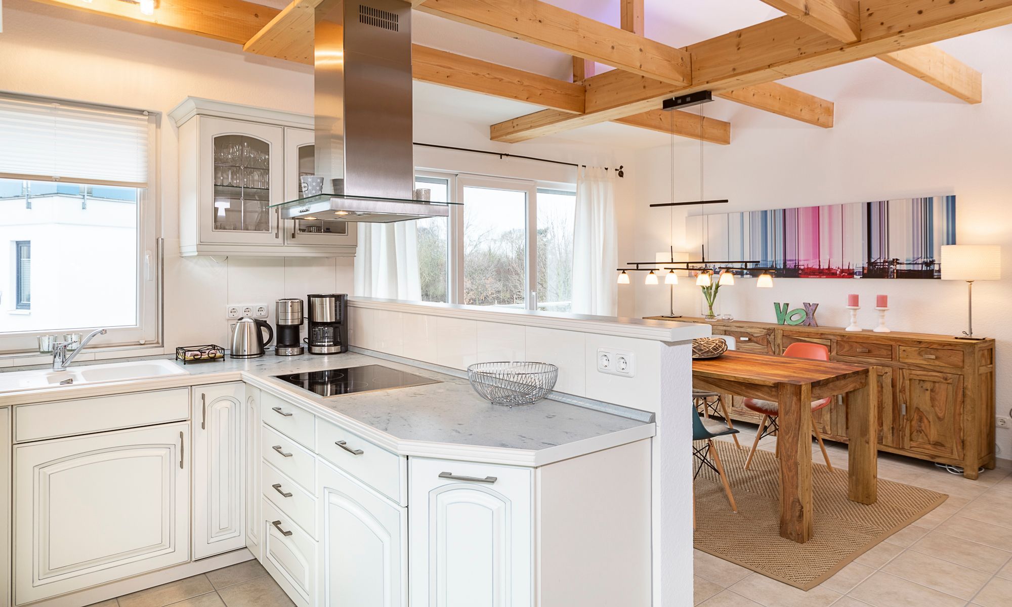 Freuen Sie sich auf diese mit viel Liebe zum Detail eingerichtete Ferienwohnung. Sofaecke mit Lounge-Funktion, vollausgestattete Küche, Essplatz für 4 Personen. Fahrstuhl bis fast vor die Wohnungstür, Fußbodenheizung. Große Loggia mit Gartenmöbeln.