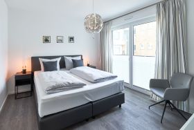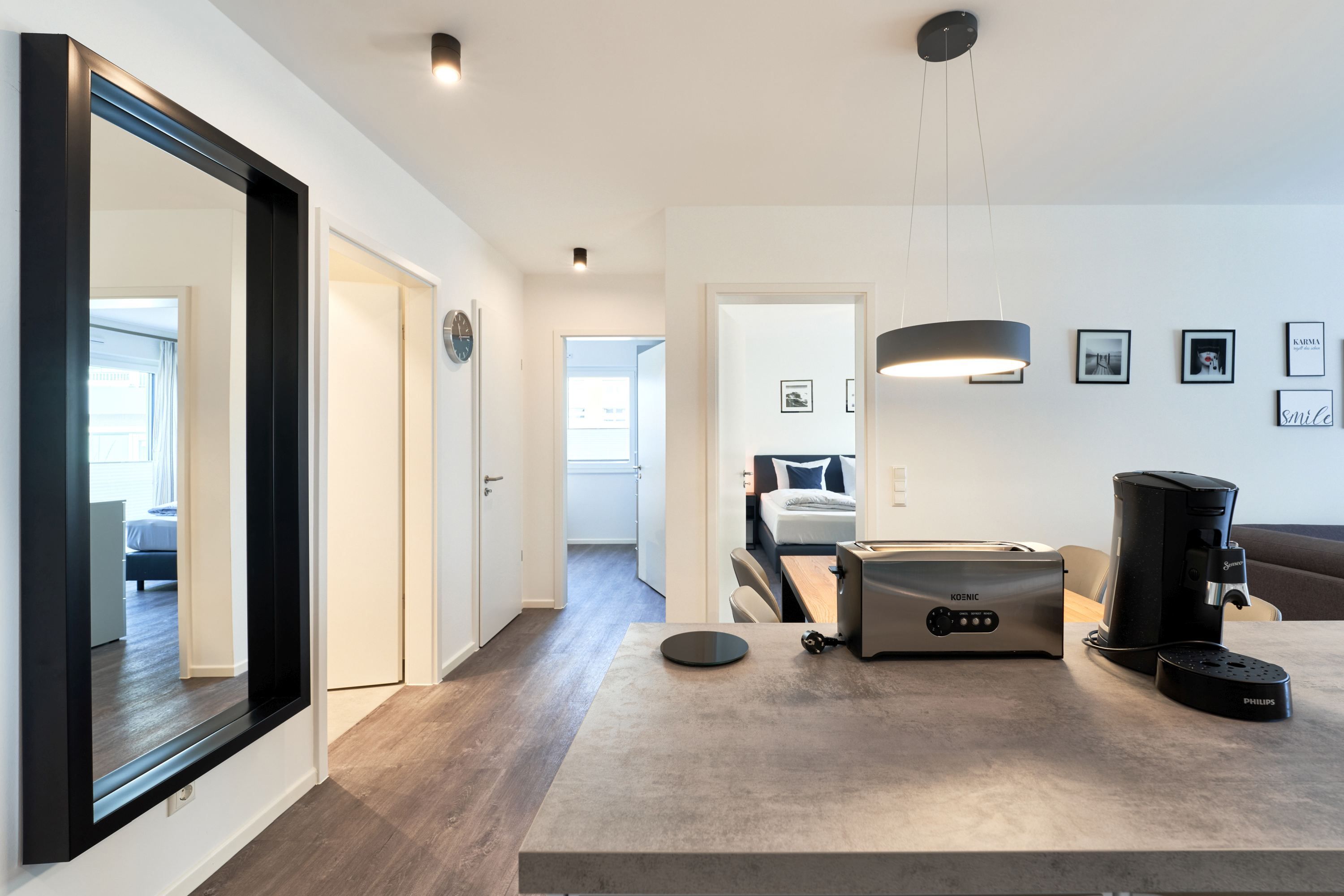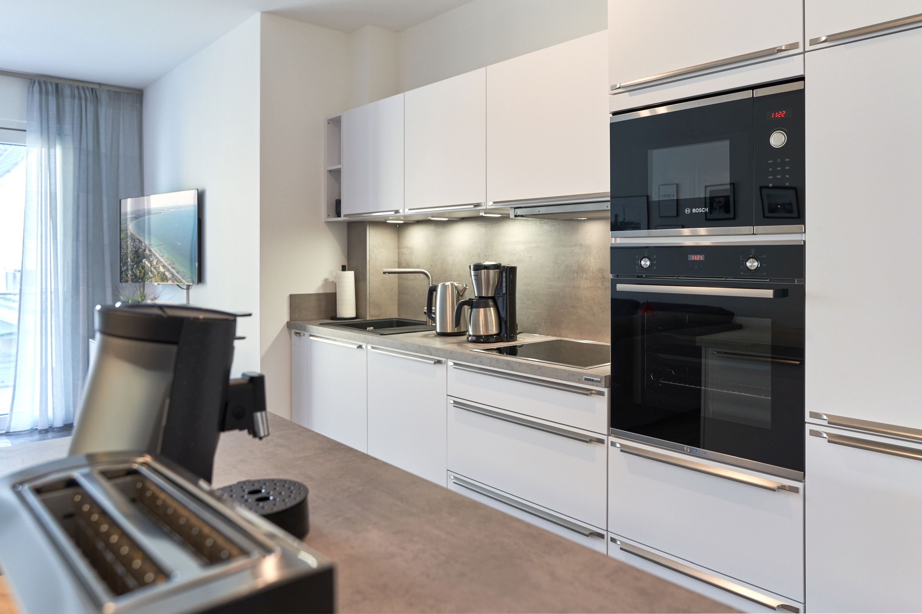 3-Zimmer, im 1. OG, mit Balkon. Diese feine Wohnung zeichnet sich durch eine moderne sowie gemütliche Inneneinrichtung aus. Die Küche ist mit hochwertigen Einbaugeräten und allen notwendigen Küchenutensilien ausgestattet. Neben einer Kaffeemaschine steht Ihnen auch eine Senseo-Maschine zur Verfügung sowie Spülmaschine, Induktionsherd, Backofen, Mikrowelle und vieles mehr. Im Wohnzimmer erwarten Sie ein gemütliches Ecksofa, eine PlayStation 4, ein Smart-TV in 46 und Apple AIR Play. Unbegrenztes Highspeed-WLAN steht für Entertainment und digitales Erleben zur Verfügung. Der Essbereich bietet Ihnen Platz für 4 Personen.