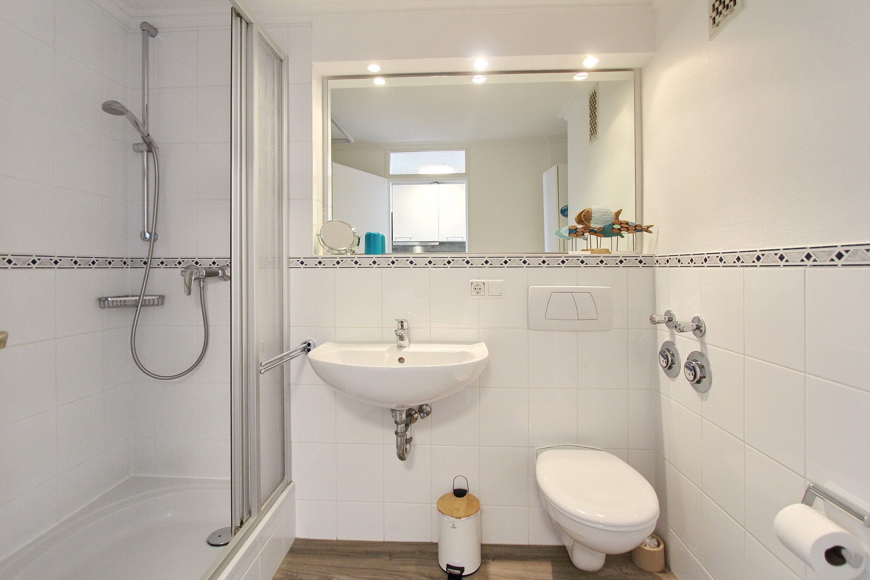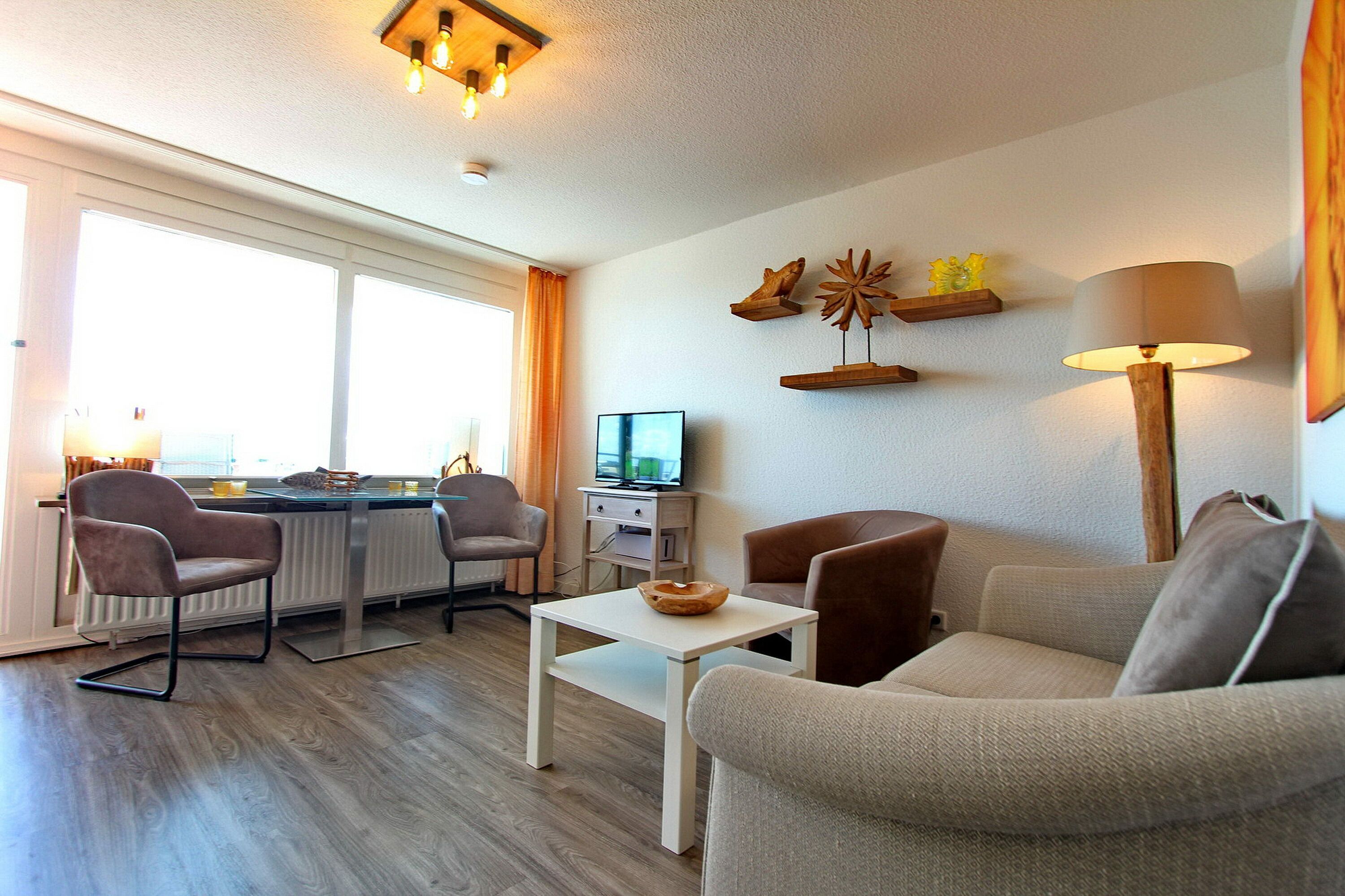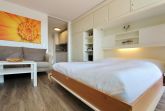 Diese Einzimmerwohlfühloase befindet sich im Haus Metropol in der 4. Etage und hat einen Balkon zur Ostseite. Der kombinierte Wohn-Schlafraum verfügt über ein Doppelschrankbett, einen Essplatz am Fenster mit 2 Stühlen, sowie eine Couch. In der Wohnung wurde hochwertiger Designfussboden verlegt. Das Badezimmer hat eine Dusche mit Duschhocker, beleuchtetem Schminkspiegel, einen Fön und einen mobilen Haltegriff. Um sich selbst zu verpflegen gibt es im Flur eine moderne Einbauküche mit Cerankochfeld, Geschirrspüler und Mikrowelle, sowie eine zusätzliche Nespressomaschine, einen Eierkocher und einen Smoothiemaker. Zur technischen Ausstattung dieser Wohnung gehört: ein Flachbildfernseher von Panasonic und ein Bluetoothradio mit CD Spieler. Ein freies WLAN Netzwerk (WEG Haus Metropol - Passwortfrei - ohne Gewähr) steht ihnen kostenfrei zur Verfügung. Wohnungsgröße: ca. 30 m².