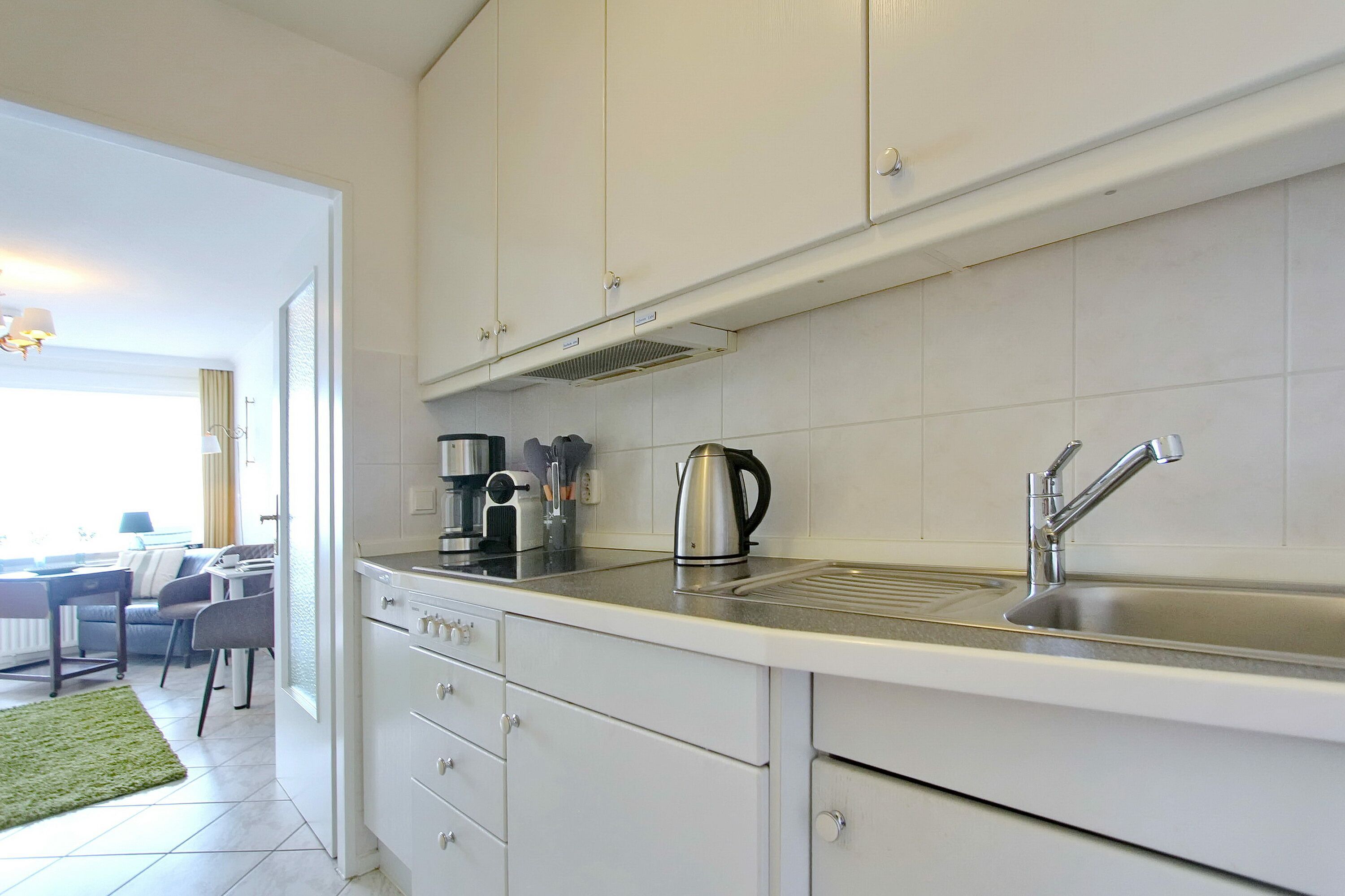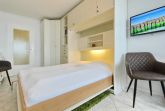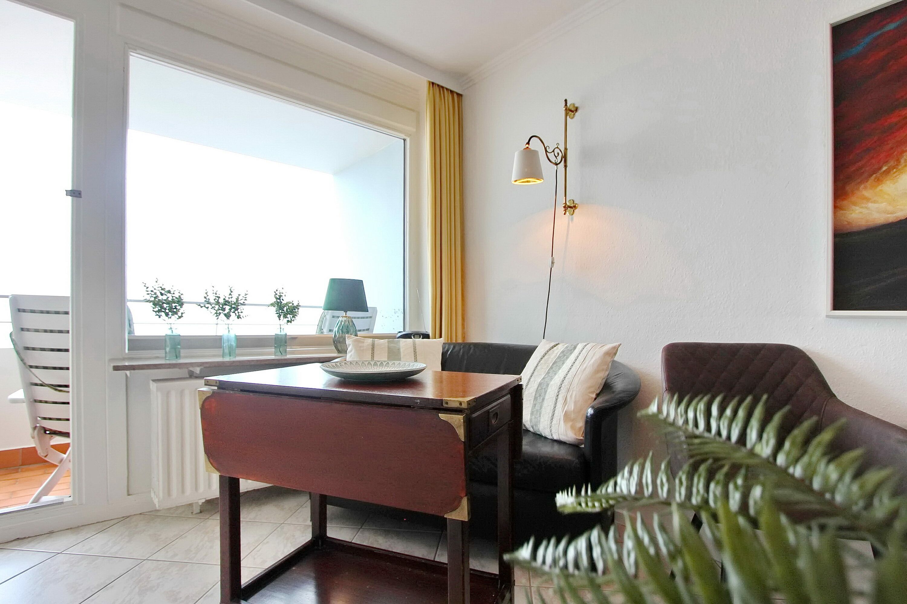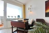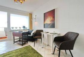 Gemütliche Einzimmerwohnung mit herrlichem Ausblick über den Strand und das Meer im Haus Metropol in der 5. Etage. Der kombinierte Wohn-/Schlafraum mit vorgelagertem Westbalkon (Balkonmöbel inkl.) verfügt über ein Doppelschrankbett, eine Ledercouch und einen Esstisch mit 2 Stühlen. Im Badezimmer gibt es eine Dusche (Fön ist ebenfalls vorhanden) und in der Küchenzeile im Flur mit Ceranfeld und zusätzlicher Nespressomaschine können sie sich selbst verpflegen. Zur technischen Ausstattung dieser Wohnung gehört: ein Smartfernseher von Panasonic und ein Bluetoothdockingstation mit Handyladestation. Ein freies WLAN Netzwerk (WEG Haus Metropol - Passwortfrei - ohne Gewähr) steht Ihnen kostenfrei zur Verfügung. Diese Nichtraucherwohnung hat eine Größe von ca. 25 m².