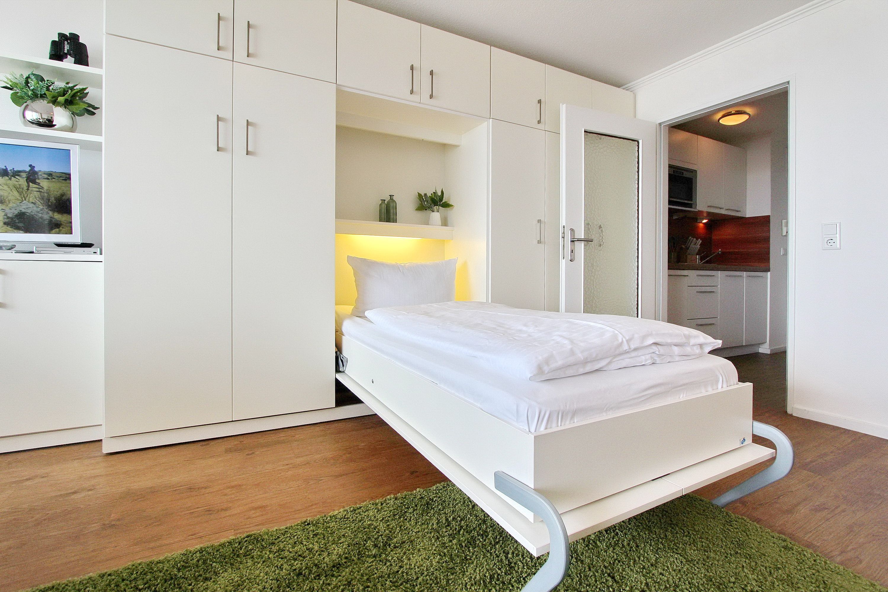 Wohlfühlappartement in der 5. Etage im Haus Metropol mit herrlichem Weitblick über den Strand und die Nordsee. Hell und freundlich eingerichteter Wohn-/Schlafraum mit vorgelagertem Westbalkon mit Balkonmöbeln. Zwei Einzelschrankbetten eine bequeme Couch und ein Sessel sind vorhanden und in der Wohnung wurde hochwertiger Designfussboden in Holzoptik verlegt. Am Essplatz am Fenster können sie alle Mahlzeiten zu sich nehmen und dabei den Blick aufs Meer genießen. Im Badezimmer gibt es eine Dusche, einen Fön, Handtuchtrockner, einen mobilen Haltegriff und einen Duschhocker. In der modernen Einbauküche mit Geschirrspüler, Cerankochfeld, Mikrowellen-Backkombination und zusätzlicher Nespressomaschine lassen sich bequem Mahlzeiten zubereiten. Selbst ein Mixer und Milchaufschäumer sind vorhanden und mit dem hochwertigen Geschirr von Seltmann Weiden decken Sie stilvoll den Tisch. Zur technischen Ausstattung der Wohnung gehört ein Flachbildfernseher, eine Bluetoothanlage mit CD Player und Radio von Sony und ein Blue Ray Player. Das freie WLAN Netzwerk (WEG Haus Metropol - Passwortfrei - ohne Gewähr) steht ihnen kostenfrei zur Verfügung. Diese Nichtraucherwohnung ist ca. 34 m² groß.