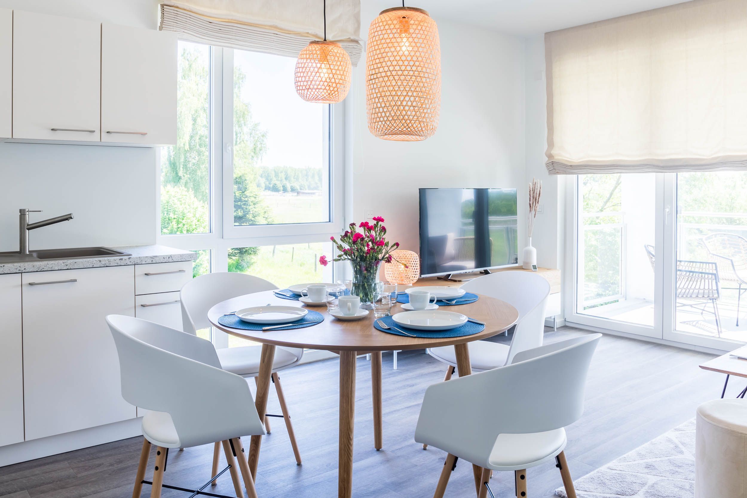 Gemütlich und zentrumsnah: Eine schöne 3-Zimmer-Ferienwohnung für 4 Gäste mit Balkon für einen unbeschwerten Ostseeurlaub mit Blick in die mecklenburgische Landschaft.