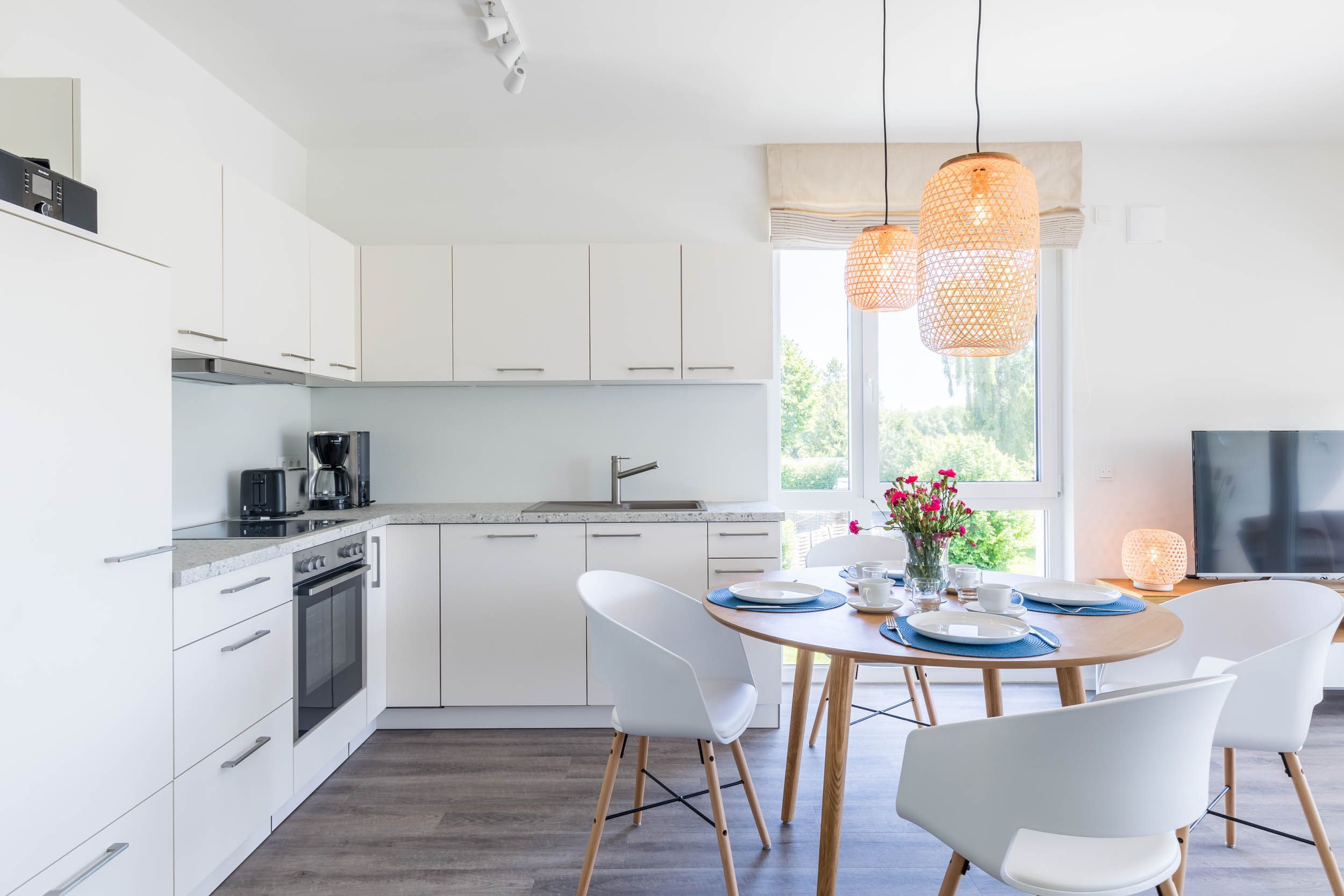 Die 69 qm große lichtdurchflutete 3-Zimmer-Ferienwohnung befindet sich im 1.OG und ist ideal für einen erholsamen Urlaub in Boltenhagen für bis zu 4 Gästen plus Kleinkind.