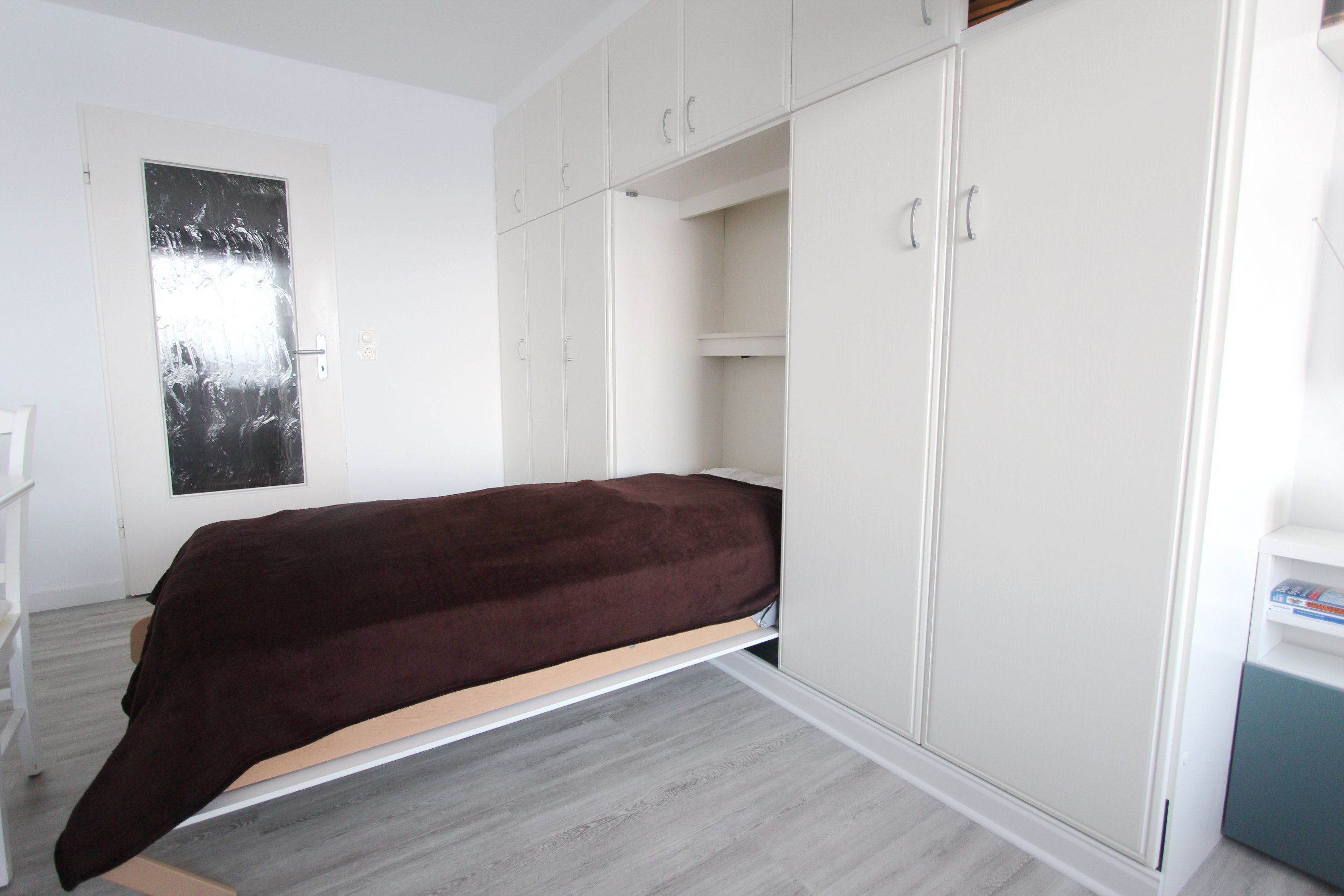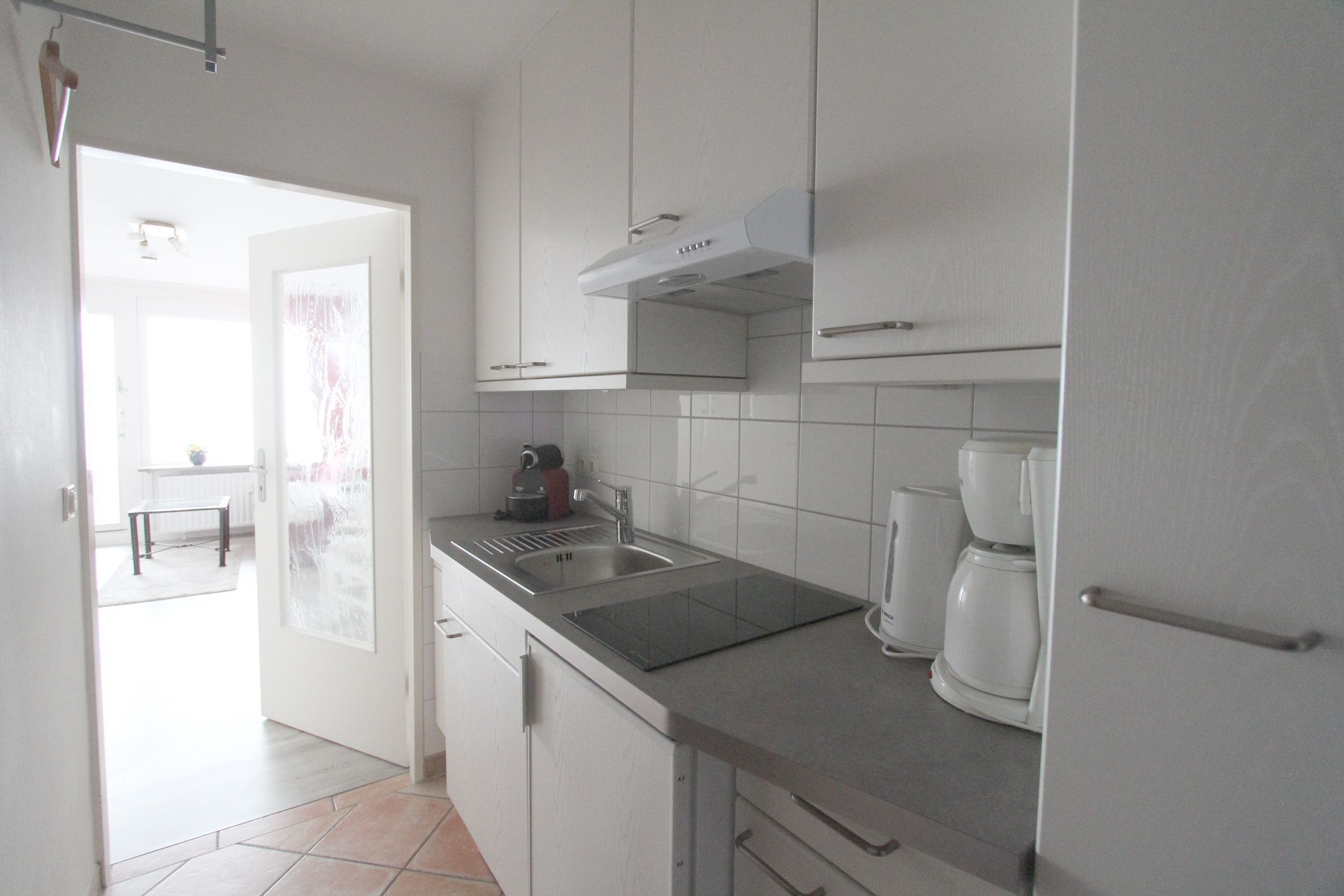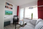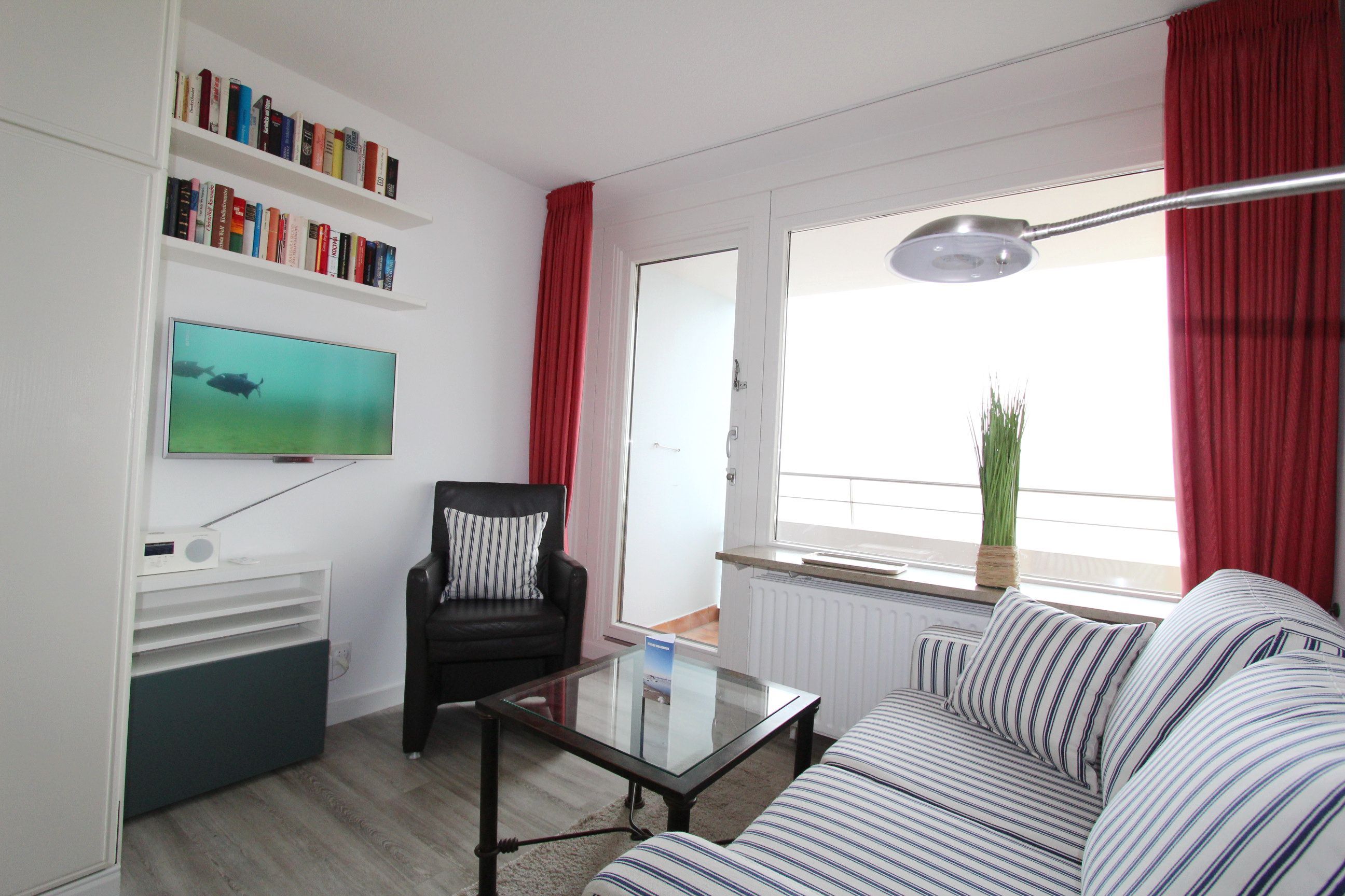 Wohlfühloase in der 5. Etage im Haus Metropol mit herrlichem Blick über den Strand und die Nordsee. Der kombinierte Wohn-/Schlafraum mit vorgelagertem Westbalkon und Balkonmöbeln verfügt über Einzelschrankbetten, einen Essplatz mit 2 Stühlen, sowie ein Sofa und einen Ledersessel am Fenster. In der ganzen Wohnung wurde Designfussboden verlegt. Die Einbauküche mit 2 Platten Ceranfeld, Dunstabzugshaube und zusätzlicher Nespressomaschine ermöglicht ihnen sich selbst zu verpflegen. Im Badezimmer gibt es eine Dusche. Zur technischen Ausstattung dieser Nichtraucherwohnung gehört: ein Flachbildfernseher und ein Tivoli-Radio mit Bluetooth. Ein freies WLAN Netzwerk (WEG Haus Metropol - Passwortfrei - ohne Gewähr) steht ihnen kostenfrei zur Verfügung. Wohnungsgröße: ca. 25 m².
