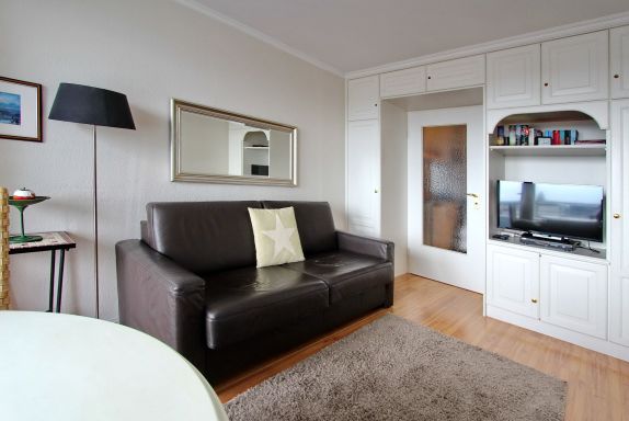 Diese Einzimmerwohnung in der 5. Etage im Haus Metropol hat einen herrlichen Weitblick über die Stadt, die Insel und bei klarem Wetter bis zum nordfriesischen Wattenmeer. Der Wohn-/Schlafraum mit vorgelagertem Ostbalkon verfügt über eine bequeme Schlafcouch (mit 1 Matratze) und einen Essplatz mit 2 Stühlen am Fenster. Durch den Designfussboden ist die Wohnung allergikerfreundlich und auch Synthetikbetten und Kissen sind vorhanden. Im neuen, modernen Badezimmer gibt es eine Dusche, Kosmetikspiegel, Fön und beheizten Handtuchhalter. Eine kleine Einbauküche mit Ceranfeld befindet sich im Flur. Zur technischen Ausstattung gehört ein Smart TV, eine DVD Player und ein Bluetooth-Radio mit CD-Player. Ein freies WLAN Netzwerk (WEG Haus Metropol - Passwortfrei - ohne Gewähr) steht ihnen kostenfrei zur Verfügung. Diese Nichtraucherwohnung hat eine Größe von ca. 23 m².