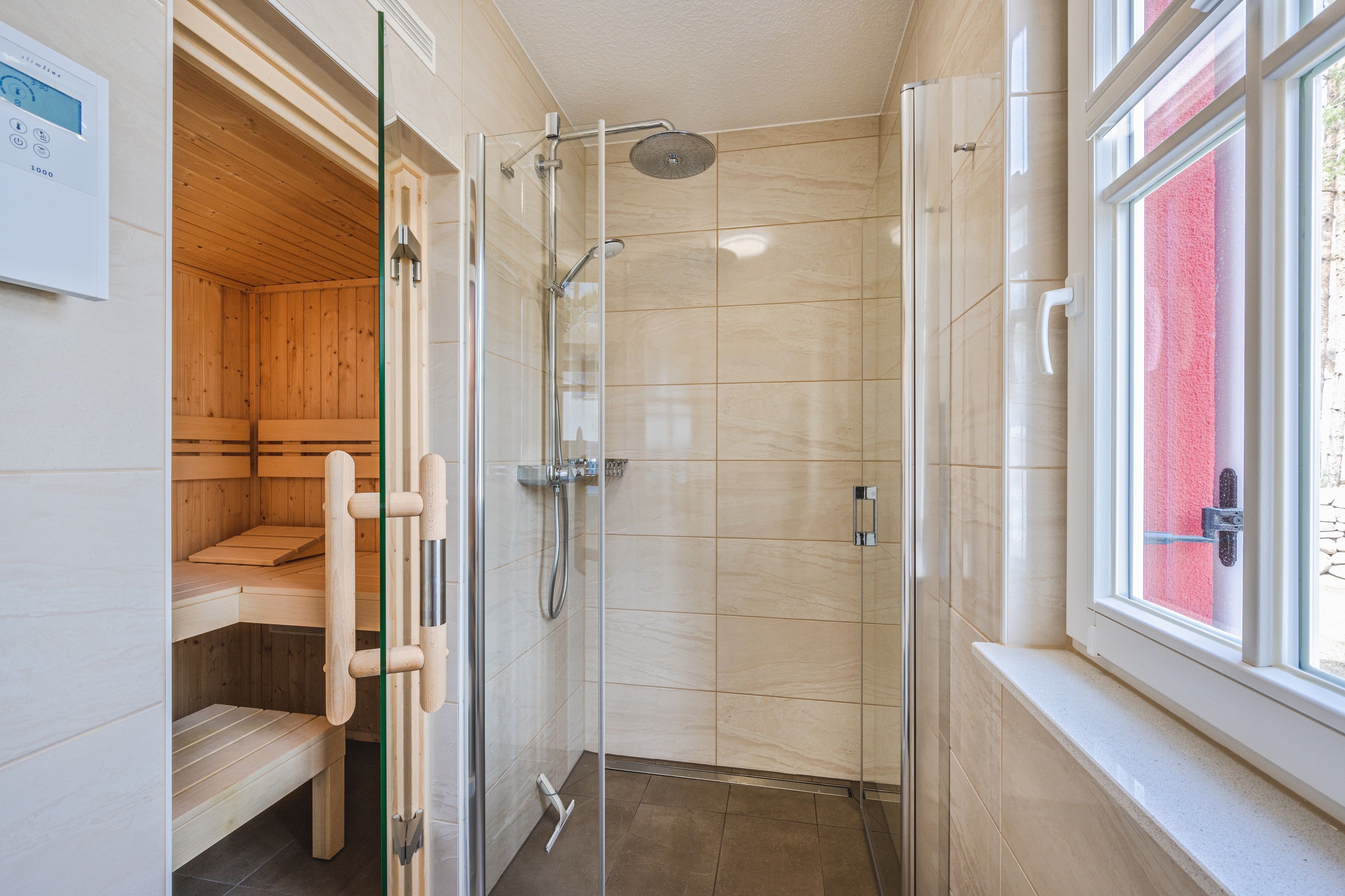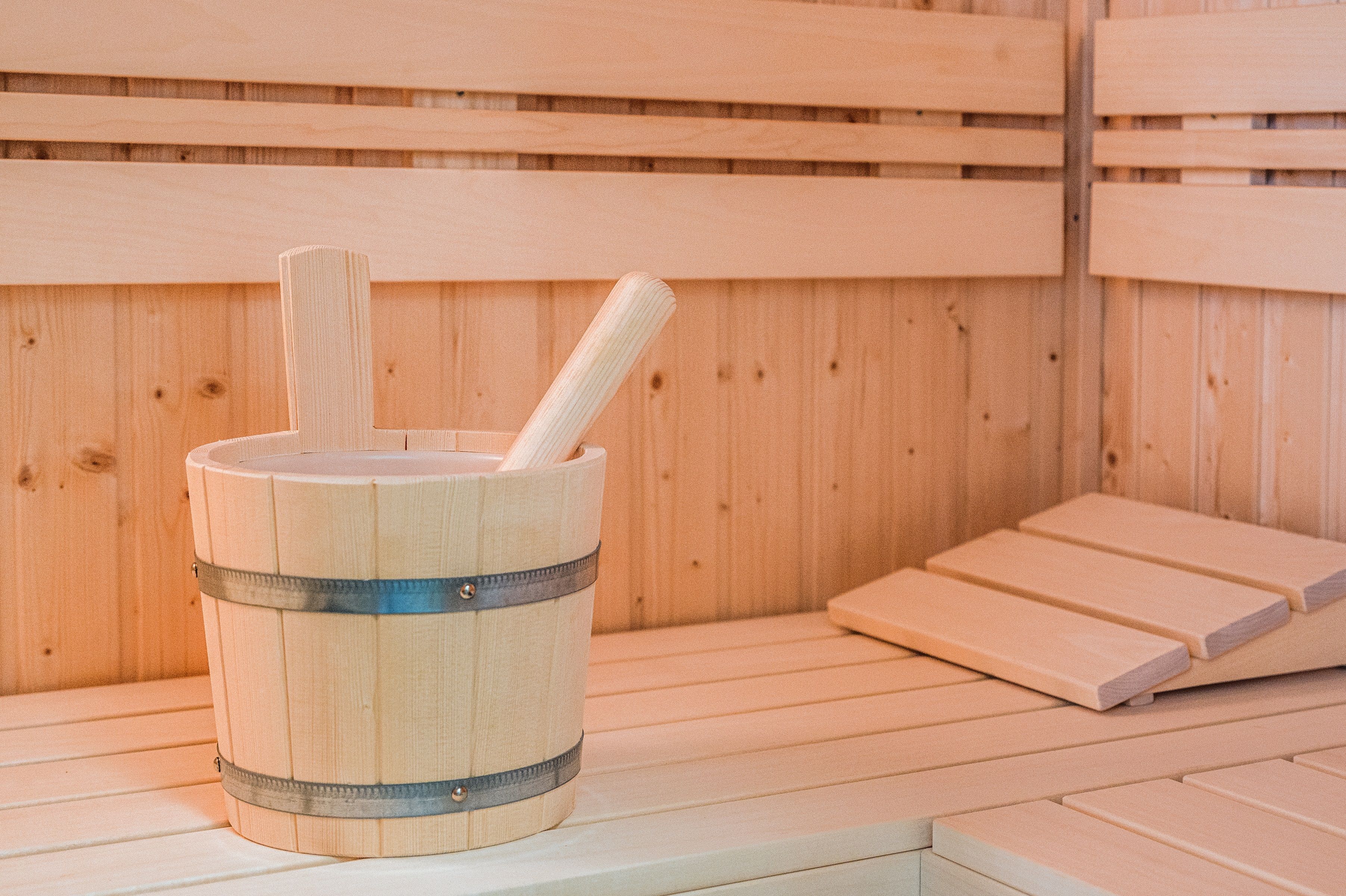 Ruhe und Erholung pur: Terrassenmomente im Freien oder entspannen in der eigenen Sauna der perfekte Ort, um loszulassen.