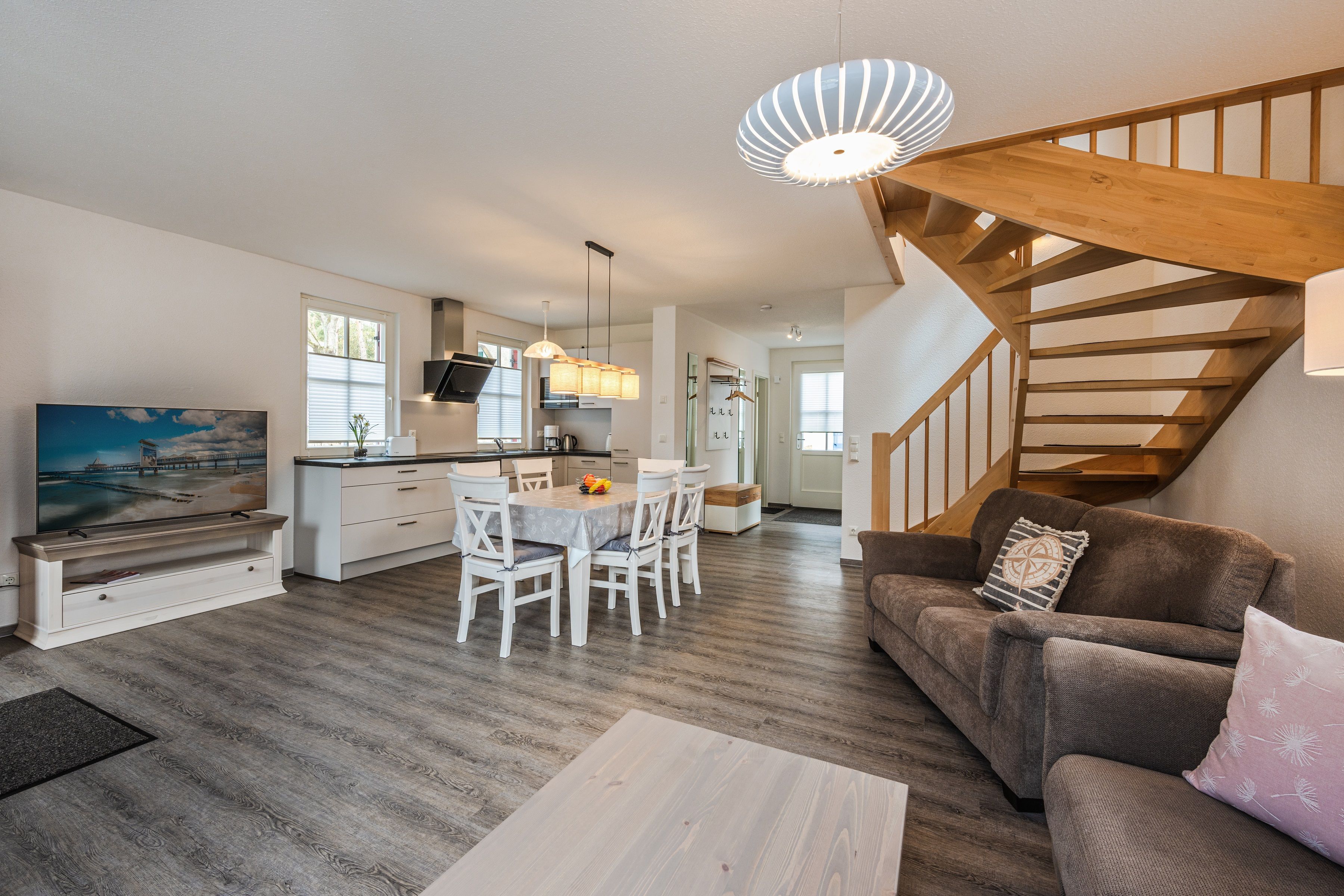 Willkommen in diesem charmanten Reetdachhaus mit ca. 88 m² Wohnfläche, komfortabler Ausstattung und Platz für bis zu 4 Personen. Das großzügige Wohnzimmer lädt mit zwei gemütlichen Couchen und einem großen Smart-TV-Flachbildfernseher zum Relaxen ein. Von hier aus erreichen Sie bequem die Süd/West-Terrasse, auf der Sie die Abende entspannt ausklingen lassen.