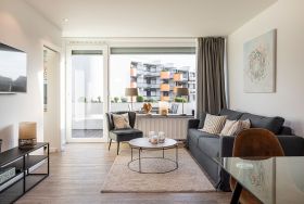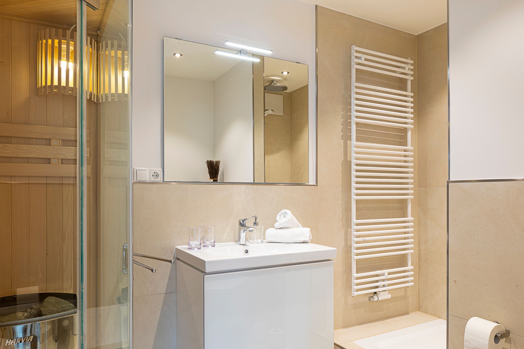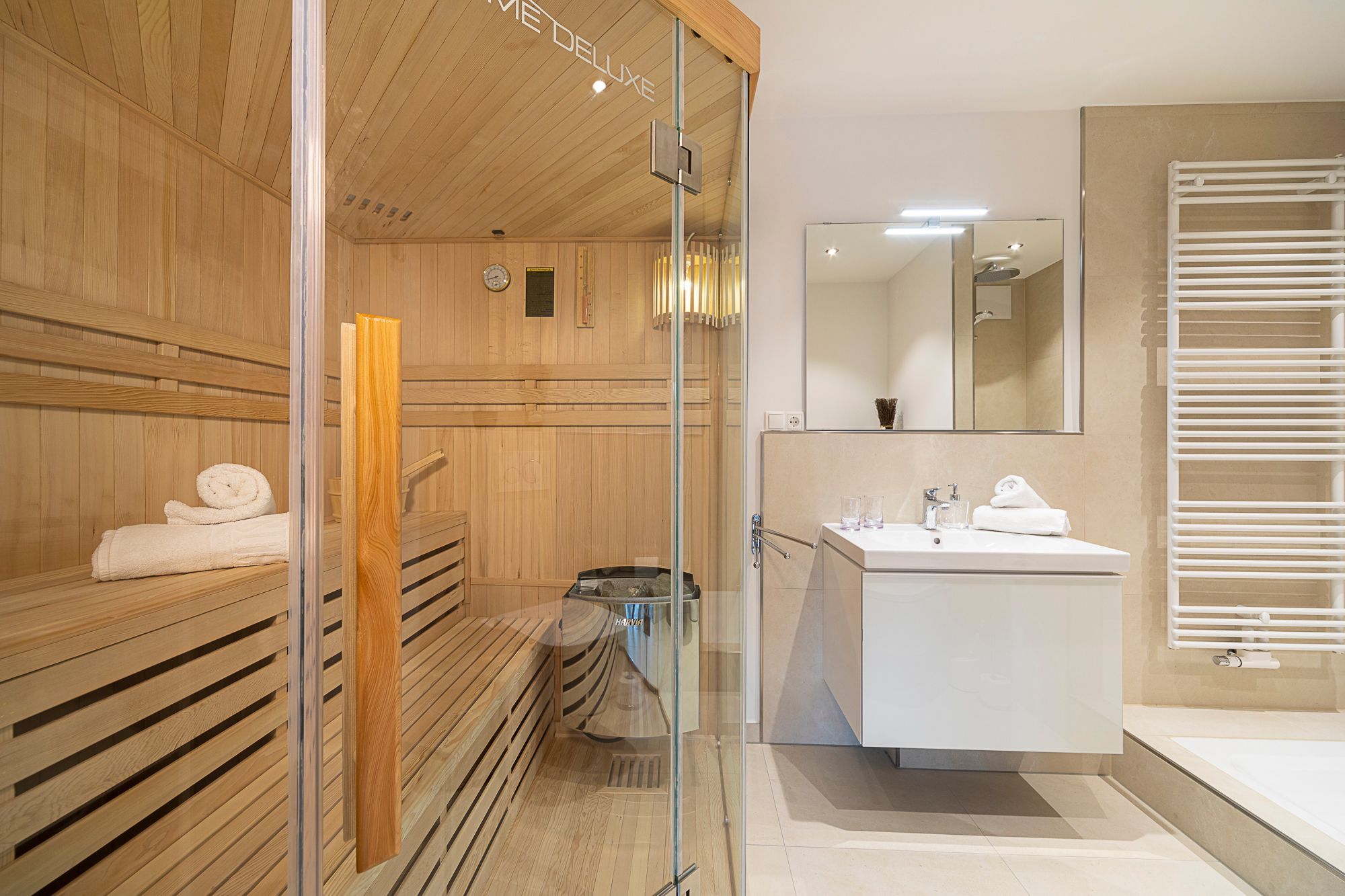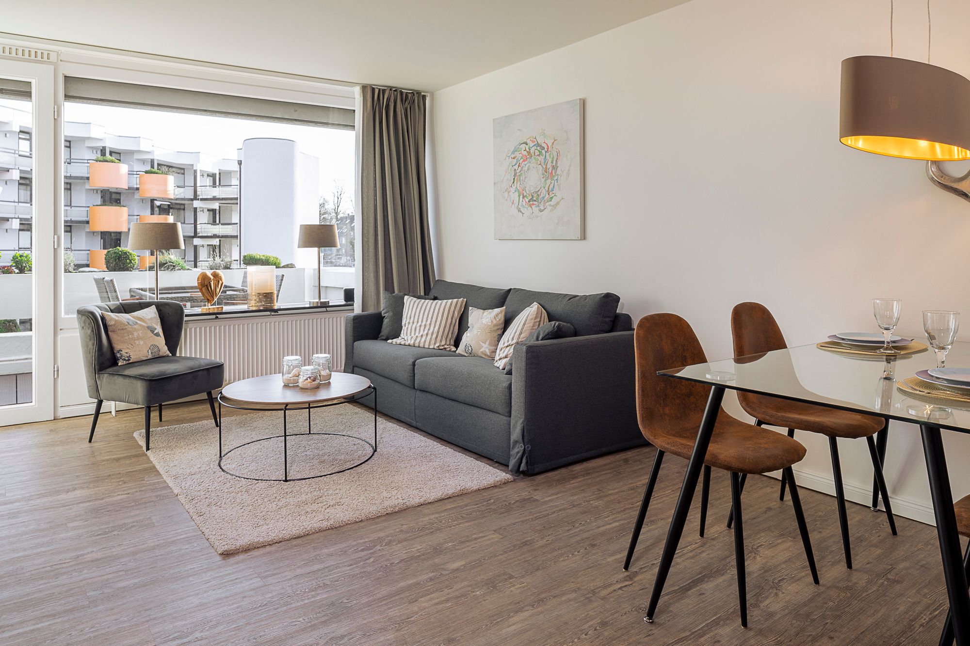 Flurbereich mit einem Einbauschrank. Großes Badezimmer mit begehbarer Dusche (1,80 x 0,90m), Kopf-/Regendusche sowie einer Sauna (bis 80 Grad), für bis zu drei Personen (canadisches Hemlocktannenholz, große Glasfront). Die sehr ansprechende Einbauküche lässt keine Wünsche offen: Spülmaschine, Nespresso-Maschine, Kaffeefiltermaschine, Toaster, Mixer, Pürierstab und vieles mehr sind vorhanden. Der gemütliche Essbereich ist für bis zu vier Personen geeignet. Hier finden Sie auch Platz für gesellige Spieleabende (Spielesammlung und Puzzle sind vorhanden). Der feine Wohnbereich ist mit einem bequemen Sofa ausgestattet, das in wenigen Handgriffen zu einem Schlafsofa/ Bettsofa (Liegefläche 1,60 x 2,00m, Federholzrahmen incl. Lattenrost und Matratze) umfunktioniert werden kann. Flach-TV 42, Radio mit Bluetooth-Lautsprecher und WLAN sind vorhanden. Vom Wohnzimmer aus gelangen Sie auf den Südbalkon. Hier warten ein Strandkorb sowie ein Tisch mit vier Stühlen auf Sie. Eine elektrische Markise spendet hier Schatten. Träumen mit Blick auf die Ostsee im Strandkorb liegt ihr Lieblingsbuch schon bereit? Das Schlafzimmer ist mit einem Boxspringbett ausgestattet. Zum Verdunkeln befinden sich Verdunklungsvorhänge an den Fenstern.
