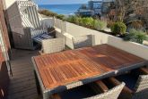 2-Zimmer-Ferienwohnung, ca. 56 m², Südbalkon mit herrlichem Ostseeblick, Sauna, großes Duschbad, Flurbereich mit Einbauschrank, Einbauküche, Wohnbereich mit Essbereich, Strandkorb auf dem Balkon, Kfz-Außenstellplatz, 2. OG, Fahrstuhl, bis zur Wohnung sind jedoch wenige Treppenstufen zu gehen.