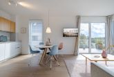 Sehr feine Wohnung, hier fühlen Sie sich bei hochwertiger Ausstattung schon beim Betreten der Wohnung wohl. Ess- und Küchenbereich sind harmonisch aufeinander abgestimmt. Die Küchenausstattung lässt keine Wünsche offen. Der Wohnbereich ist auch gleich Wohlfühlbereich - haben Sie Ihr Lieblingsbuch dabei? Auf dem Balkon stehen Ihnen Tisch und Stühle sowie ein Sonnenschirm zur Verfügung.