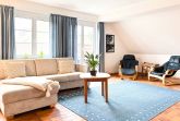 • Wohnbereich: Gemütlicher Wohnraum mit Schlafcouch, stilvoller Sitzgruppe, Flachbild-TV, DVD-Player und CD-Radio für entspannte Stunden.