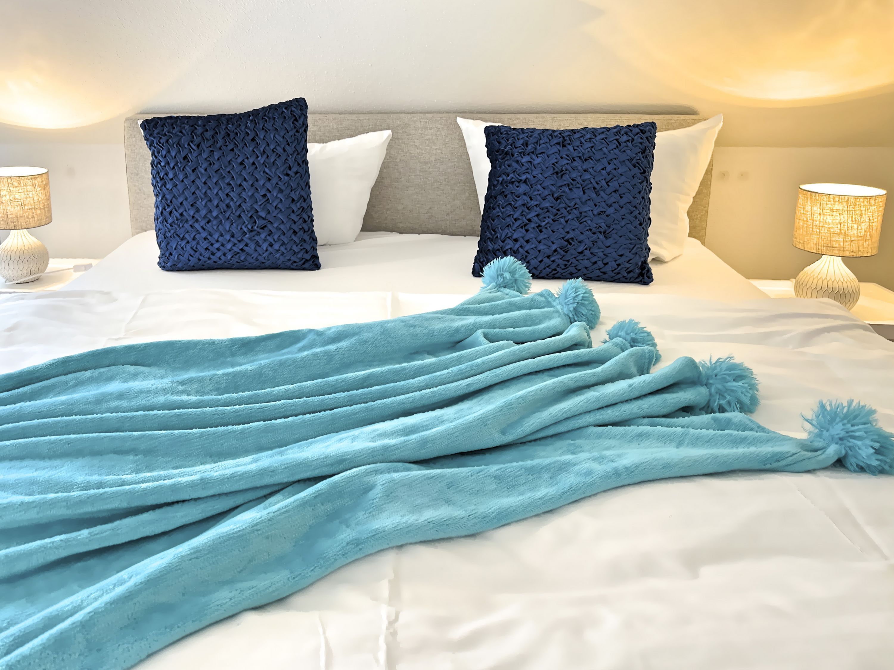 Die Ferienwohnung empfängt Sie mit einer harmonischen Kombination aus modernem Komfort und maritimem Ambiente. Der helle Wohnbereich lädt zu entspannten Stunden ein, während die voll ausgestattete Küchenzeile keine Wünsche offen lässt. Genießen Sie Ihre Mahlzeiten auf dem Balkon mit Gartenblick und lassen Sie den Tag in gemütlicher Atmosphäre ausklingen. Die modernen Badezimmer und die komfortablen Schlafzimmer bieten zusätzlichen Komfort für erholsame Nächte.