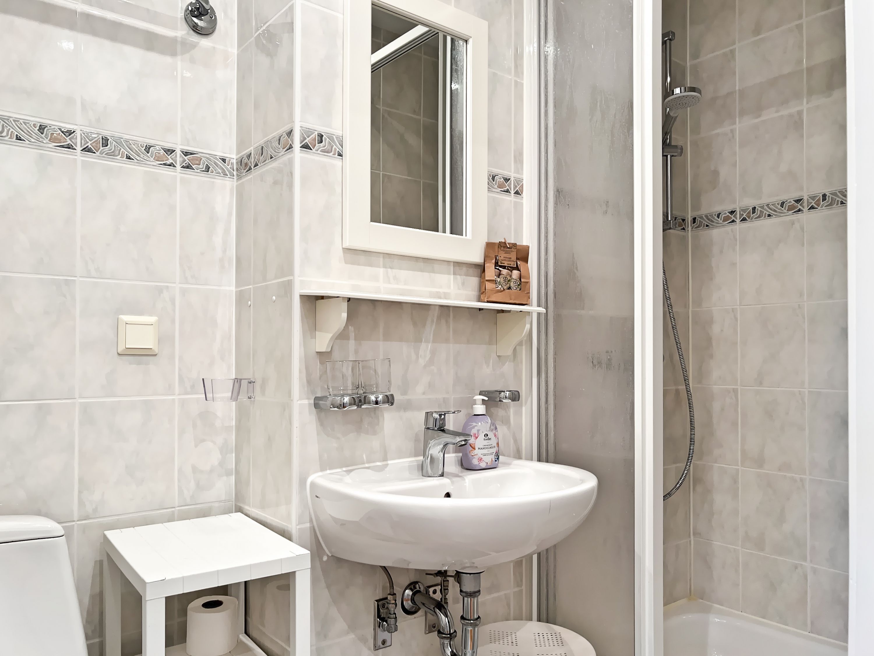 • Badezimmer: Modernes Bad mit Dusche/WC und Haartrockner