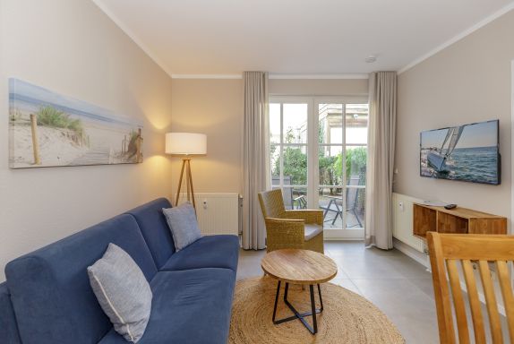 Das strandnahe, moderne und freundliche 2-Zimmer-Appartement 233 (ca. 30 m²) im Erdgeschoss von Haus C besitzt ein hohes Maß an Wohlfühlkomfort und ist komplett eingerichtet. Das Appartement wurde im Jahr 2022 komplett renoviert und neu möbliert. Alle Fußböden der Wohnung sind mit feinem und edlem Steinzeug gefliest.
