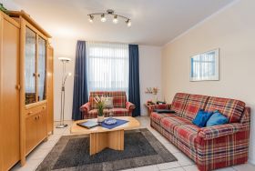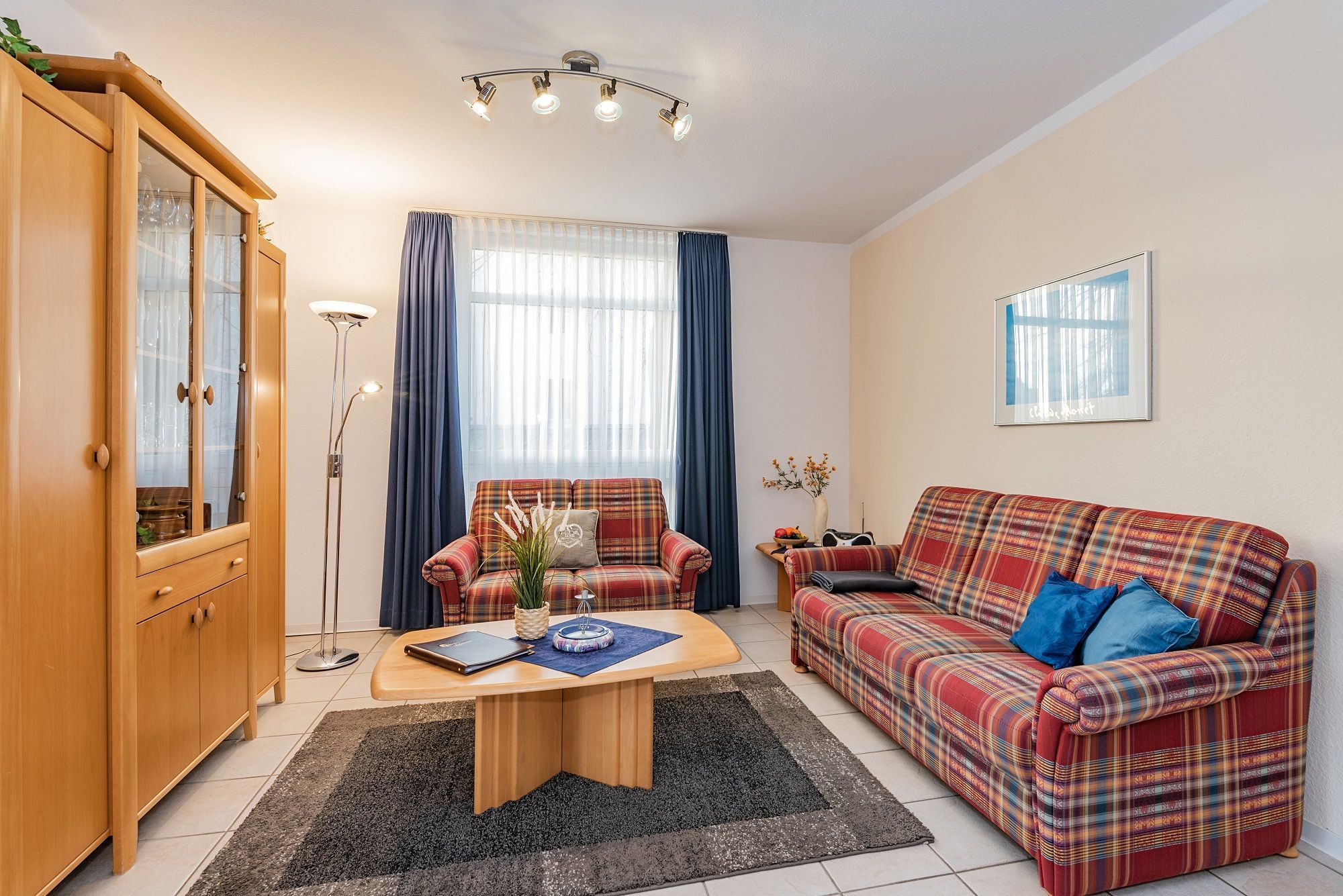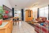 Die 61 m ² große Ferienwohnung 04 befindet sich in der 1. Etage im Haus Roland (rechtes Gebäude vom Parkplatz aus gesehen). Sie bietet mit ihren drei Zimmern ausreichend Platz für bis zu 4 Personen.