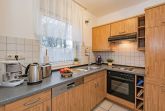 Die hier angrenzende Küchenzeile ist mit einem Kühlschrank mit Gefrierfach, einem Geschirrspüler und einem Backofen mit Kochfeld ausgestattet. Eine Kaffeemaschine, ein Toaster und ein Wasserkocher stehen Ihnen hier selbstverständlich zur Verfügung.