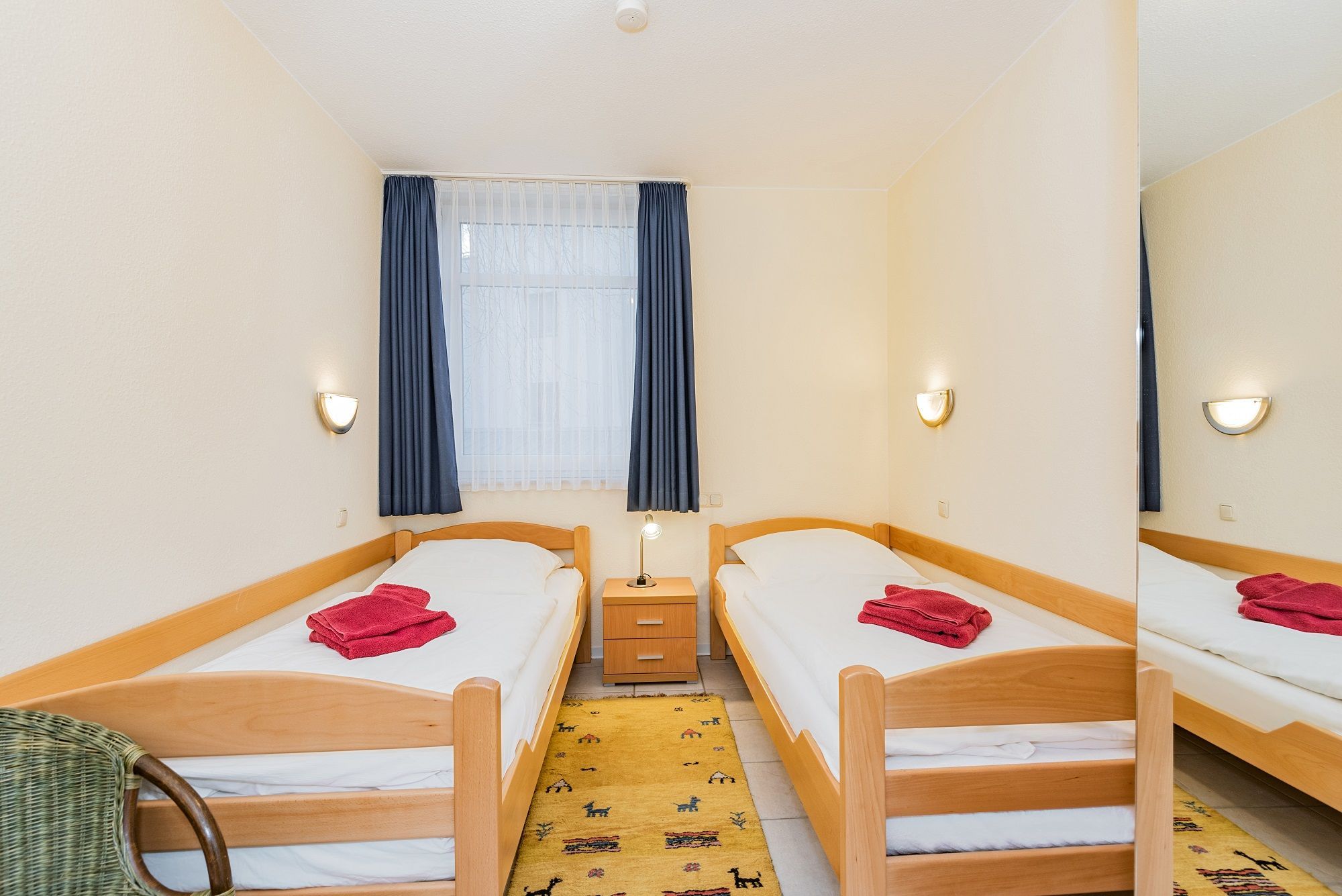 Das zweite Schlafzimmer ist mit zwei Einzelbetten ausgestattet.