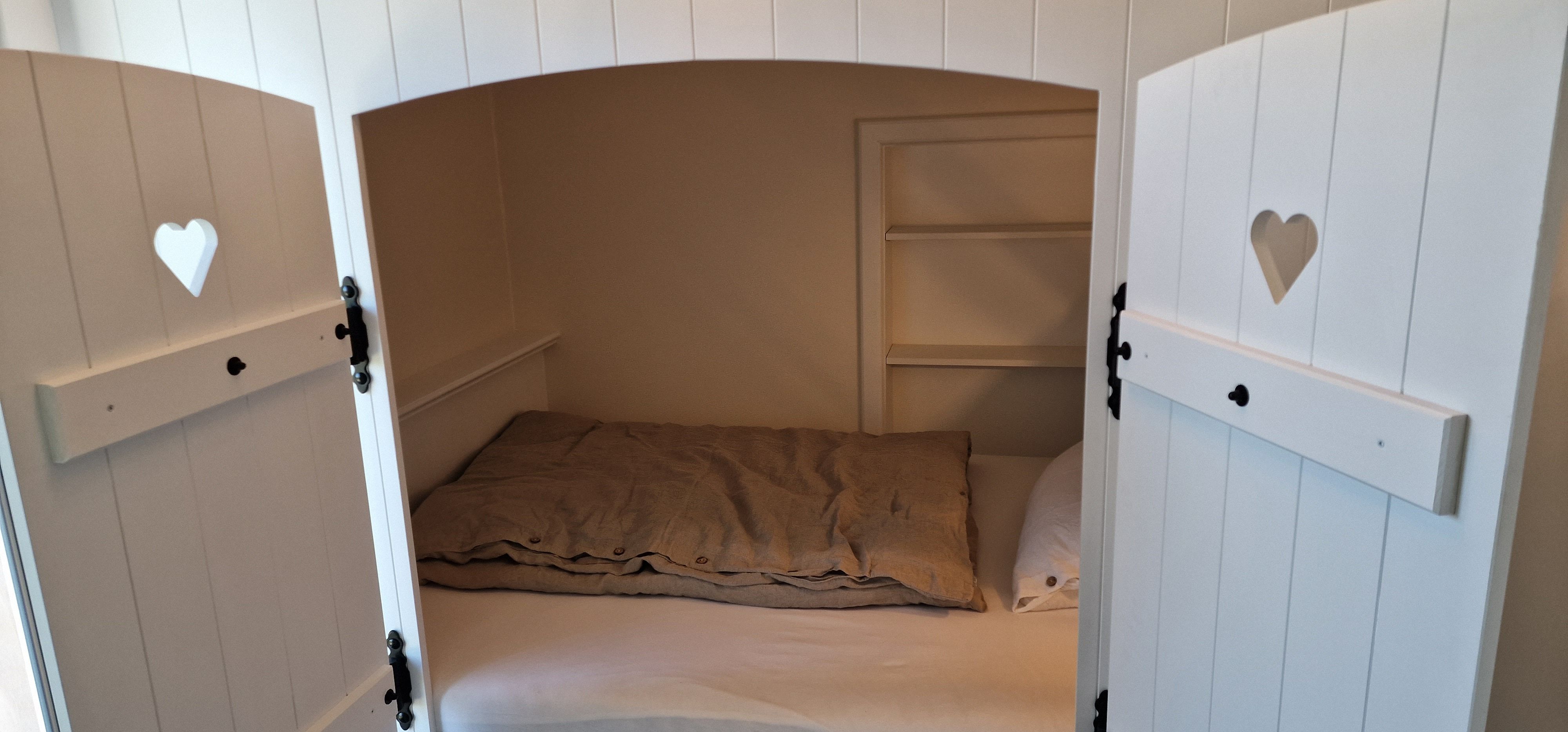 - Schlafzimmer mit Alkovenbett (140x200); Verdunklungsplissees; Bettwäsche ist inklusive