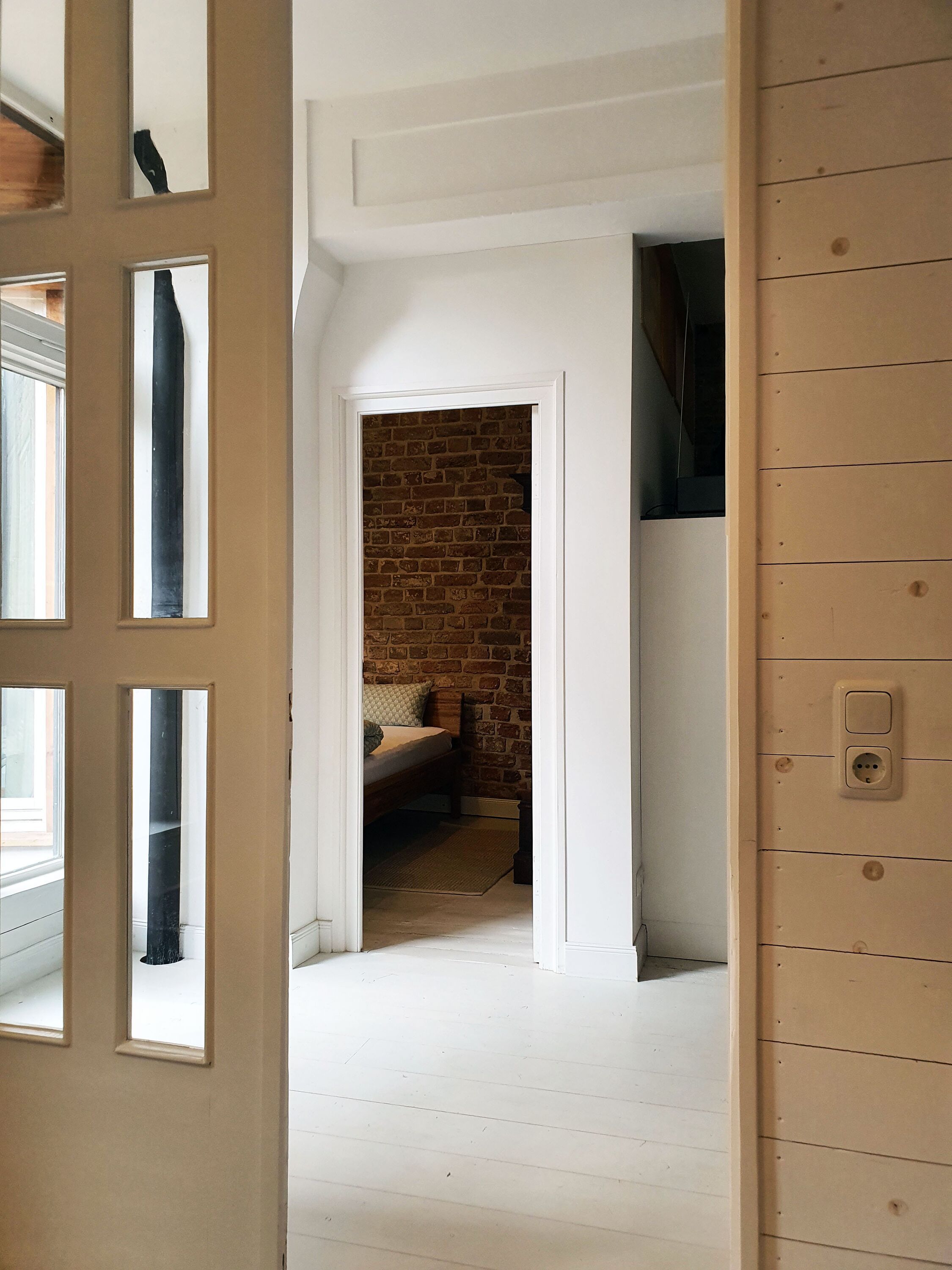 Die Wohnung befindet sich im Erdgeschoss eines historischen Stadthauses in dem man den Zeitgeist der letzten Jahrhunderte spüren kann. Im Hof können Besucher einen typischen Wismarer Innenhof einer Möbeltischlerei aus der Zeit des späten 19. Jh. bis Mitte des 20. Jh. in seiner Originalform erleben, der von einer mit Efeu berankten spätmittelalterlichen Hofmauer zur Löwenapotheke begrenzt wird.