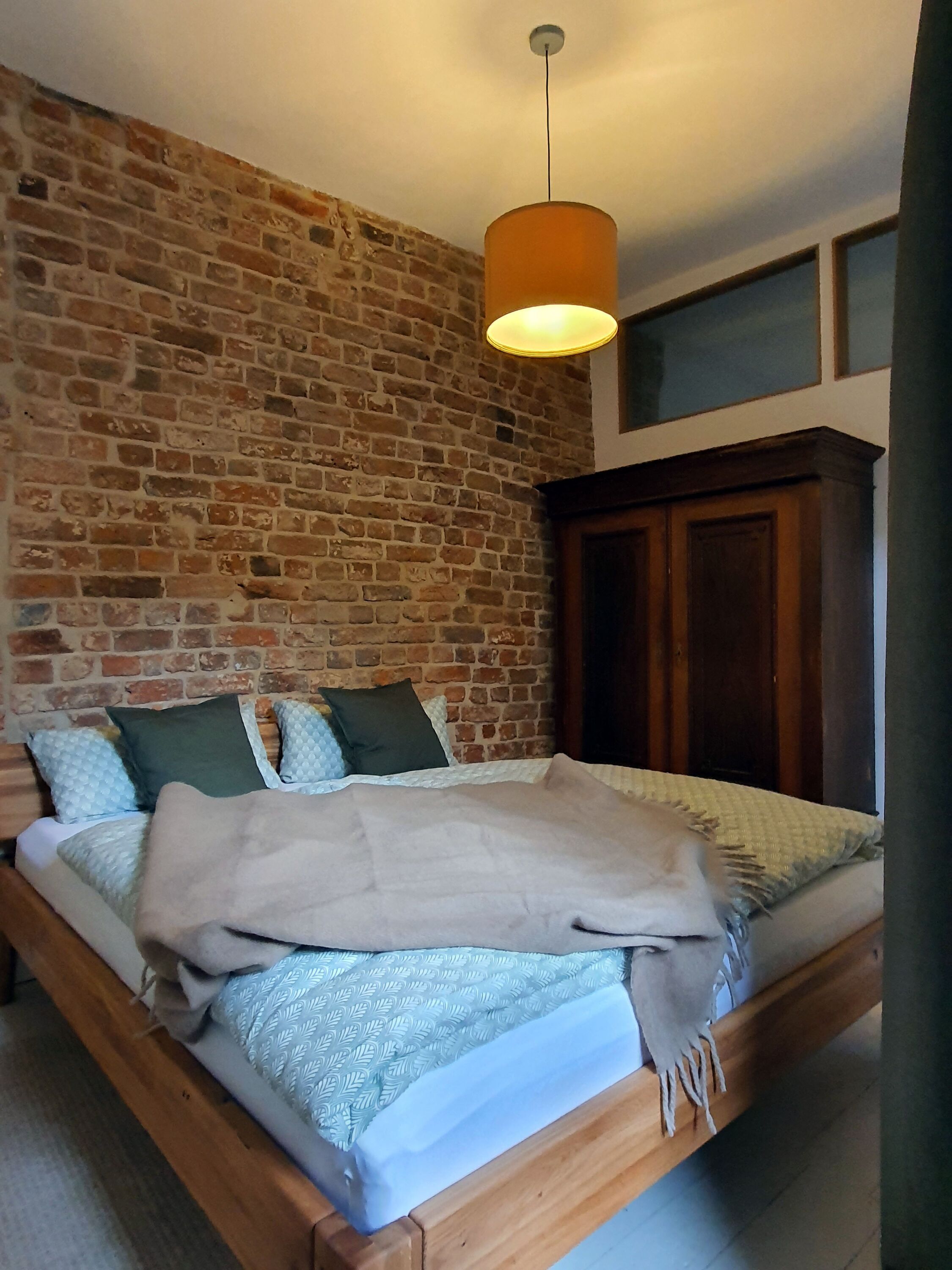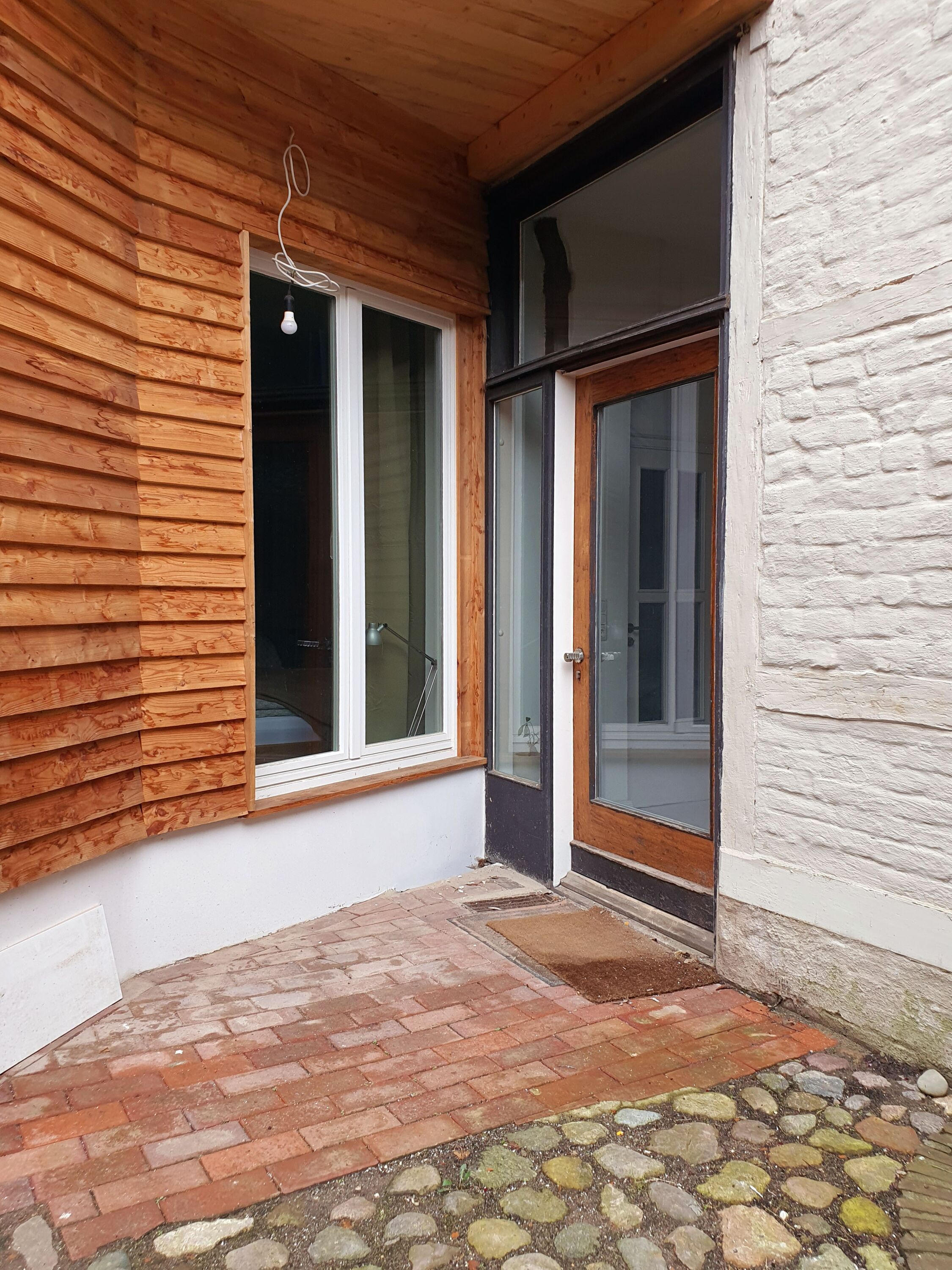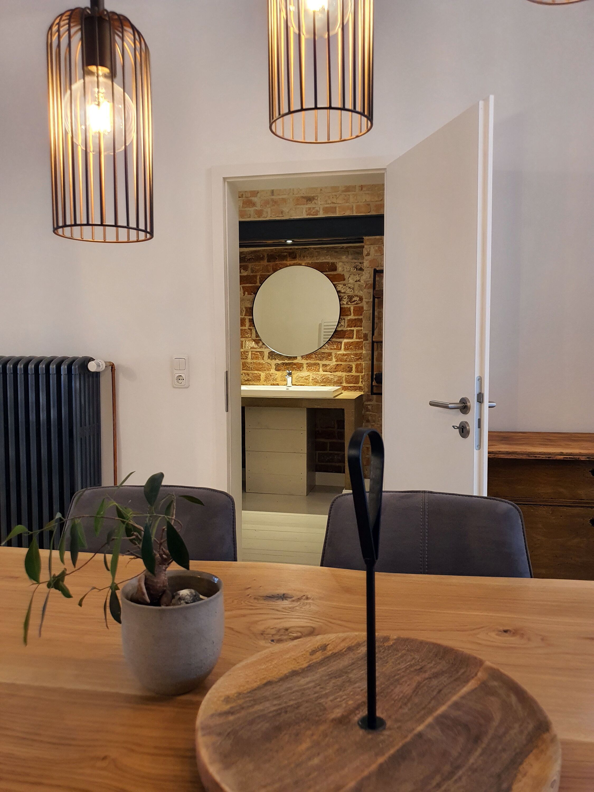 Die Ferienwohnung war bis vor kurzen noch ein Geschäft mit Wohnatelier, der Schauraum zur Straße steht unseren Gästen zum Abstellen Ihrer Fahrräder, als Schlechtwetterraum für Kinder oder Ähnlichem zur Verfügung. Die Wohnung selbst befindet sich direkt hinter dem Schauraum und öffnet sich zum Innenhof, der den Gästen zur Verfügung steht.