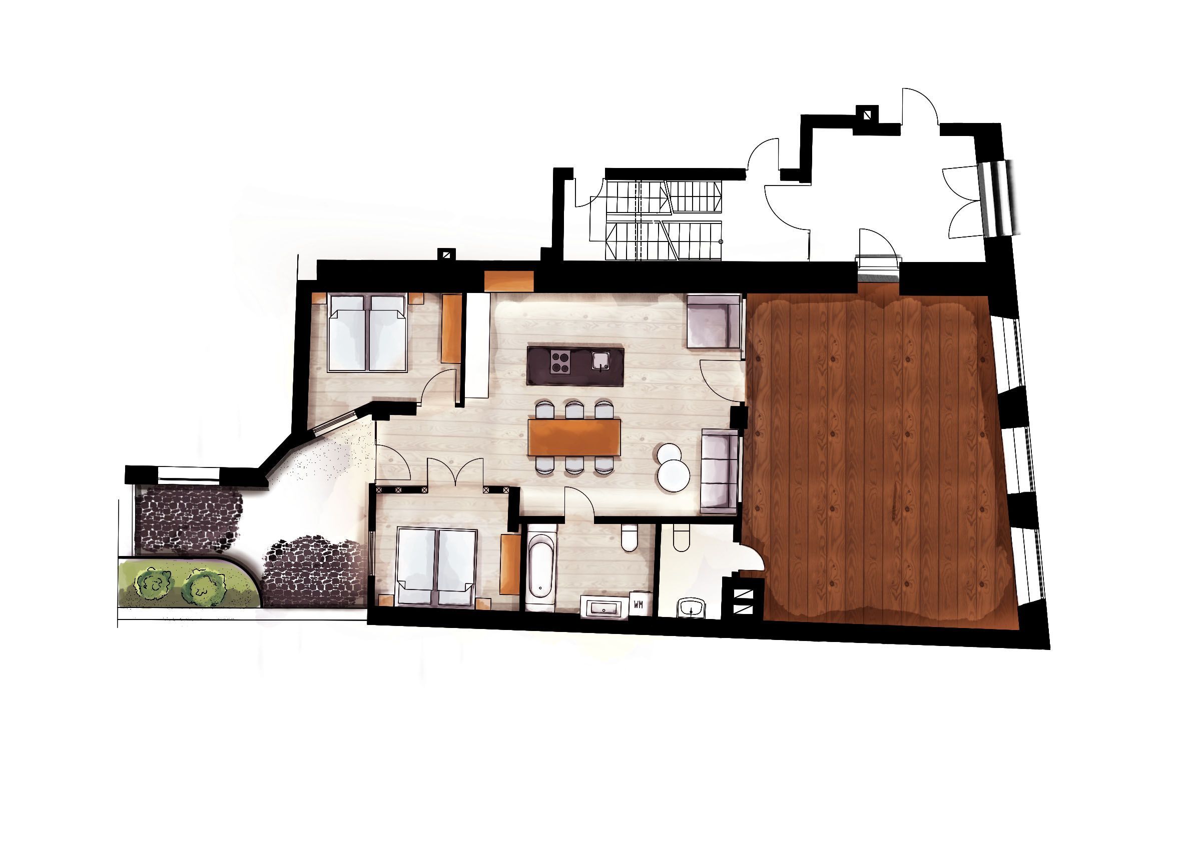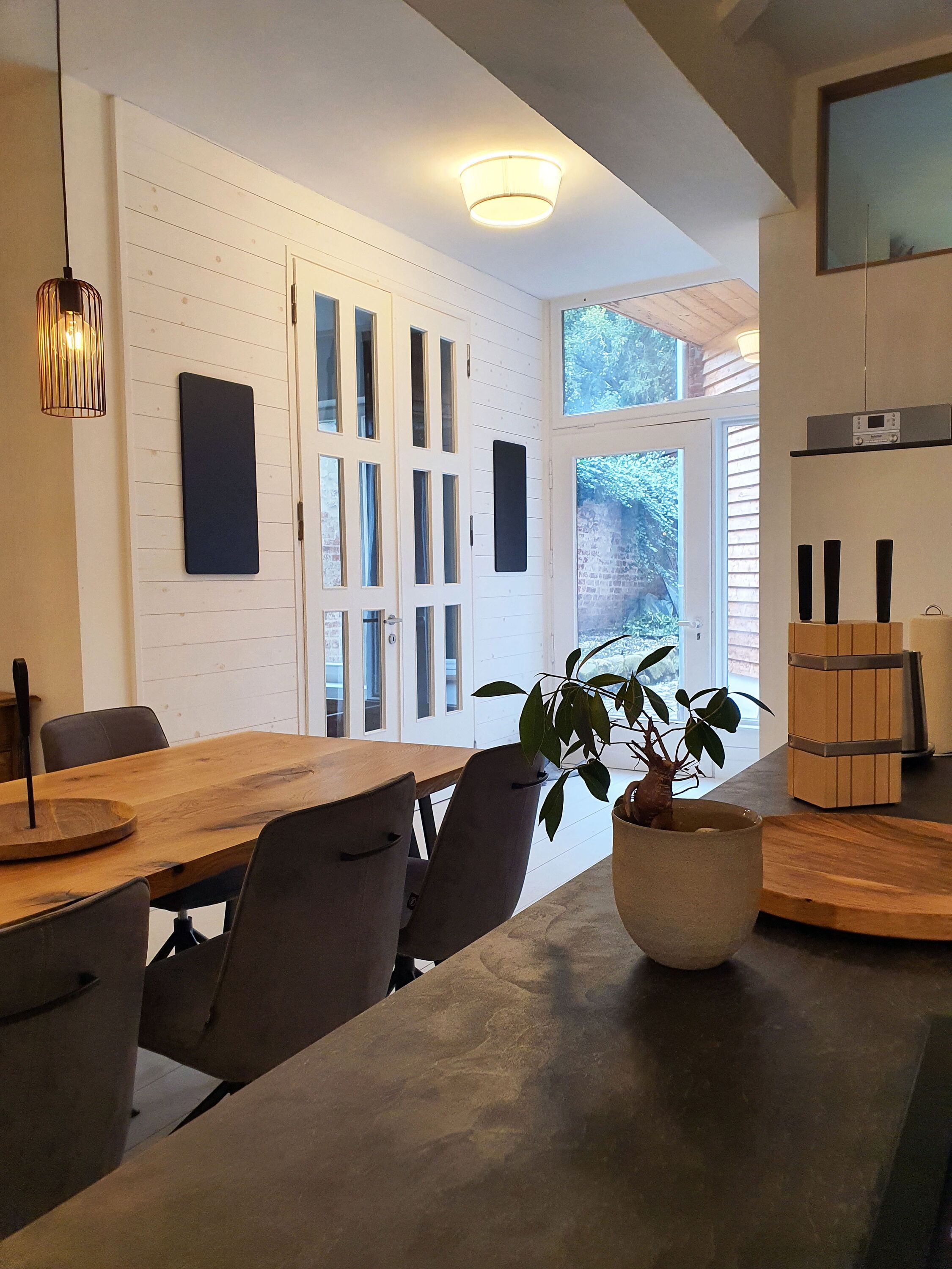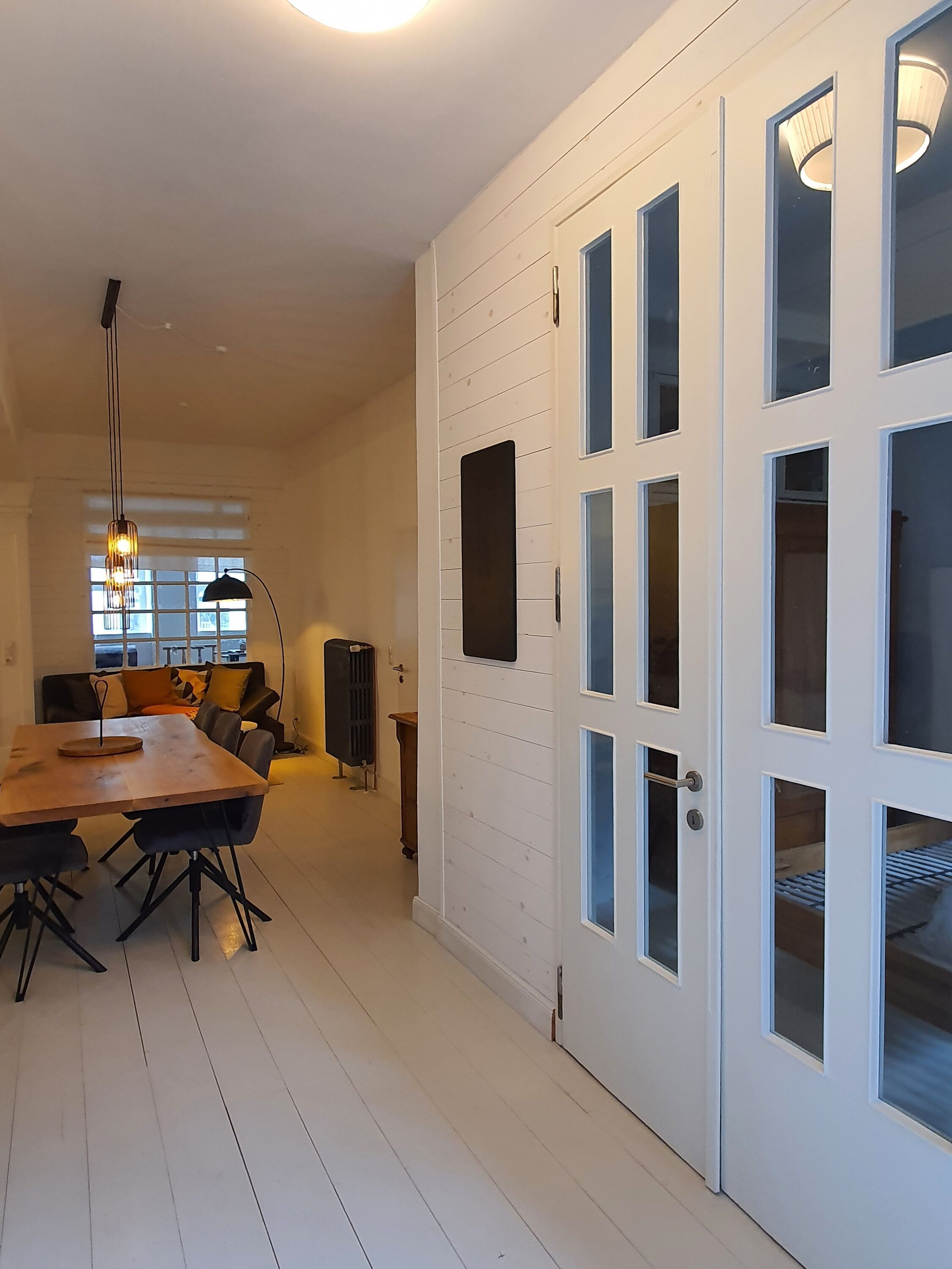 Die Ferienwohnung war bis vor kurzen noch ein Geschäft mit Wohnatelier, der Schauraum zur Straße steht unseren Gästen zum Abstellen Ihrer Fahrräder, als Schlechtwetterraum für Kinder oder Ähnlichem zur Verfügung. Die Wohnung selbst befindet sich direkt hinter dem Schauraum und öffnet sich zum Innenhof, der den Gästen zur Verfügung steht.