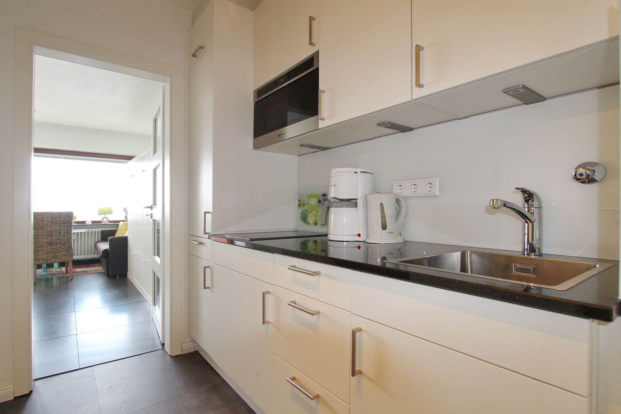 Gemütliche Einzimmerwohnung mitten im Zentrum von Westerland. Nur wenige Gehminuten zu den Fussgängerzonen und zum Strand. Sie befindet sich in der 6. Etage mit Balkon und herrlichem Weitblick über die Insel. Das kombinierte, geflieste Wohn-/Schlafzimmer ist mit einem Doppelschrankbett, einem kleinen Zweisitzersofa und einem Essplatz mit 2 Stühlen am Fenster ausgestattet. Im Flurbereich finden Sie die Küchenzeile mit Ceranfeld und Microwelle vor. Das Badezimmer verfügt über eine Dusche mit WC. Zur technischen Ausstattung dieser Nichtraucherwohnung gehört ein Flachbildfernseher der Marke Sony und eine Stereoanlage mit CD-Player. Haustiere sind nicht gestattet. Wohnungsgröße ca. 28 m².