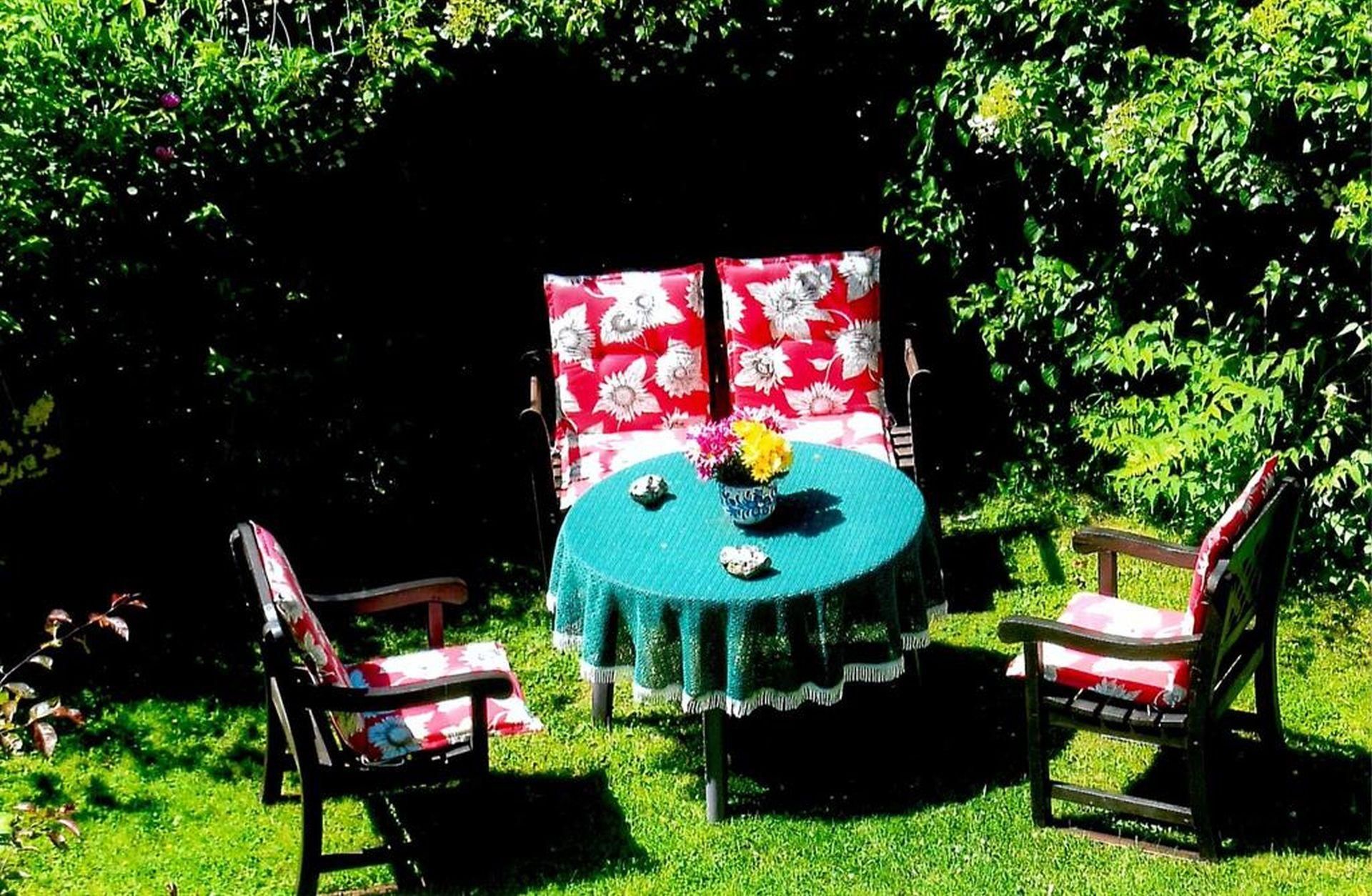 Wir bieten unseren Gästen eine angenehme Atmosphäre in schöner Umgebung. Bei uns ist es nicht zu laut und nicht zu leise. So richtig zum Wohlfühlen und Entspannen. An milden Sonnenabenden treffen sich unsere Gäste gerne zu einem gemütlichen Klönschnack im wunderschönen Garten.