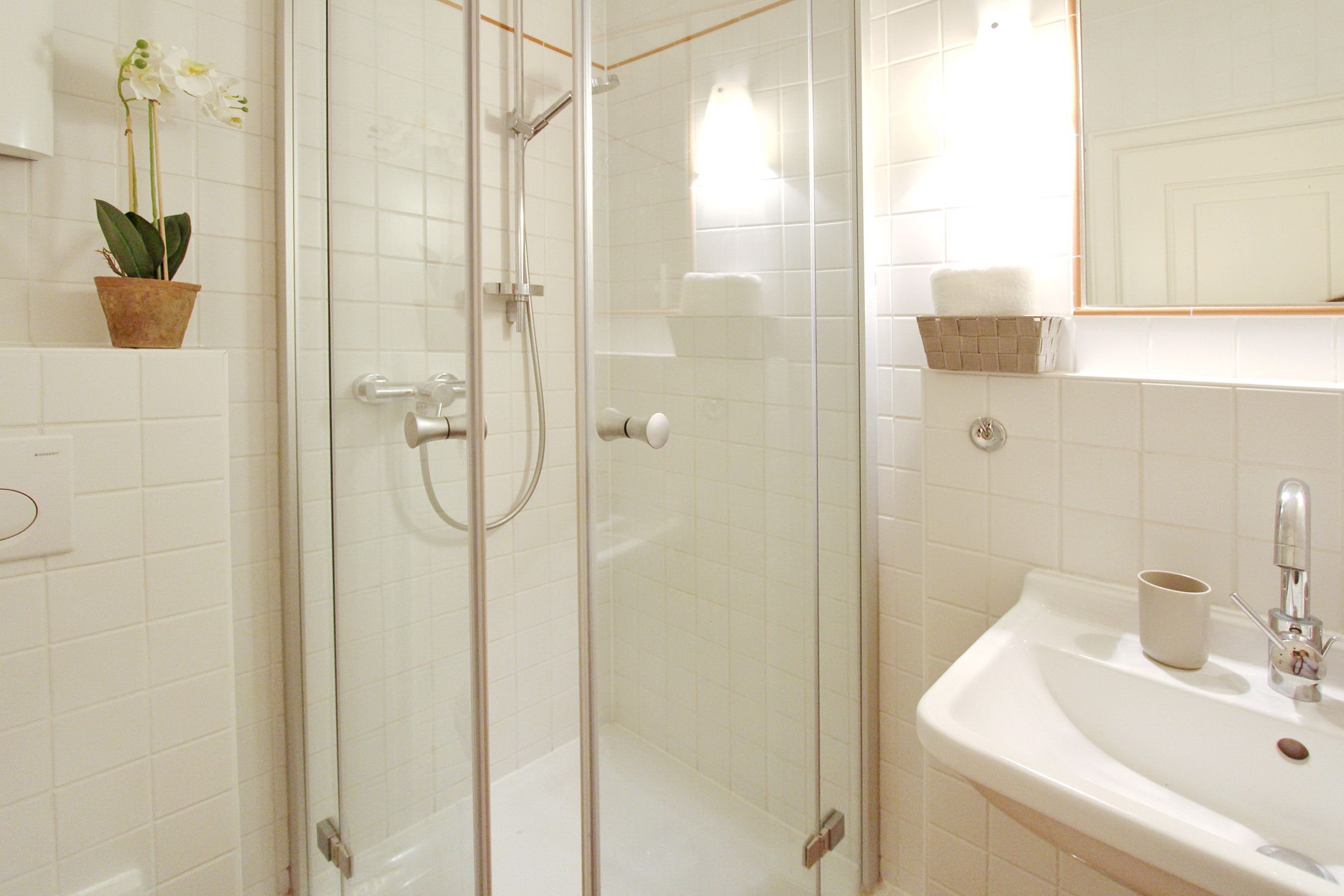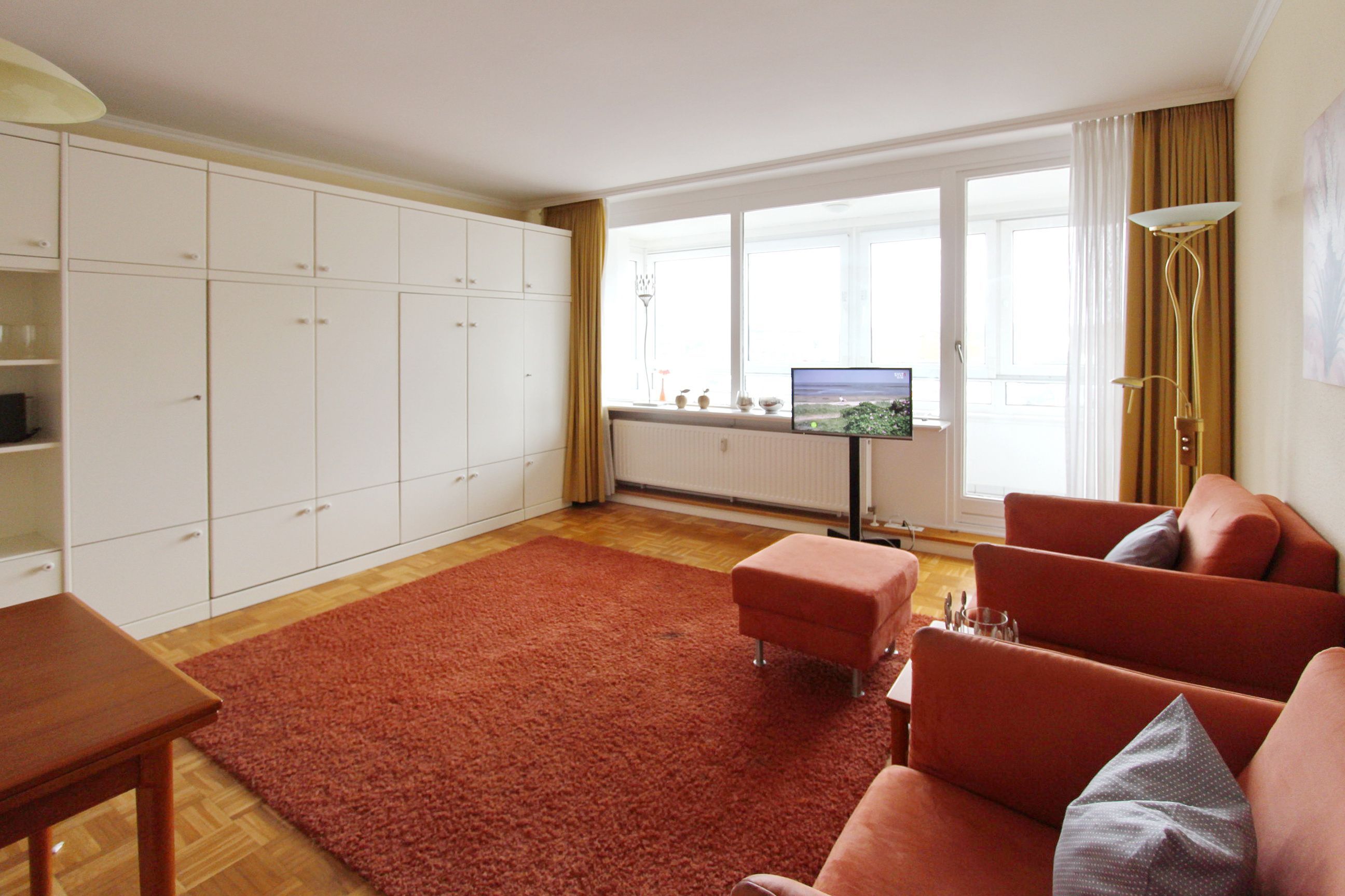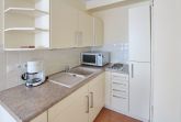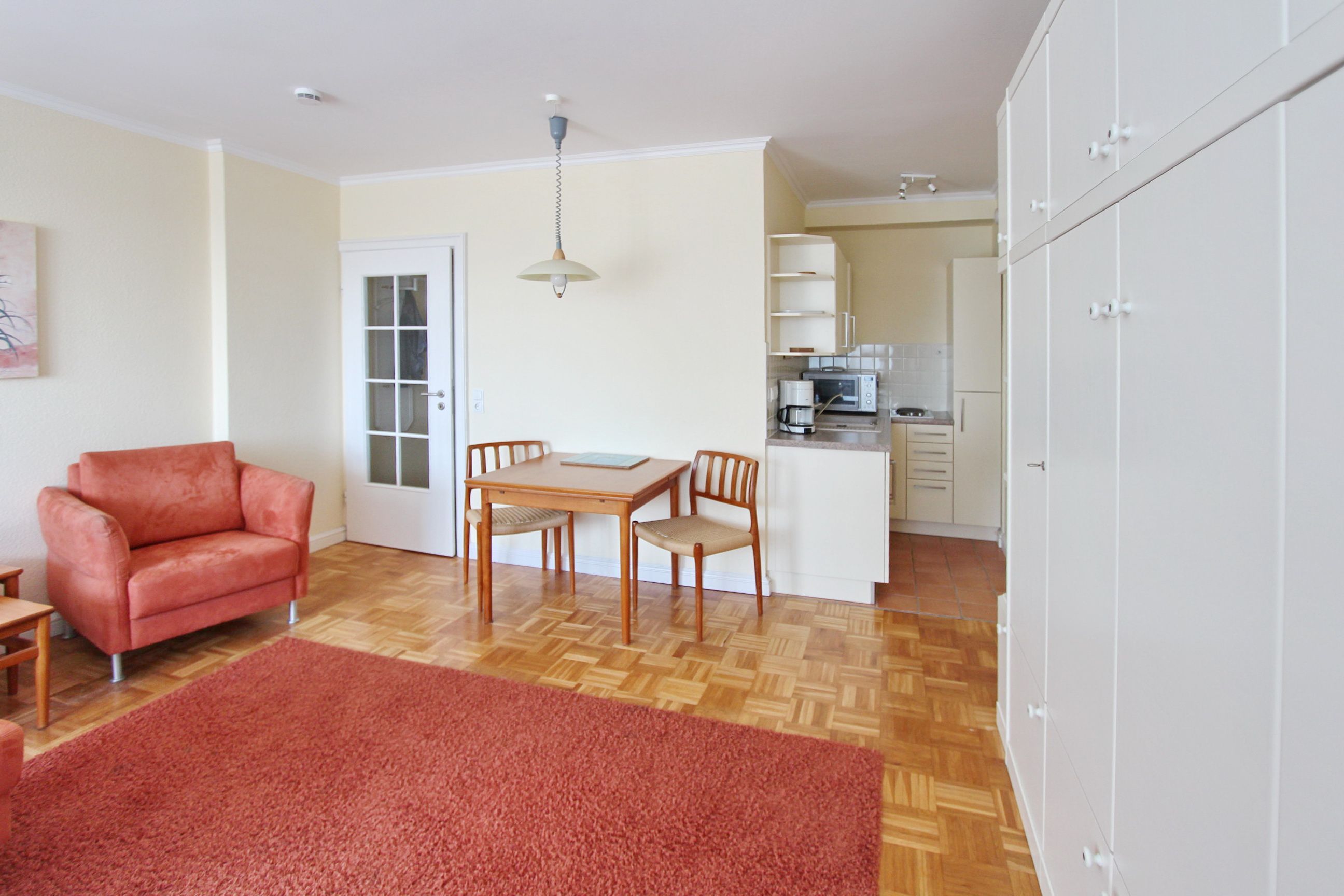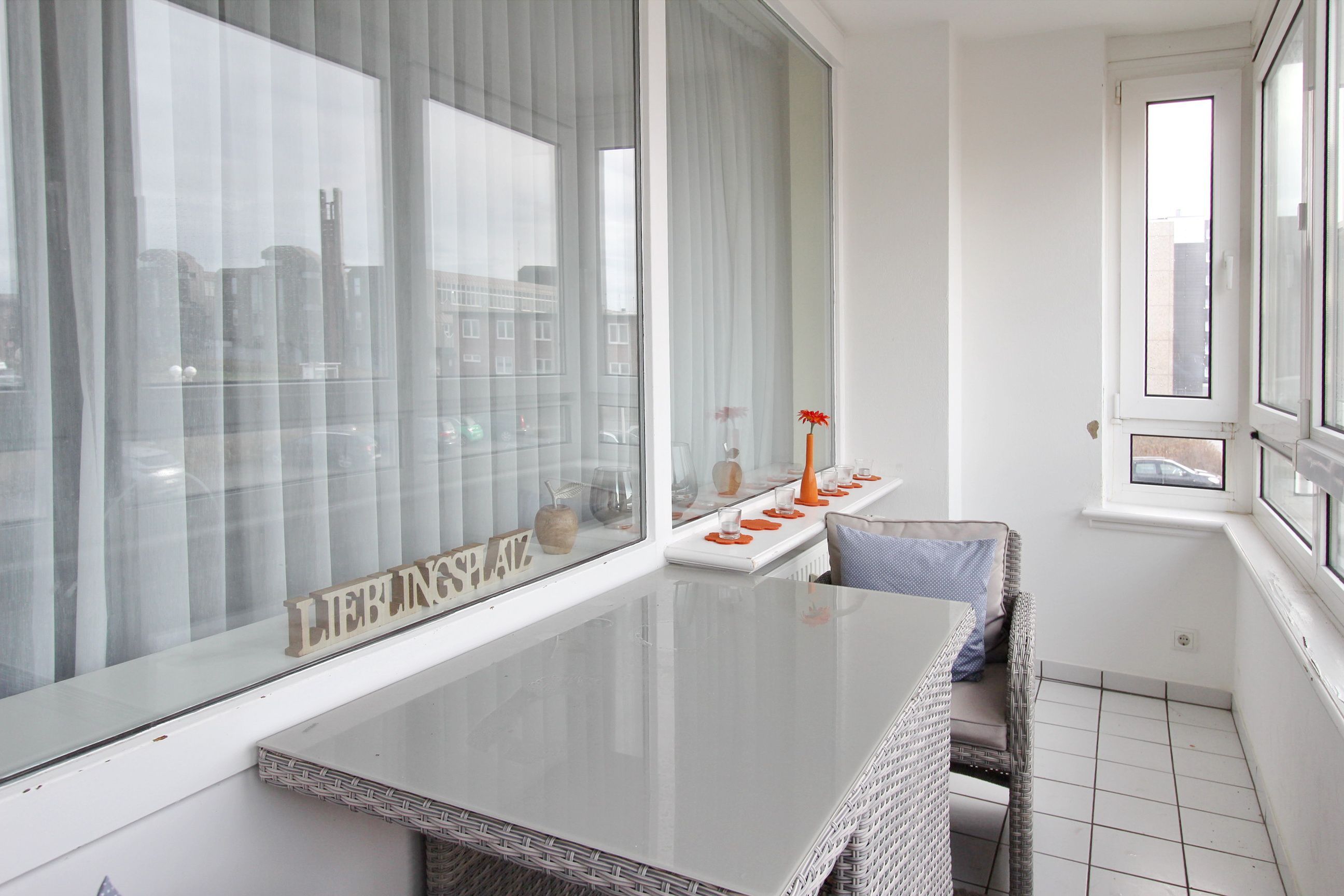 Hell und freundlich eingerichtete 1 Zimmer Wohnung in der 1. Etage zur Westseite. Diese Nichtraucherwohnung in unmittelbarer Strandlage ist mit Einzelschrankbetten, einem Essplatz für 2 Personen sowie einer komfortablen, ansprechende Sitzgruppe ausgestattet. In der offenen Küchenzeile im Wohnbereich (mit Mikrowelle und zusätzlicher Nespressomaschine) können sie einfach und schnell kleine Mahlzeiten oder ein köstliches Frühstück zubereiten. Im hellen Badezimmer gibt es eine Dusche und einen Handtuchtrockner. Den verglasten Westbalkon (Wintergarten) mit modernen Loungemöbeln können sie auch bei schlechtem Wetter nutzen. Diese Wohnung verfügt über einen modernen Flachbildfernseher von Panasonic. Wohnungsgröße: ca. 40 m².