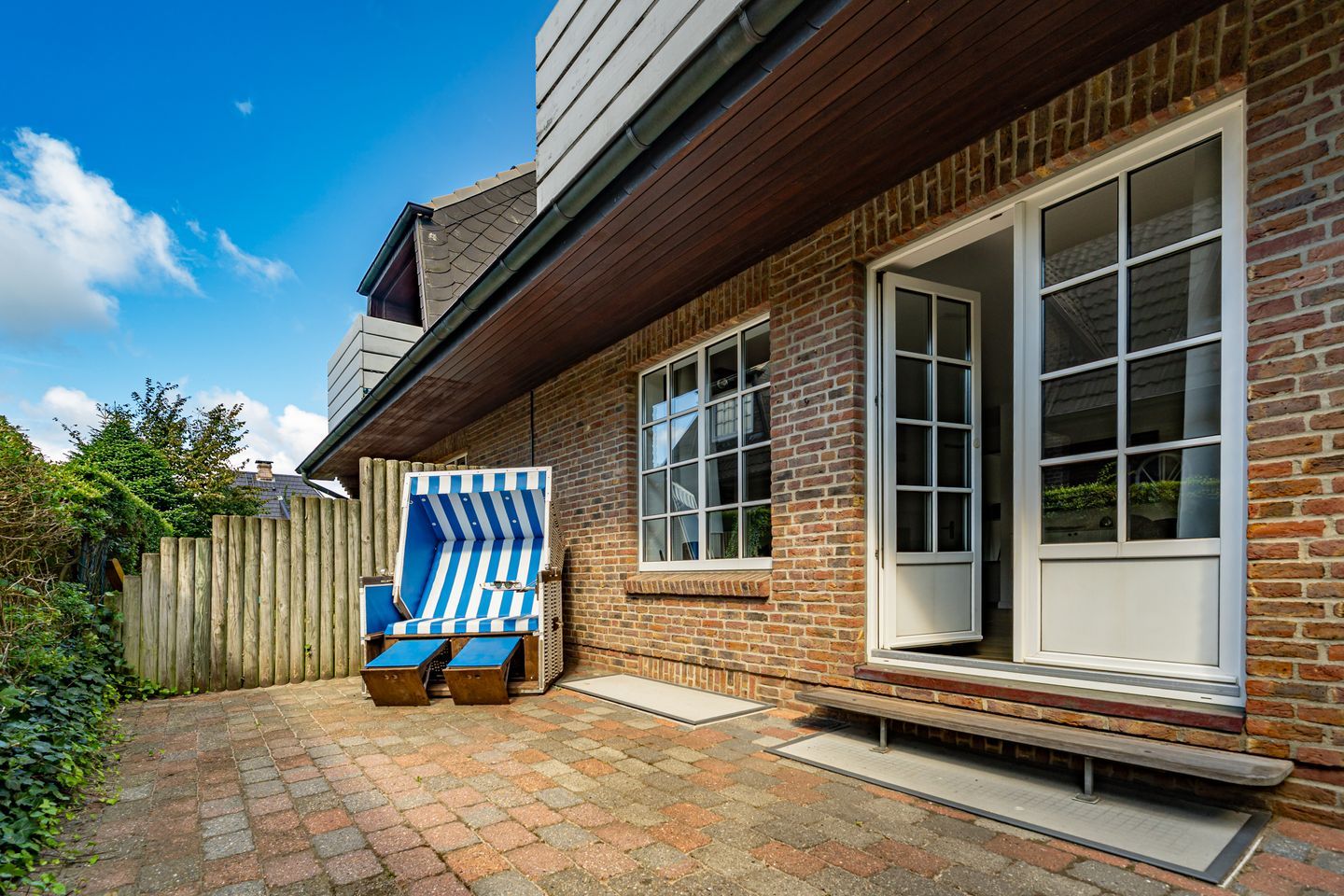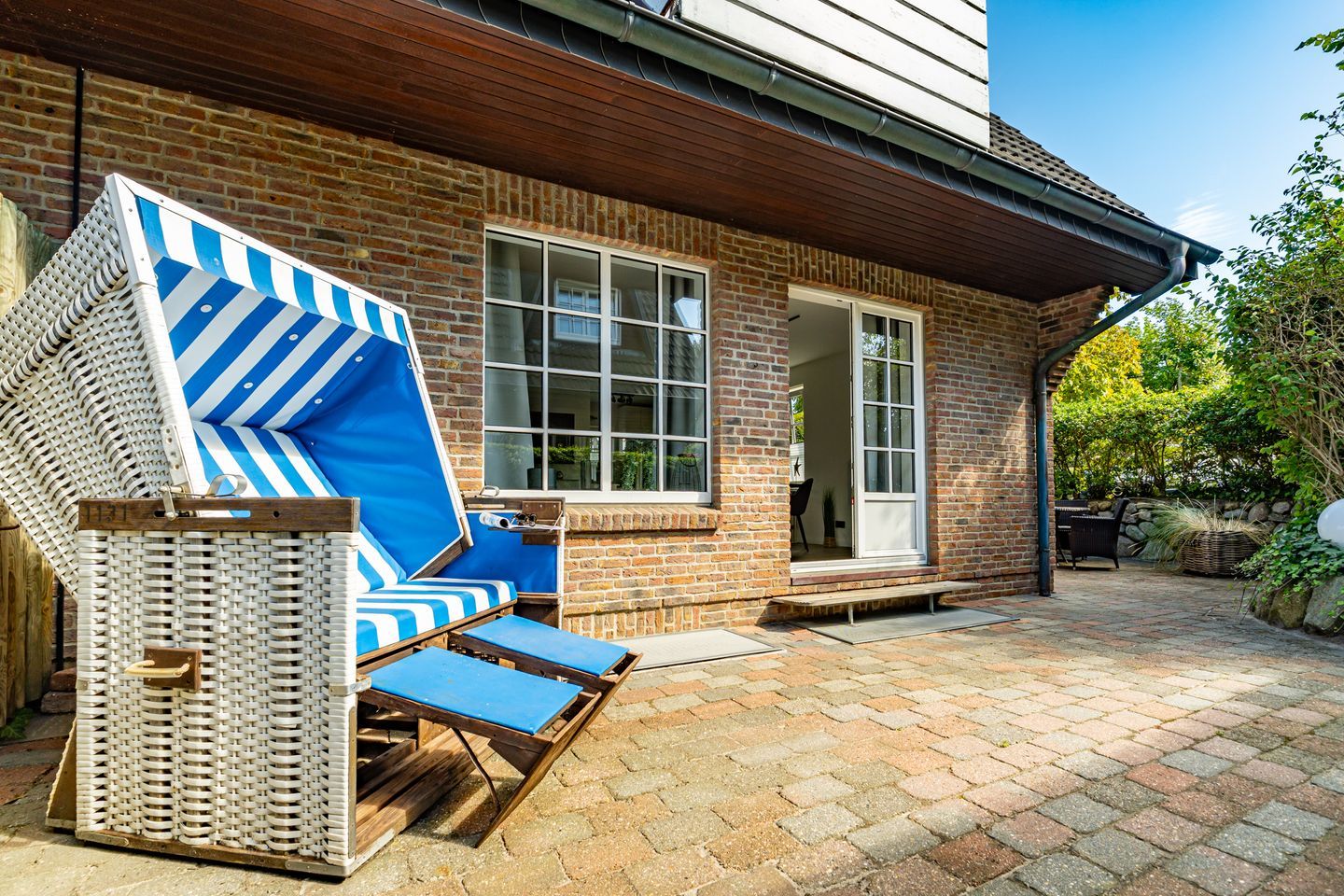 Sie bietet Platz für bis zu 3 Personen. Die ca. 65 qm Wohnfläche verteilen sich auf zwei Ebenen. Im EG befinden sich die offen gestaltete Küche mit angrenzendem Essbereich und das gemütliche Wohnzimmer. Im Wohnzimmer steht Ihnen ein Flachbildfernseher zur Verfügung. Die Ausstattung (Backofen, Spülmaschine, Cerankochfeld, Kaffeemaschine, Nespresso Maschine, Toaster, Wasserkocher) der hochwertigen Küche lässt keine Wünsche offen. Vom Wohnzimmer gelangt man auf die Terrasse mit Strandkorb und Gartenmöbeln, die zum Verweilen einlädt. Im Souterrain befinden sich ein Schlafzimmer mit Einzelbett (90 x 200 cm) und TV, ein Schlafzimmer mit Doppelbett und TV, ein Gäste-WC und das Bad mit bodentiefer Dusche und WC.