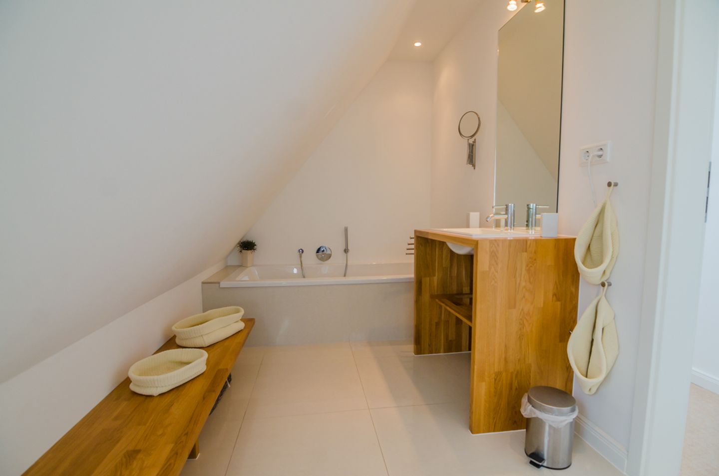 Essbereich, ein Gäste-WC und der Flur. Im Obergeschoss finden Sie ein helles, großzügiges Schlafzimmer mit Doppelbett und das hochwertig ausgestattete Vollbad. Das Dachgeschoss wurde als Chillout-Lounge gestaltet.
