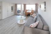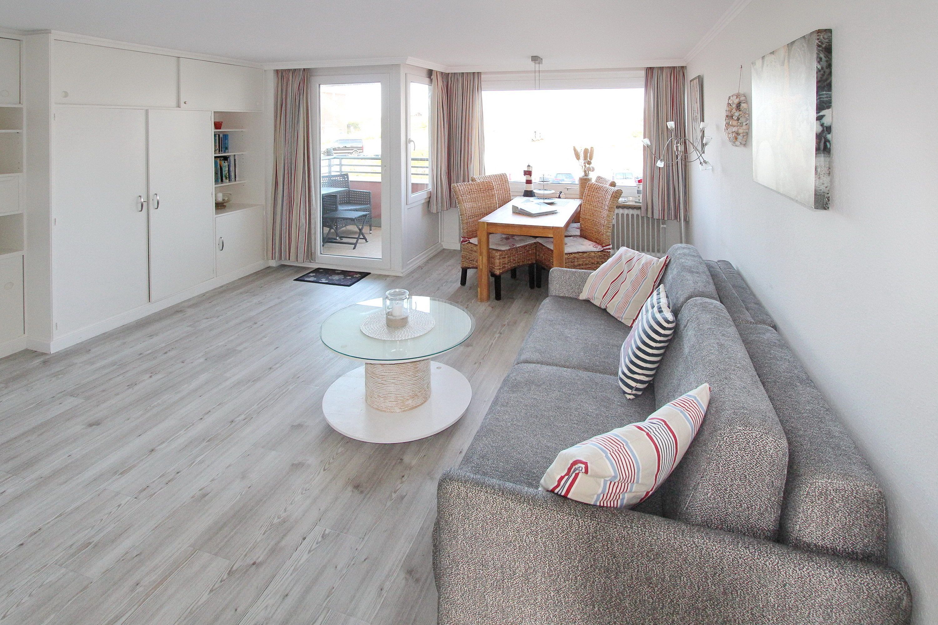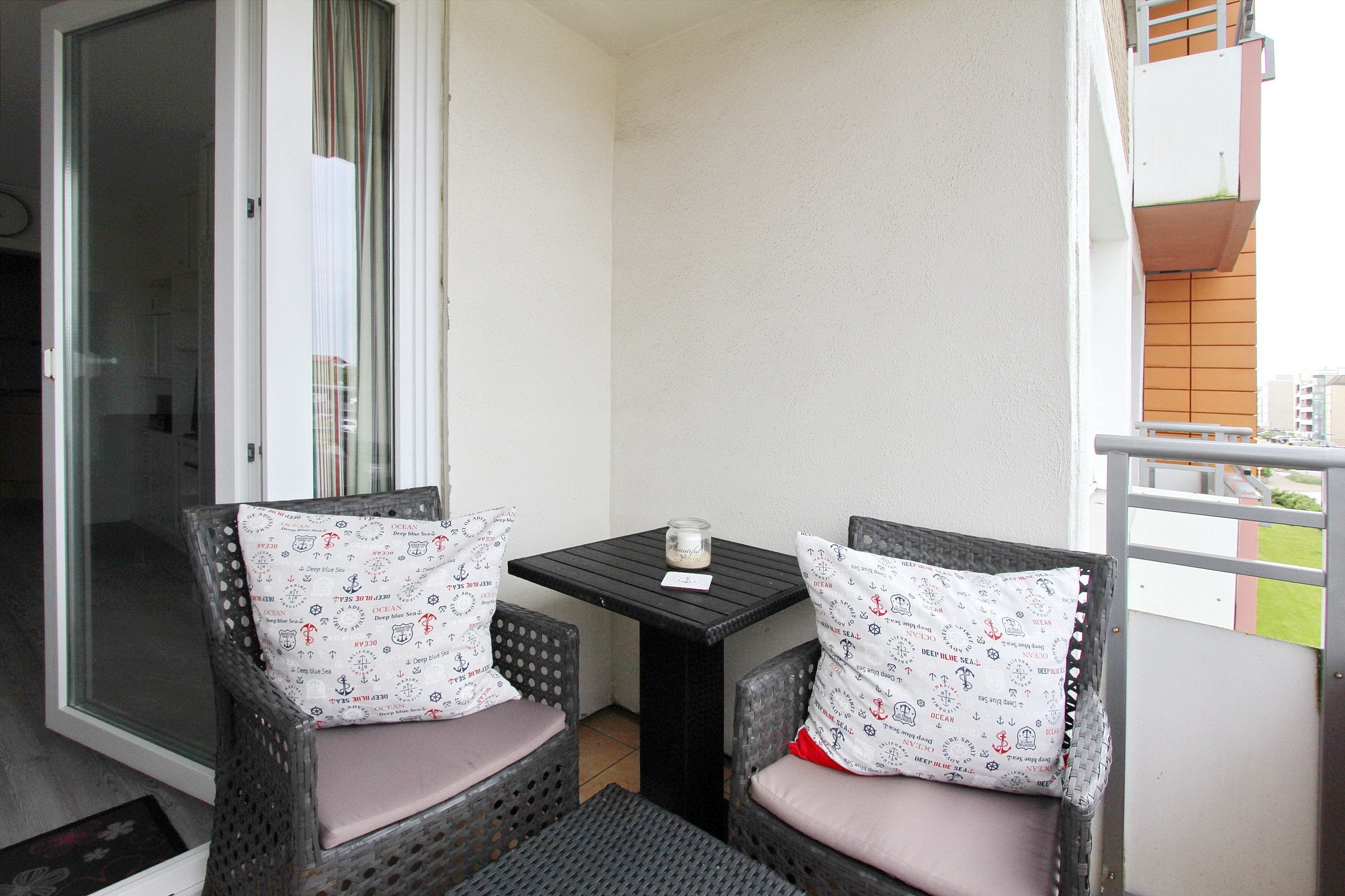 Wunderschöne 2 Zimmerwohnung in der 1. Etage im Haus Brandenburg. Der geräumige Wohnraum wurde mit neuen, modernen Möbeln ausgestattet. Er verfügt über eine großzügige Polsterecke, die zum relaxen einlädt. Abends kann sie mit wenigen Handgriffen in ein Bett verwandelt werden. Am Fenster des Wohnzimmers befindet sich ein großer Esstisch, an dem man bequem mit vier Personen speisen kann. Eine maßgefertigte Schrankwand bietet reichlich Stauraum für Ihre persönlichen Gegenstände. Sie beherbergt auch den neuen LCD-Fernseher mit 81 cm Bilddiagonale. Vom Wohnzimmer aus können Sie den Balkon betreten und auf 2 Rattanstühlen den Sonnenuntergang genießen. Die Wohnung verfügt über einen Satellitenanschluss, so dass Sie alle gängigen Programme auch in HD-Qualität sehen können.