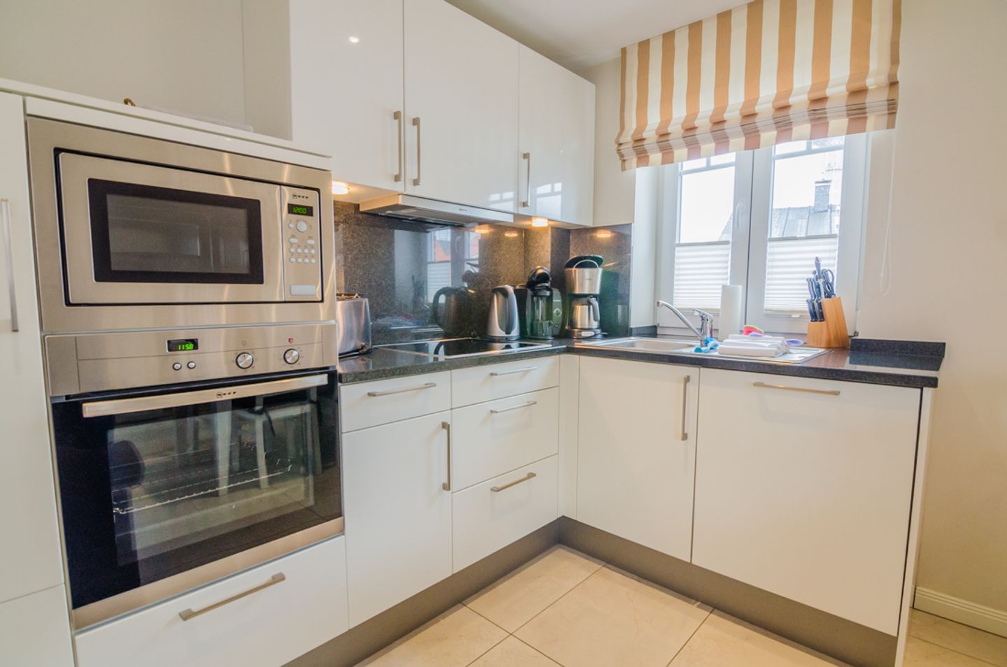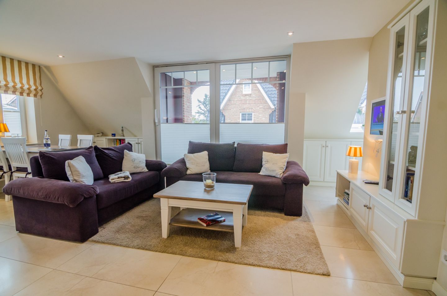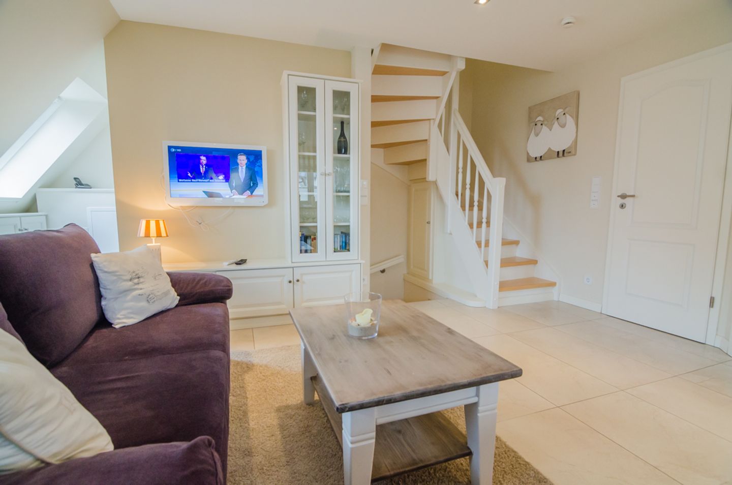 Die Ferienwohnung Steffi liegt stadt- und strandnah. Über Ihre eigene Haustür im Erdgeschoss betreten Sie den Eingangsbereich mit Garderobe. Von dort aus gelangen Sie über eine Treppe in das 1OG. der Wohnung, wo sich der Wohn- und Essbereich mit Sofa und TV befindet. Von hier haben Sie Zugang zum westlich ausgerichteten Balkon mit Gartenmöbeln. Die voll ausgestattete, offene Küche (Nespressomaschine, Mikrowelle, Backofen, Geschirrspüler, Toaster, Wasserkocher) grenzt an den Wohn- und Essbereich an. Von dort aus haben Sie Zutritt zum Schlafzimmer mit Doppelbett, TV und Kleiderschrank sowieso zum Badezimmer mit Dusche, WC, Waschbecken und Waschmaschine. Über eine Treppe gelangen Sie ins Dachgeschoss der Ferienwohnung wo sich das zweite Schlafzimmer mit Kojenbett und ein weiteres Badezimmer ausgestattet mit Badewanne, WC und Waschbecken befindet. Ein PKW-Stellplatz steht Ihnen am Haus zur Verfügung. Bitte beachten Sie, dass diese Wohnung eine Nichtraucherwohnung ist. Haustiere sind in dieser Ferienwohnung nicht gestattet.