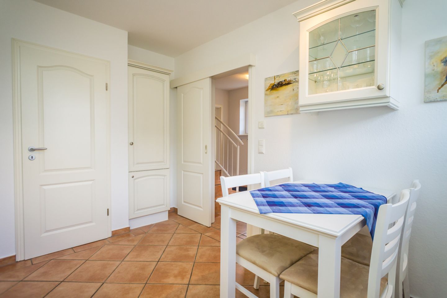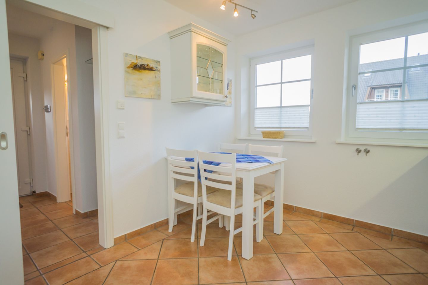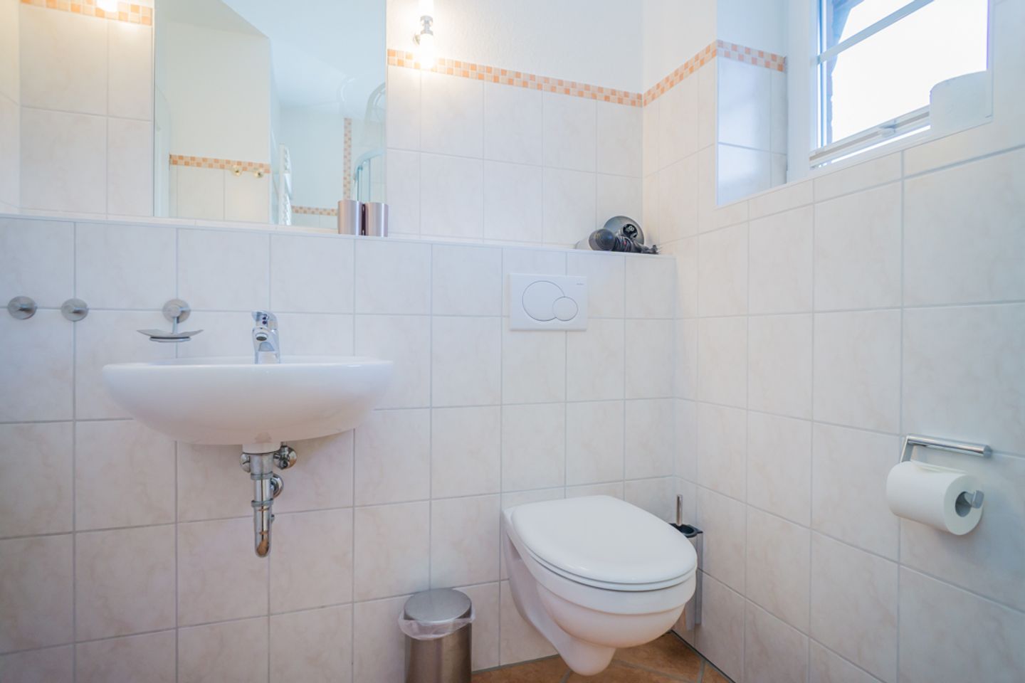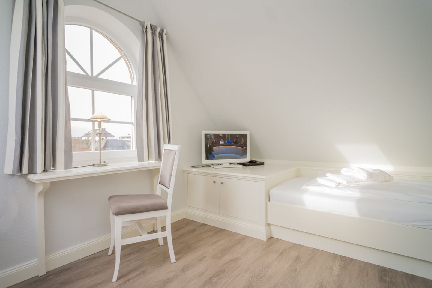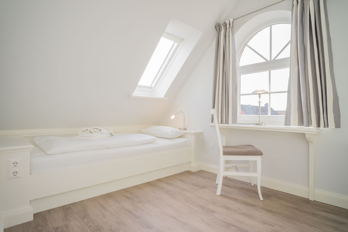 Das luxuriöse Badezimmer mit Waschbecken, Dusche und WC liegt ebenfalls auf dieser Etage. Im Spitzboden befindet sich das dritte Schlafzimmer mit zwei Einzelbetten, Flatscreen und Schreibtisch. In diesem Nichtraucherdomizil ist die Tierhaltung nicht erlaubt. Ein Pkw-Stellplatz steht Ihnen am Haus zur Verfügung. Das Ferienhaus verfügt weiterhin über einen Telefonanschuss mit Inland-Festnetz-Flatrate und natürlich kostenloses W-LAN. Sie können Sie Ihre mitgebrachten Fahrräder in der Gartenhütte unterstellen. Der Strand ist nur ca. 550 Meter entfernt!