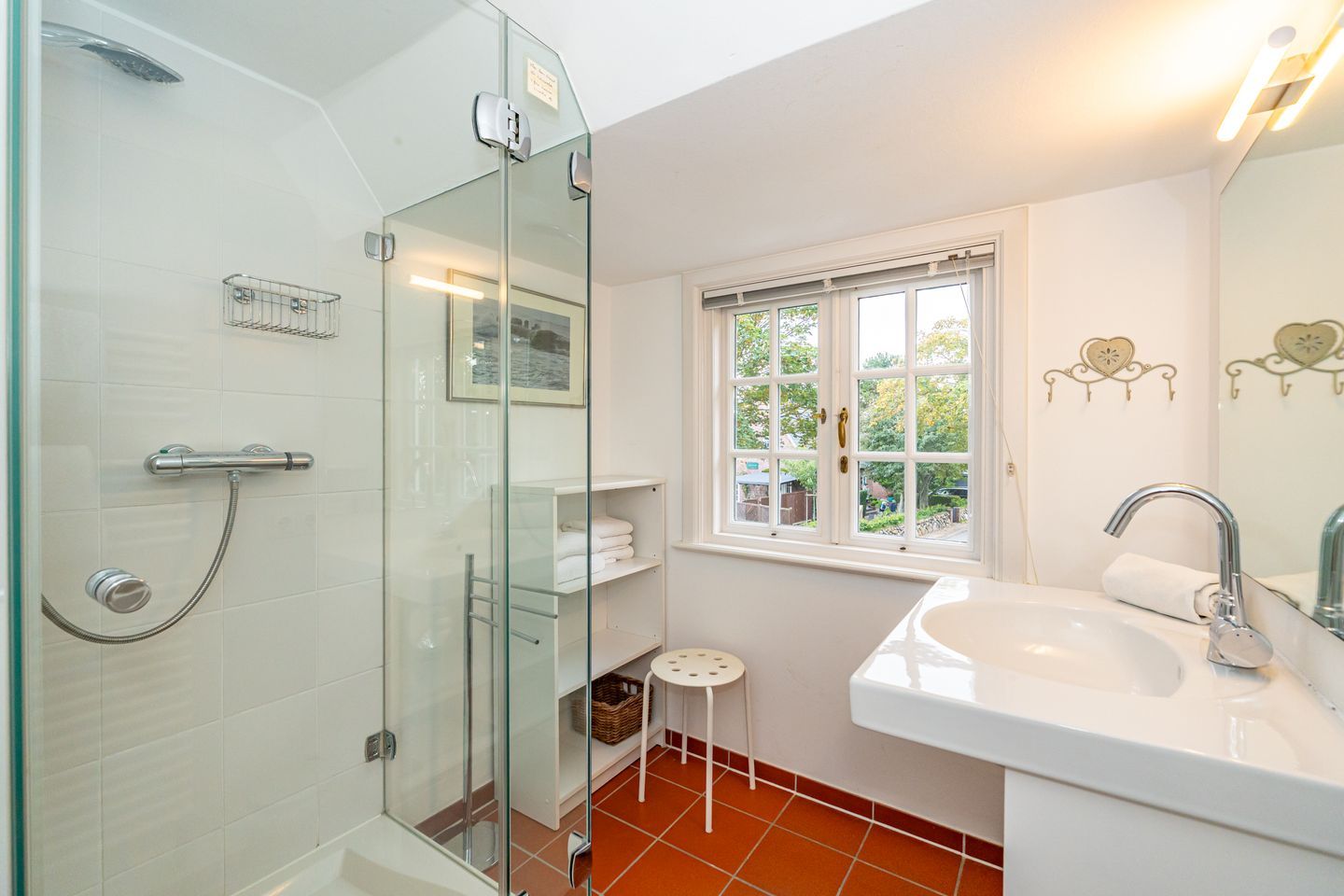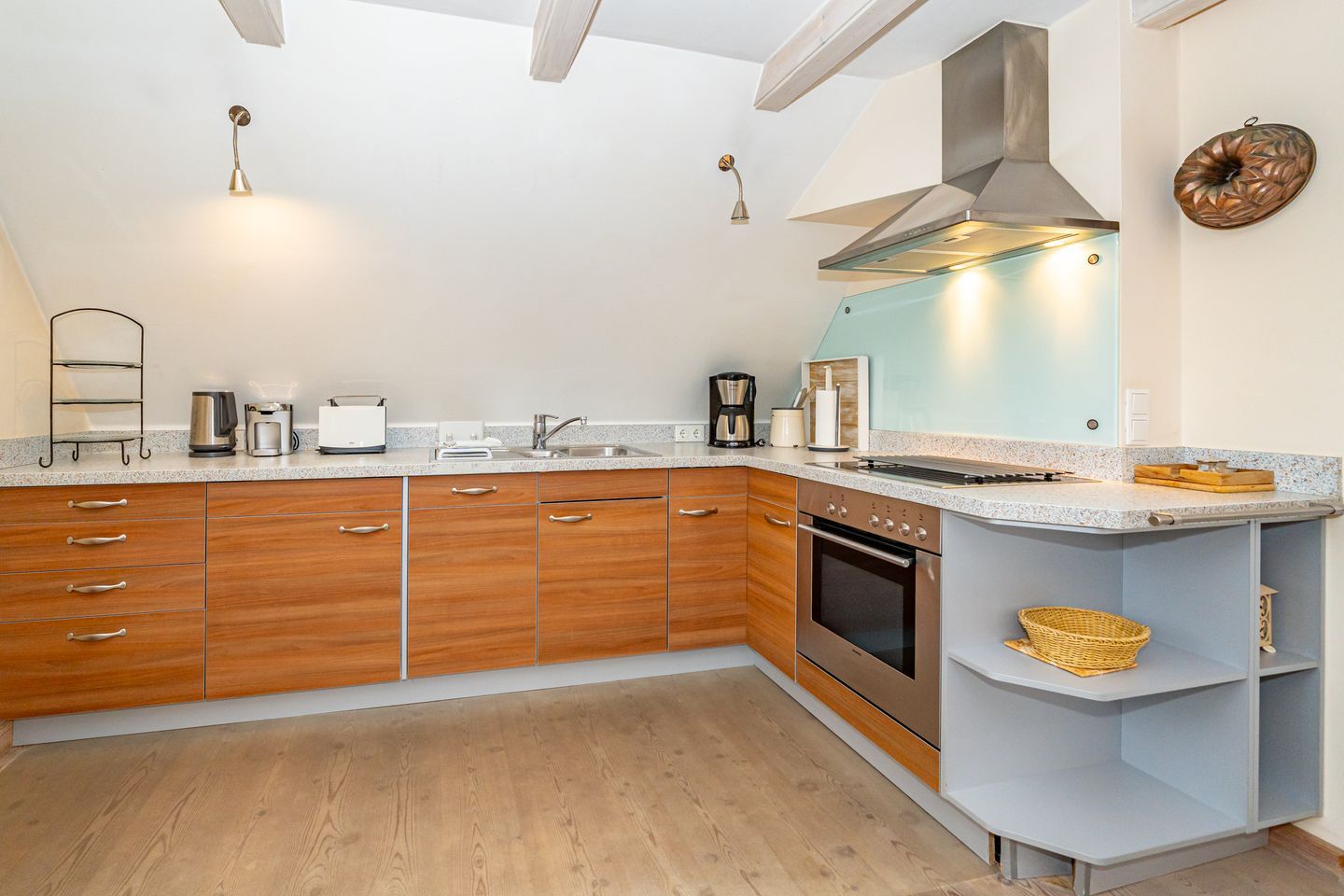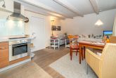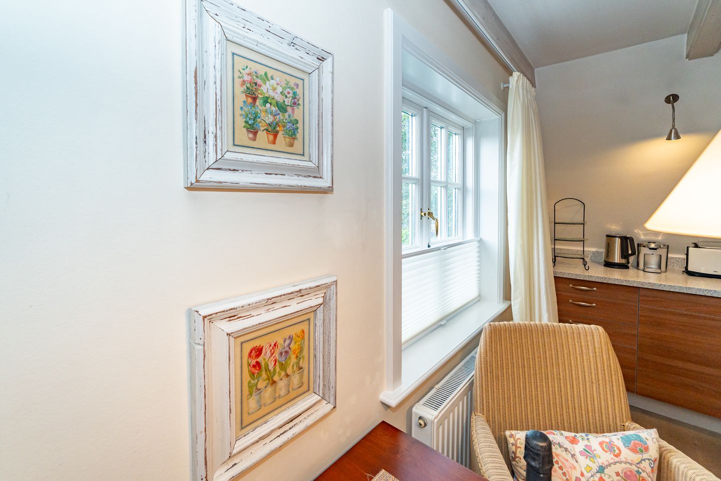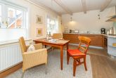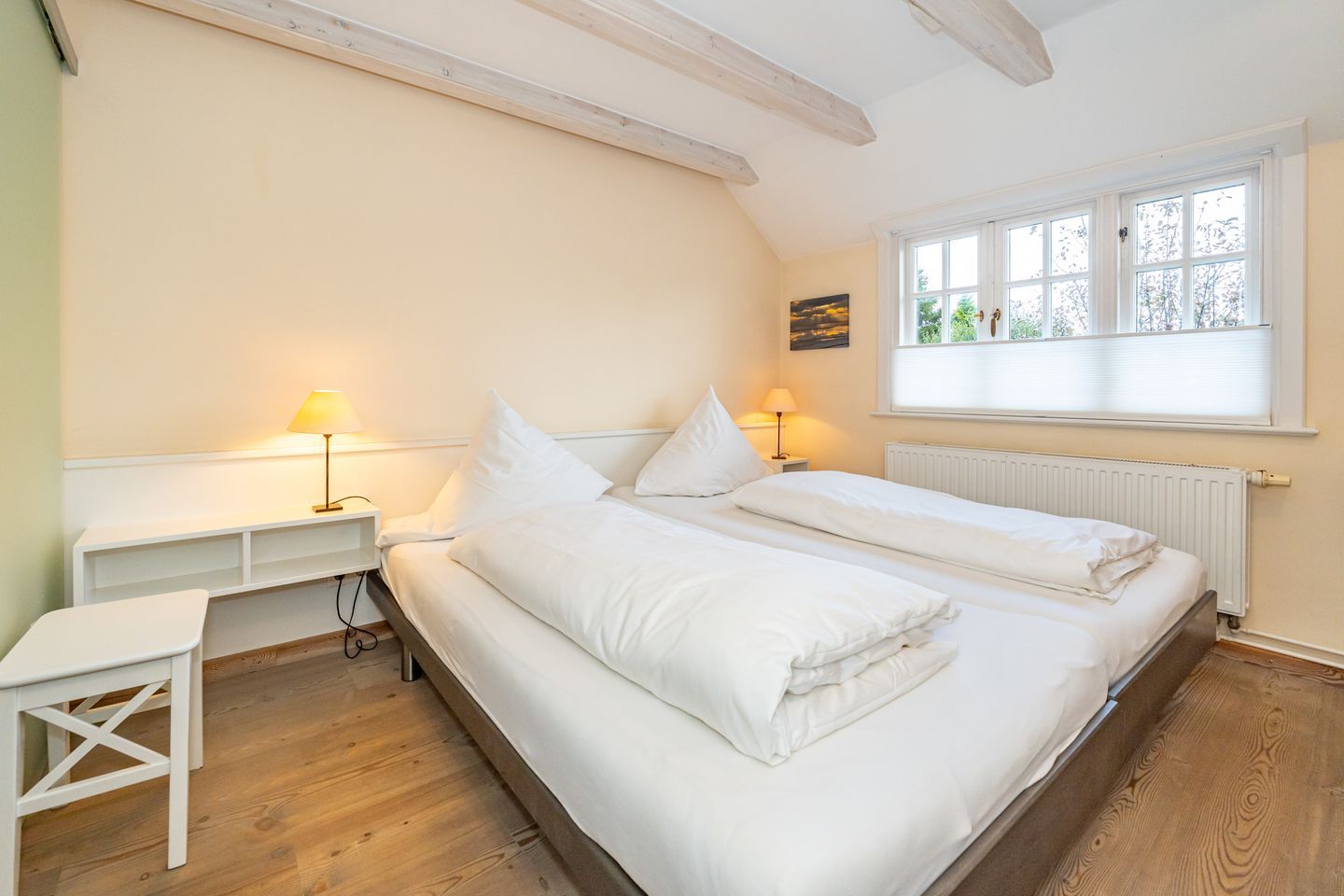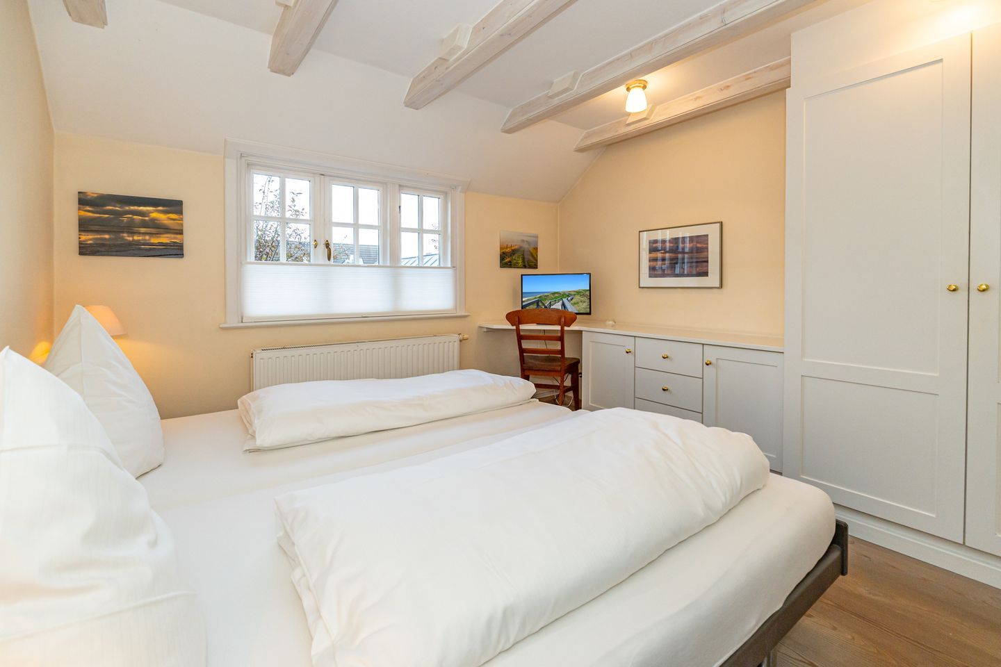 Diese helle 2- Zimmer-Ferienwohnung (60 qm) liegt im 1. Obergeschoss und überzeugt durch die traumhafte, ruhige Lage in Westerland und bietet Platz für max. 2 Personen. Durch einen kleinen Flur betreten Sie das helle Wohnzimmer mit Sofa und Flatscreen-TV. Die angrenzende, offene Küchen- und Essbereich lädt zum gemeinsamen Kochen, Schlemmen und Verweilen ein. Die Küchenzeile bietet vom Cerankochfeld, Kaffeemaschine, Toaster, Backofen bis zum Geschirrspüler eine Wohlfühlausstattung. Vom Esstisch aus haben Sie einen idyllischen Blick in den eingewachsenen Garten mit altem Baumbestand. Ein Schlafzimmer mit Doppelbett (200x200 cm) und geräumigen Einbauschrank, sowie ein Flatscreen-TV, als auch ein helles Duschbad und ein separates Gäste- WC, runden das Obergeschoss ab. Ein Highlight ist der traumhafte Garten, hier finden Sie Ruhe auf dem zur Ferienwohnung gehörenden Sonnenplatz mit Sylter Strandkorb und Bestuhlung. Zum Ausklang eines Strandtages können Sie hier die Seele baumeln lassen, und bei einem Glas Wein den Abend einläuten. Waschmaschine und Trockner befinden sich im Keller des Hauses. Fahrradabstellmöglichkeit im Haus. Das Rauchen und Haustiere sind in dieser Ferienwohnung nicht erlaubt.