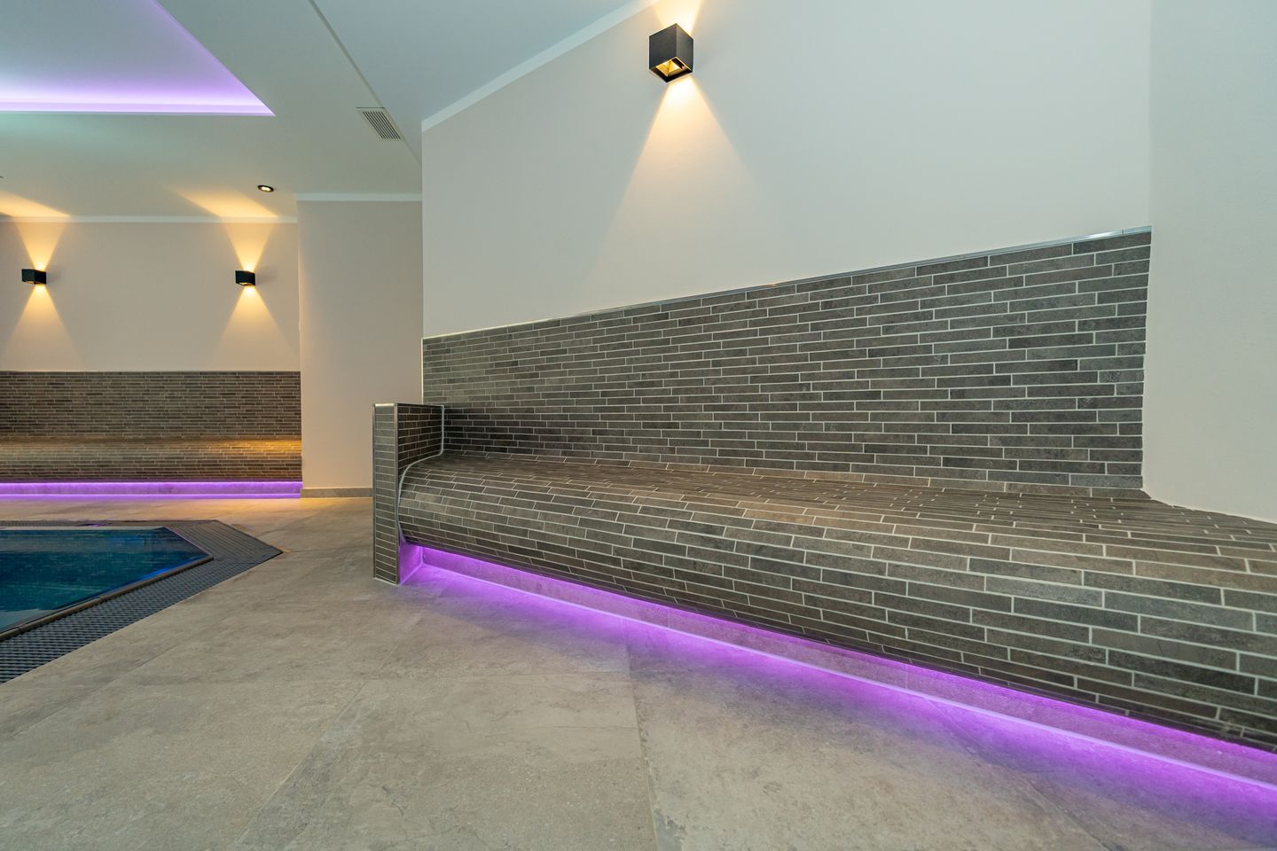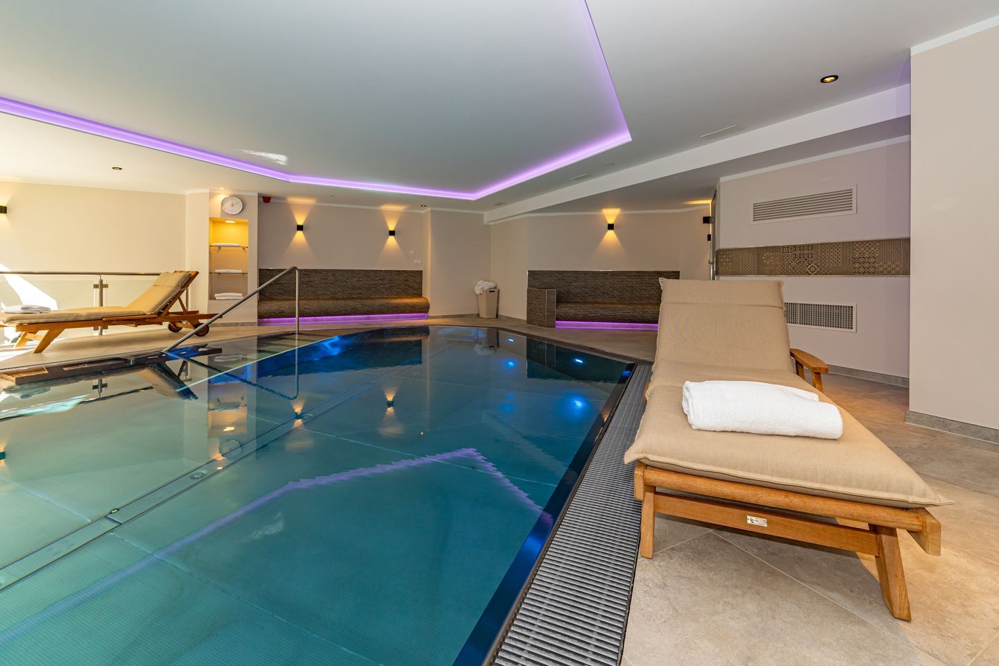 Im Haus befindet sich ein neu sanierter Wellnessbereich mit Pool und Saunen.