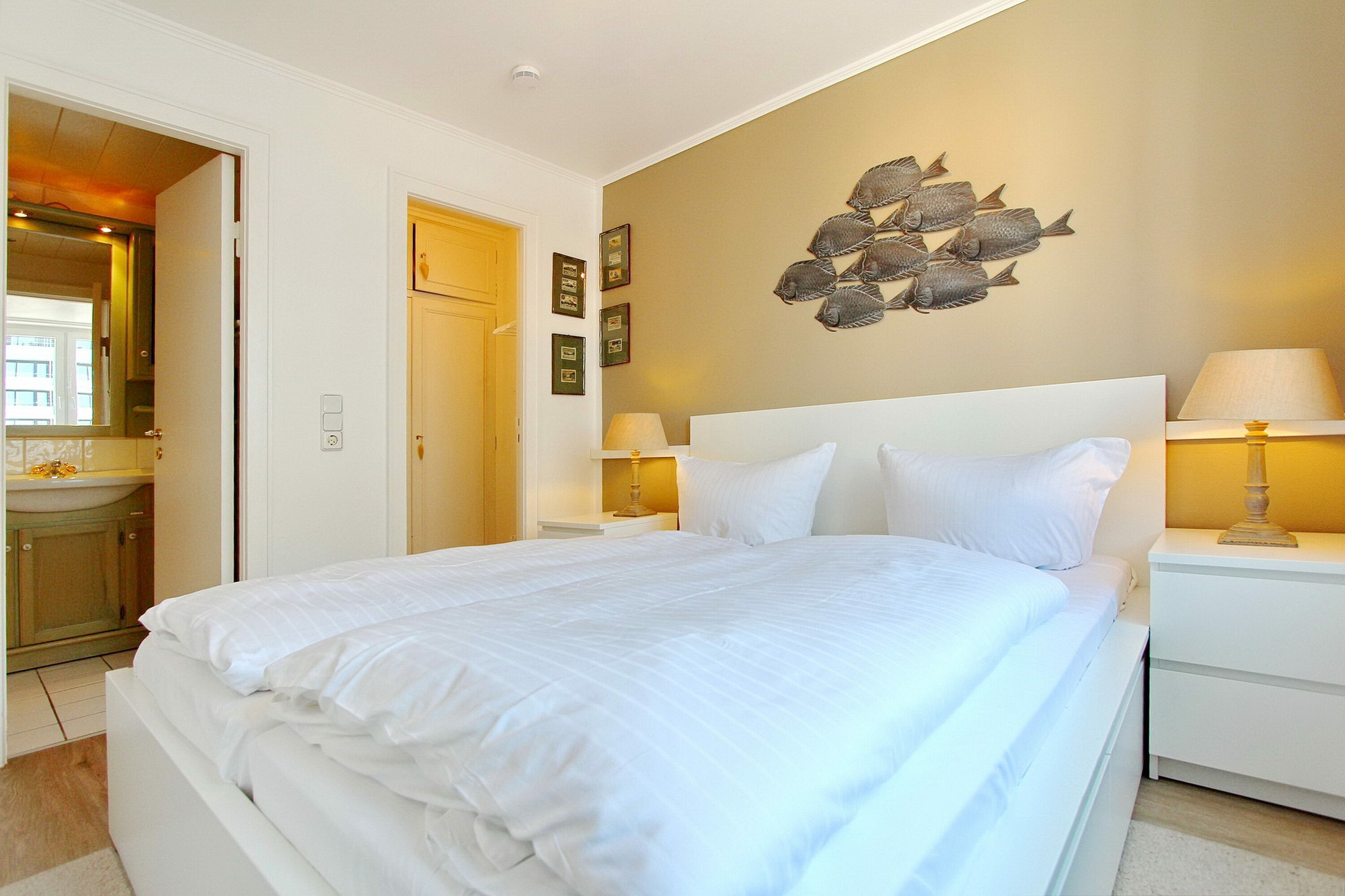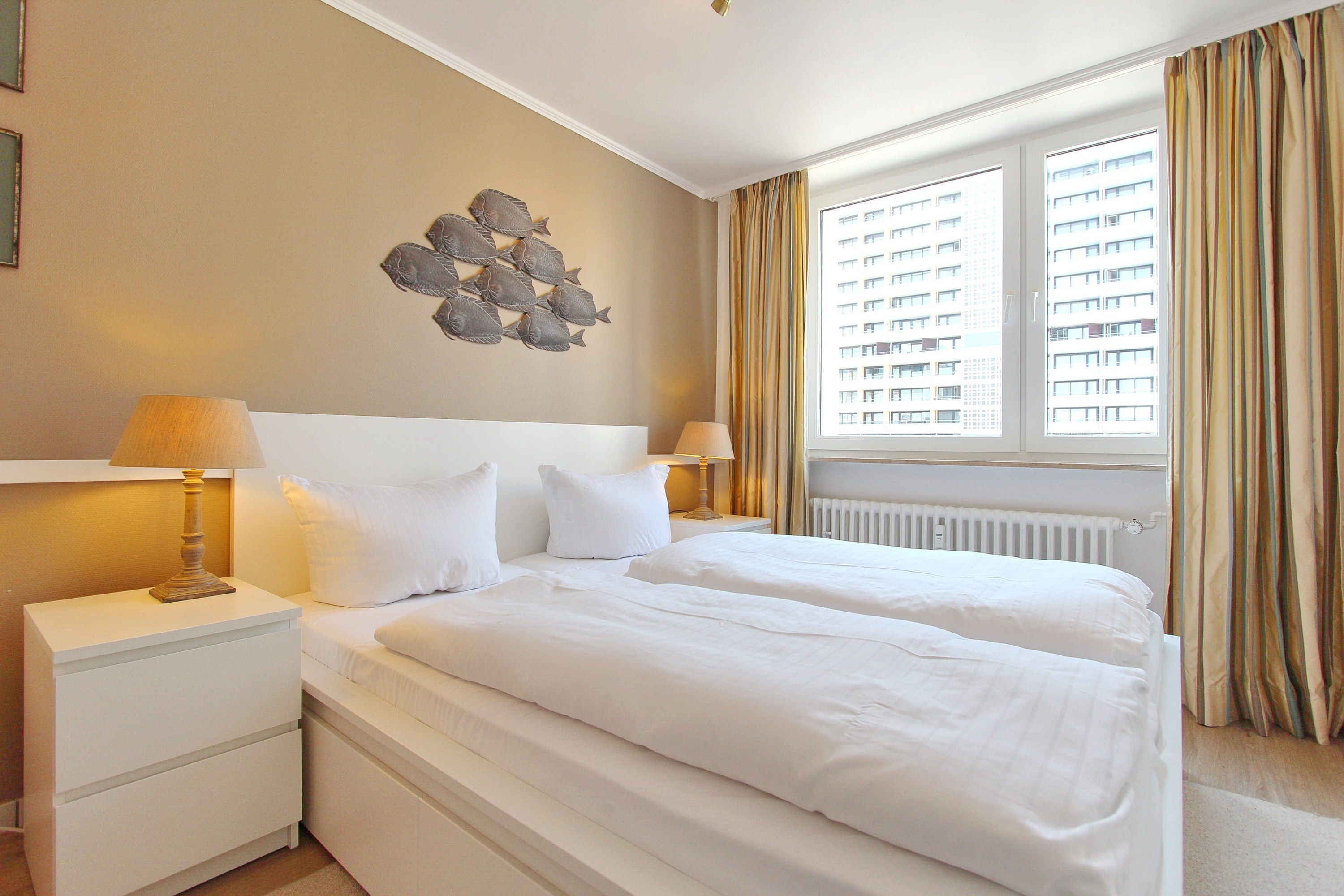 Dreizimmerwohnung in der 5. Etage in unmittelbarer Nähe zur Innenstadt und der Promenade von Westerland. Sie ist ausgestattet mit einer bequemen Sitzgruppe, einer offenen Küchenzeile mit Geschirrspüler und Backofen und einem Essplatz mit 4 Stühlen. Design PVC wurde im Wohnzimmer und Küchenbereich verlegt. Ein Schlafzimmer hat ein Doppelbett (2*80*200), das andere Schlafzimmer zwei Einzelbetten (90*200). Das Badezimmer (Durchgangszimmer) verfügt über eine Dusche. Die Toilette befindet sich in einem separaten, kleinen Zimmer. Zur technischen Ausstattung dieser Wohnung gehört: ein Radio mit CD Player, ein Flachbildfernseher, ein DVD Player und ein Telefon mit Flatrate ins dt. Festnetz. Nichtraucherwohnung. Den WLAN Hotspot im Haus (WEG-AD3 - Passwortfrei - ohne Gewähr) können sie gerne kostenfreie nutzen. Wohnungsgröße: ca. 50 m².