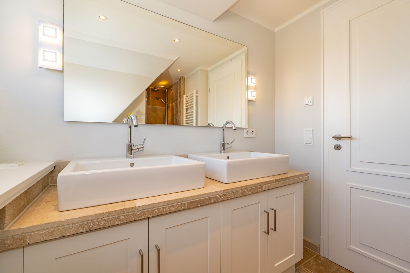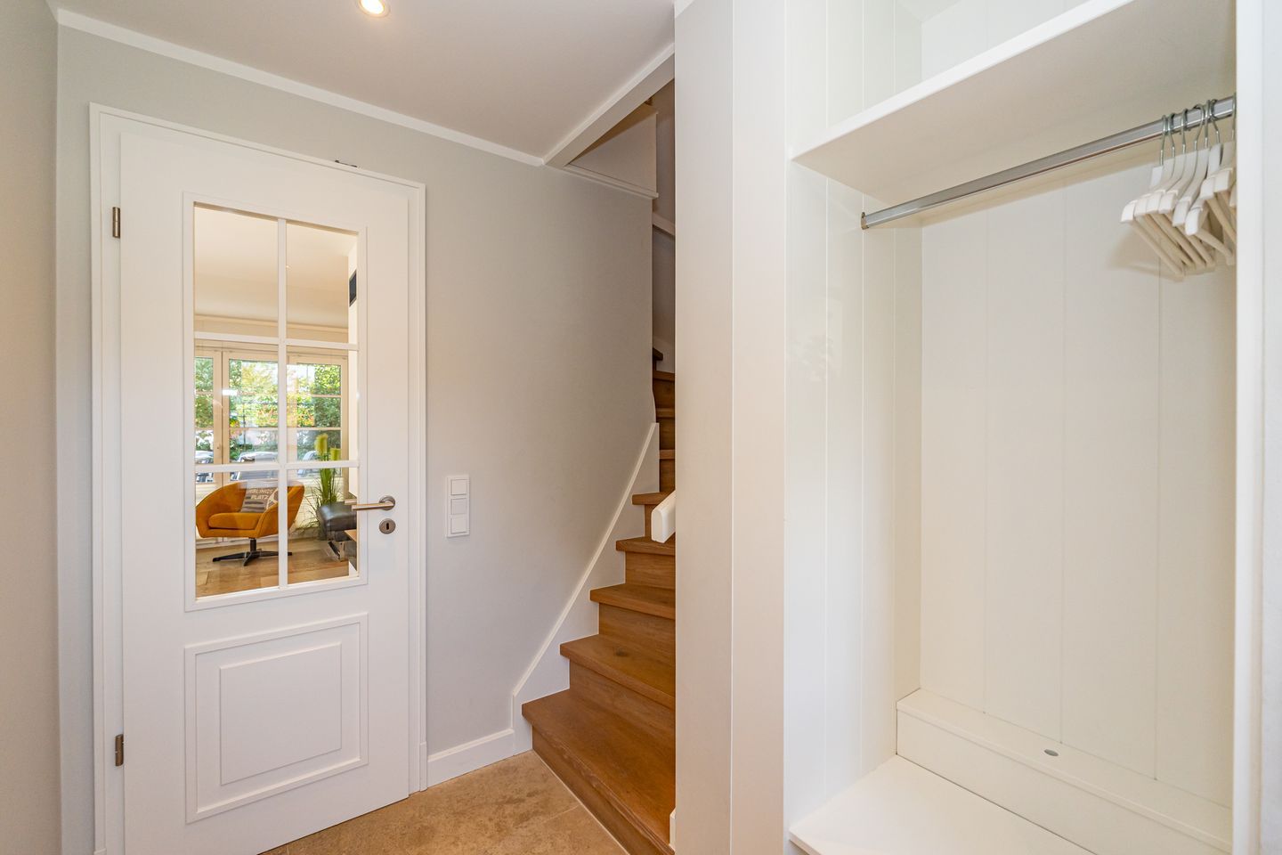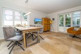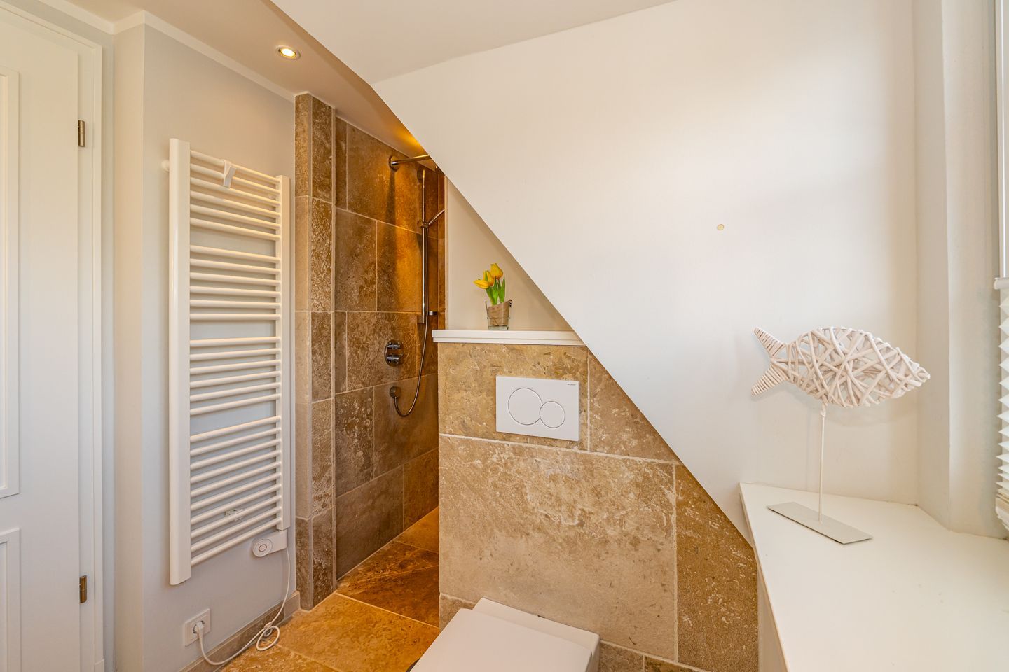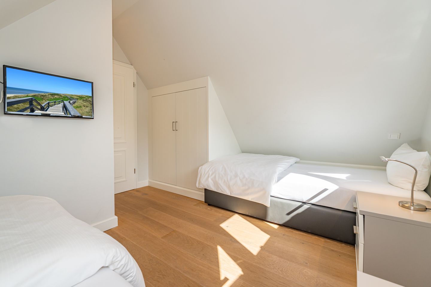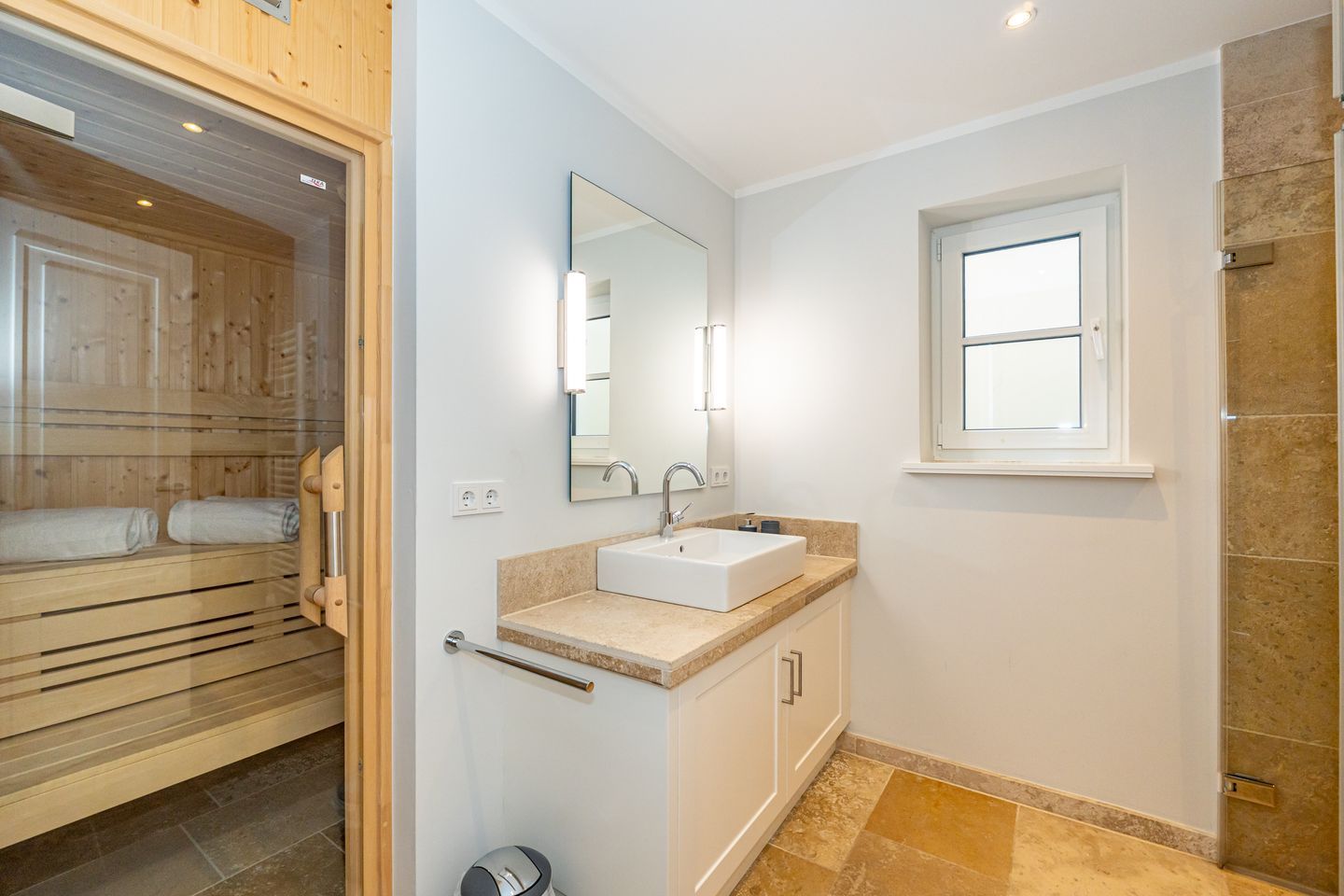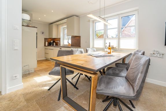 Im Erdgeschoss erwartet Sie ein Flur mit Garderobe. Von hier geht ein Gäste WC ab. Ebenfalls das geräumige und helle Wohn- und Esszimmer. Hier wartet Sie ein kuscheliger Gas Kamin, Sofa, TV und Essplatz. Angrenzend an diesen Bereich ist die offene Küche, hier können Sie köstliche Mahlzeiten zubereiten. Sie ist ausgestattet mit eine, Backofen, Induktionsherd mit Bora Feld, Geschirrspülmaschine, Gefrierschrank und Kaffeefiltermaschine. Vom Wohn- und Essbereich haben Sie Zutritt zum Garten mit Terrasse, Gartenmöbeln und Strandkorb. Über eine Treppe gelangen Sie in das erste OG, hier befindet sich ein Schlafzimmer mit Doppelbett (180x200), ein Badezimmer mit Dusche und Doppelwaschbecken. Als Highlight erwartet Sie auf dieser Ebene ein Kinoraum mit extra großem Smart-TV und gemütlichen Kinosesseln. Über eine weitere Treppe gelangen Sie in den Spitzboden, wo sich ein Schlafzimmer mit zwei Einzelbetten (je 90x200) und ein Gäste WC befinden. Im Souterrain des Hauses ist ein weiteres Schlafzimmer mit Doppelbett (180x200) und ein Badezimmer mit Dusche und Sauna. Zum Ferienhaus gehört ein PKW Stellplatz.
