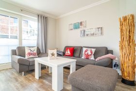 Im Erdgeschoss befindet sich ein gemütliches Wohn- und Esszimmer mit offener Küche. Vom Wohnzimmer mit Sofa, Sessel und TV haben Sie Zutritt zur nach Süden ausgerichteten Terrasse mit Gartenmöbeln und Strandkorb (saisonal). Im Garten befindet sich ebenfalls die Sauna. Die offene Küche ist ausgestattet mit einem Kühlschrank, Kaffeefiltermaschine, Kaffeevollautomaten, Gefrierfach, Toaster und Geschirrspüler. Über eine Treppe gelangen Sie in das Untergeschoss/Souterrain. Hier befindet sich ein Badezimmer mit Dusche, WC, Waschtisch, Handtuchtrockner und ein Waschtrockner. Ebenso ein Schlafzimmer mit Boxspringbett, TV, Spiegel und Kleiderschrank. Im ersten Obergeschoss finden Sie das 2. Schlafzimmer mit Doppelbett, TV, Kleiderschrank und Südbalkon auch hier gibt es ein Badezimmer mit Dusche, WC und Handtuchtrockner. Im Dachgeschoss befindet sich das 3. Schlafzimmer mit einem Doppelbett und TV. Ein PKW Stellplatz steht Ihnen am Haus zur Verfügung. Sollten Sie mit mehreren Autos anreisen, besteht die Möglichkeit kostenfrei in der Straße an der Seite zu parken.